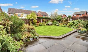Well stocked mature rear garden with patio areas