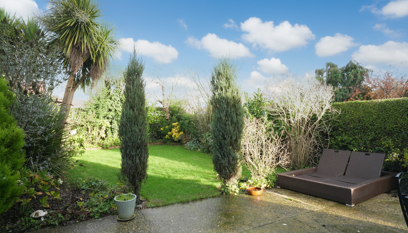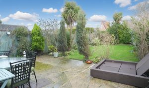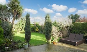 Large private garden to the rear of the property, with paved area ideal for al-fresco dining, and lawn.