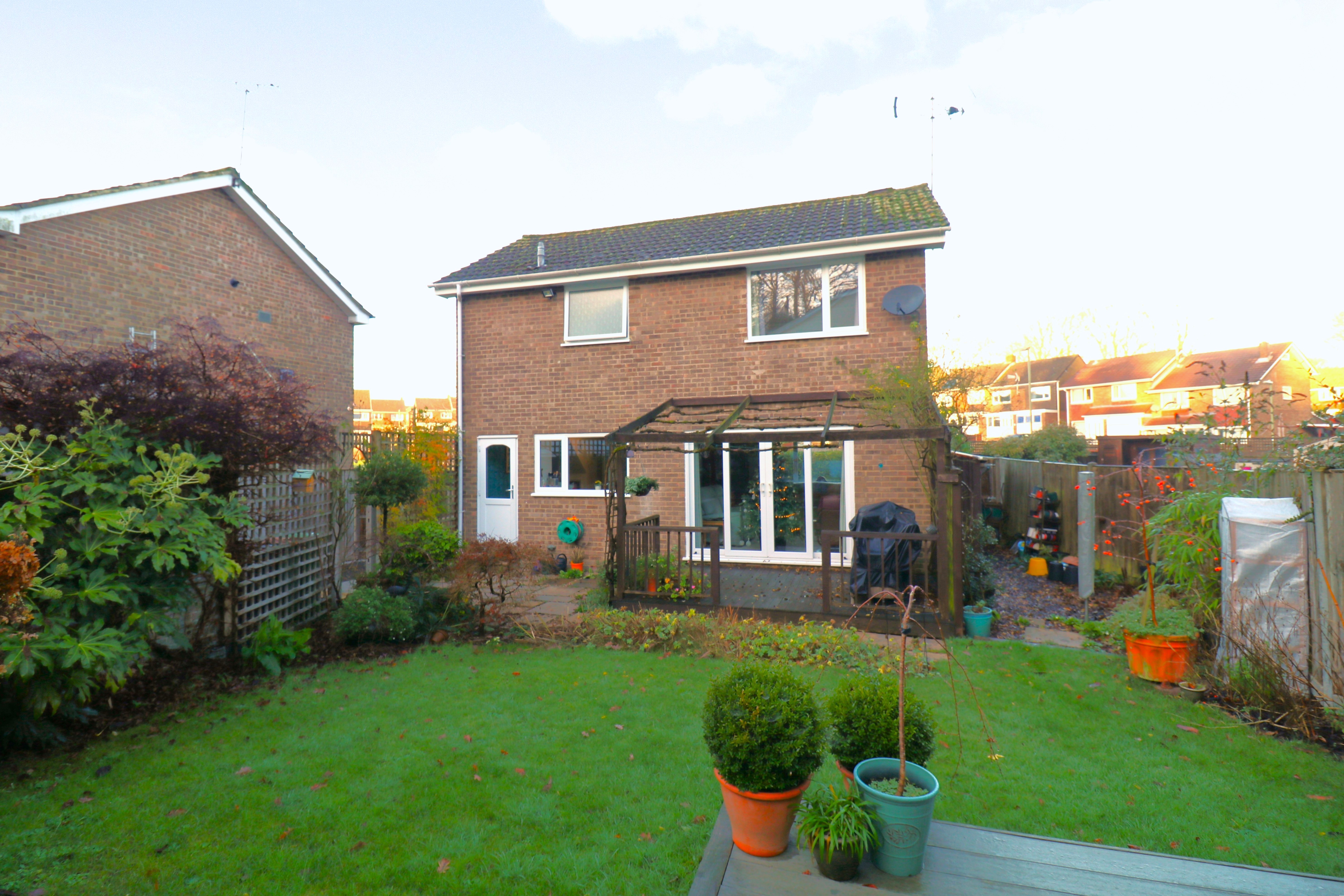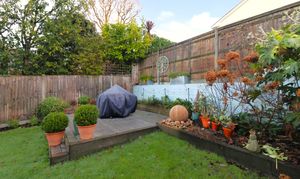 The attractive rear garden enjoys a south easterly aspect and has both decked and paved seating areas, leaving the rest of the garden mainly laid to lawn with planted borders and an additional, decked seating area to one corner.