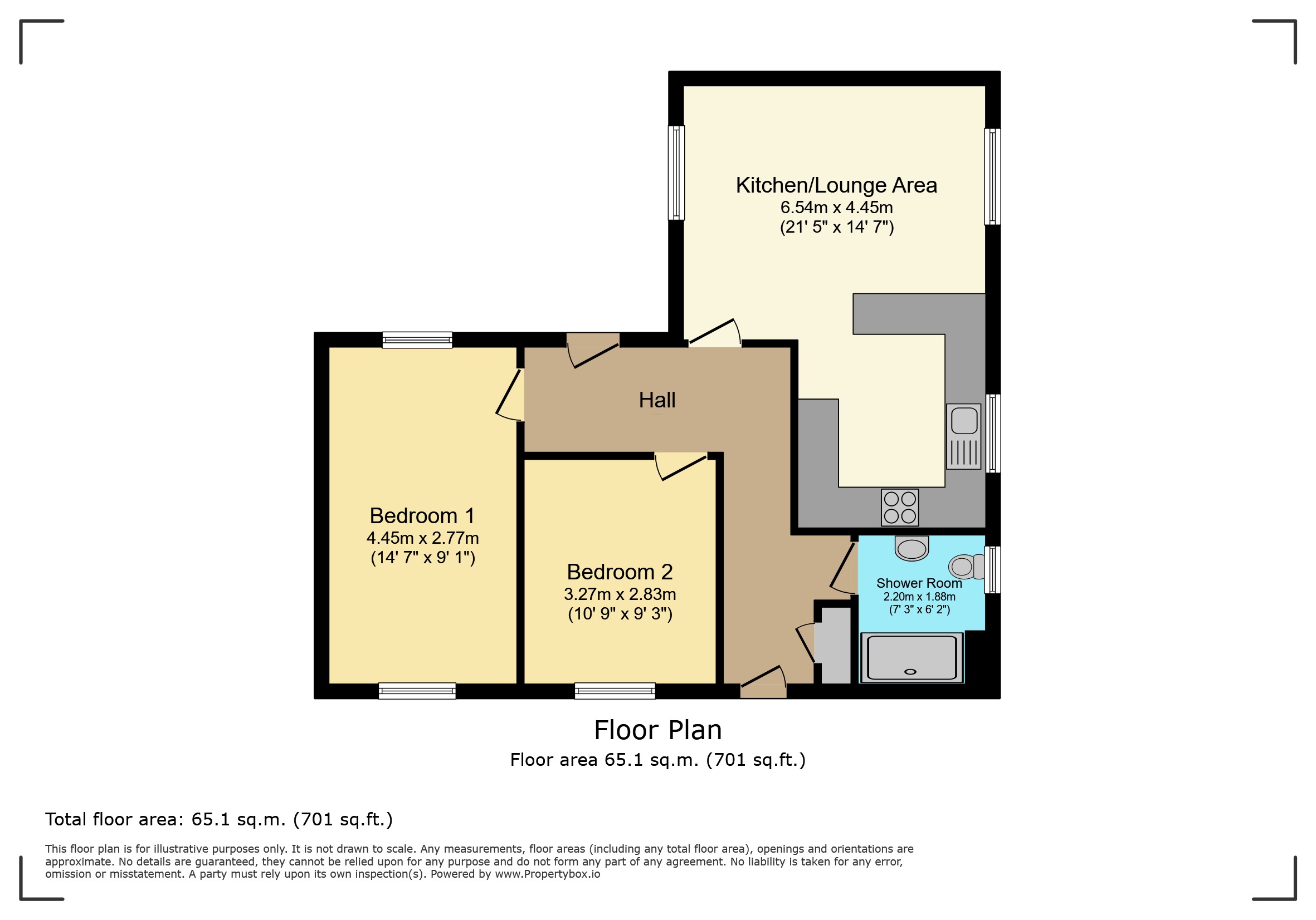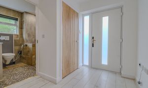 The front door opens into a welcoming hallway that provides access to all rooms. A handy store room and the fully tiled wet room sit to the right, while both bedrooms are positioned along the hallway—each offering good proportions and a stylish finish.