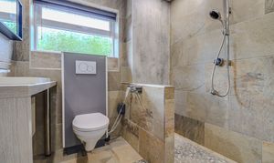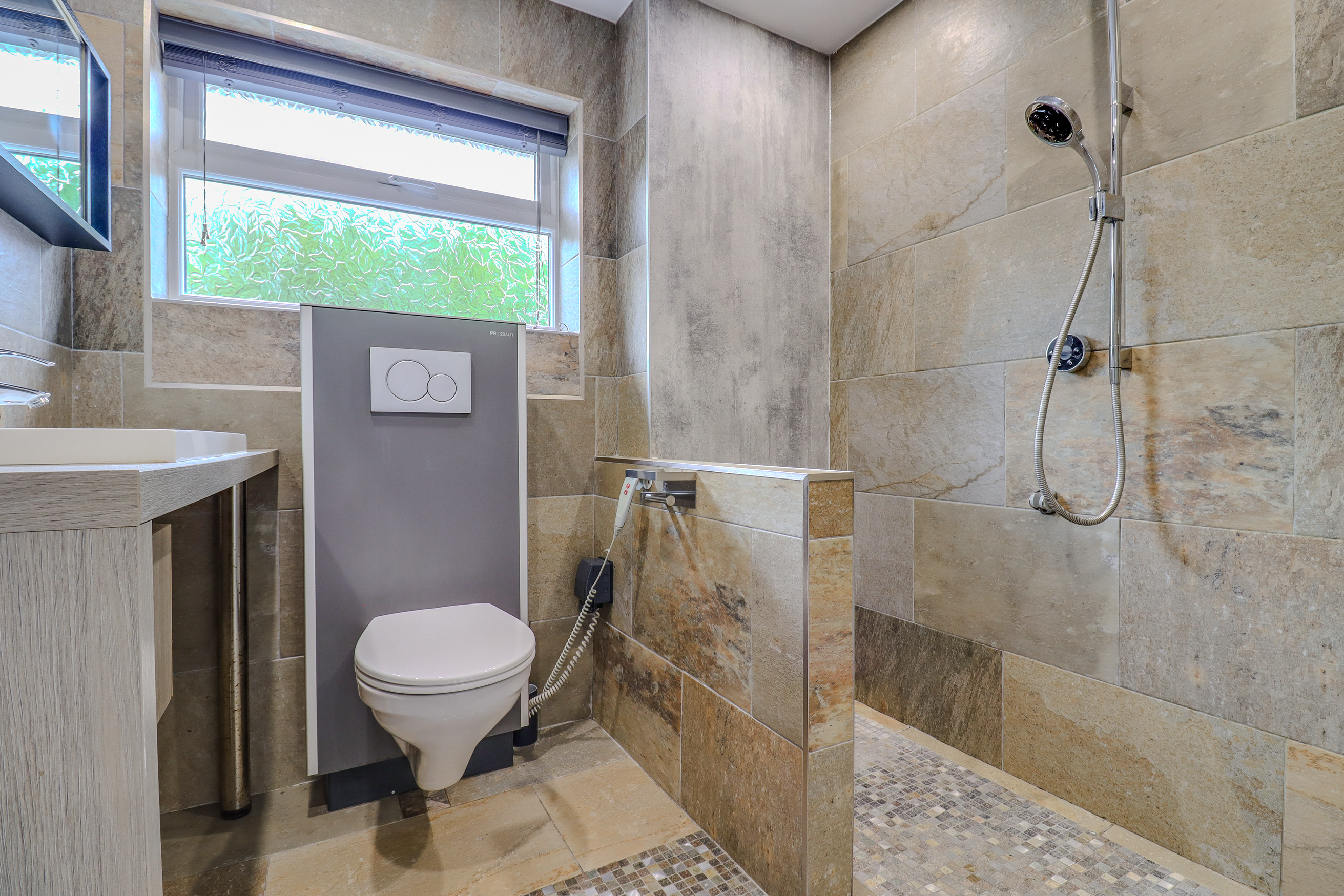 Luxury wet room featuring an adjustable Pressalit toilet
