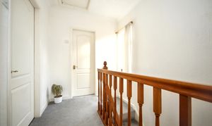 To the first floor, the landing provides access to two generous double bedrooms, a well-proportioned single bedroom, and a contemporary family bathroom.
