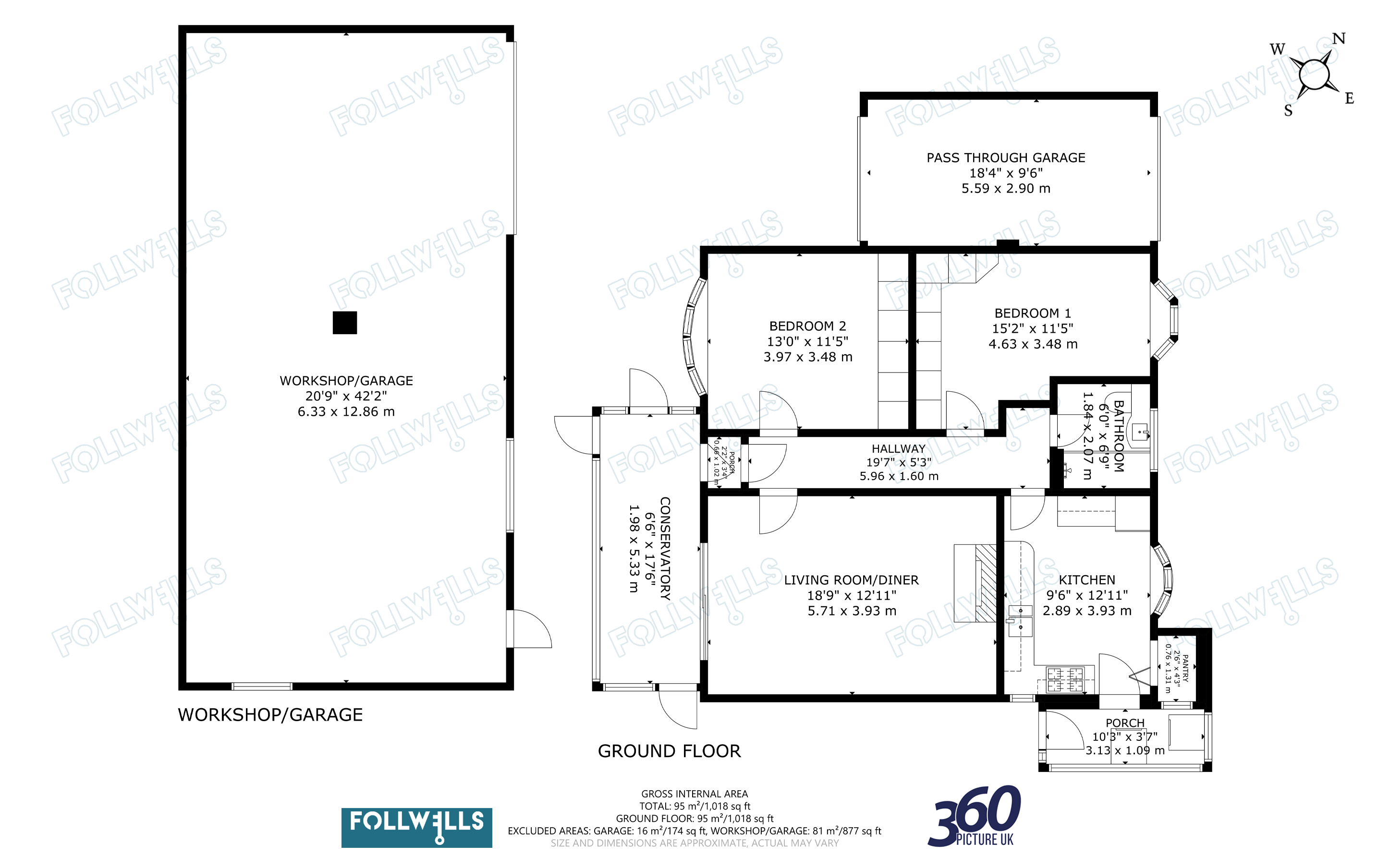 A traditional two bedroom detached bungalow situated within a much sought after road location, providing convenient access for town and main road networks including Junction 15 M6. The bungalow is centrally positioned on a an extensive garden plot with a road frontage in excess of 50 ft (15m) and total depth of approximately 150 ft (45m) with two separate driveways and a drive through garage to the side. This leads to a substantial purpose built brick and block detached workshop (42 ‘2” x 20’10” internal) within the rear garden and with double garage door entrance. A most enviable outbuilding for any car enthusiast or mechanic ! Providing possible alternative change of use as an office, gym or garden entertaining etc, including the possibility of annexe conversion ? (subject to building regulation requirements).