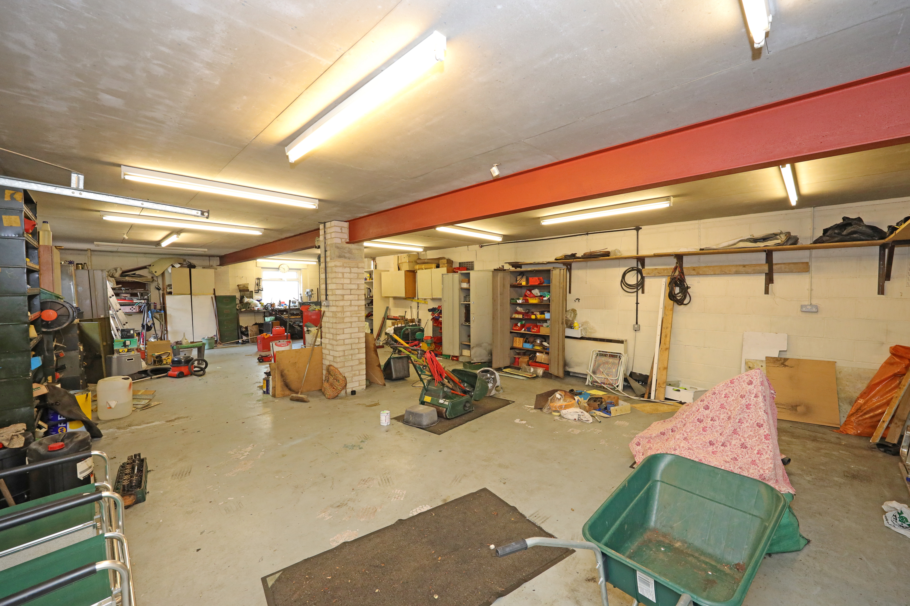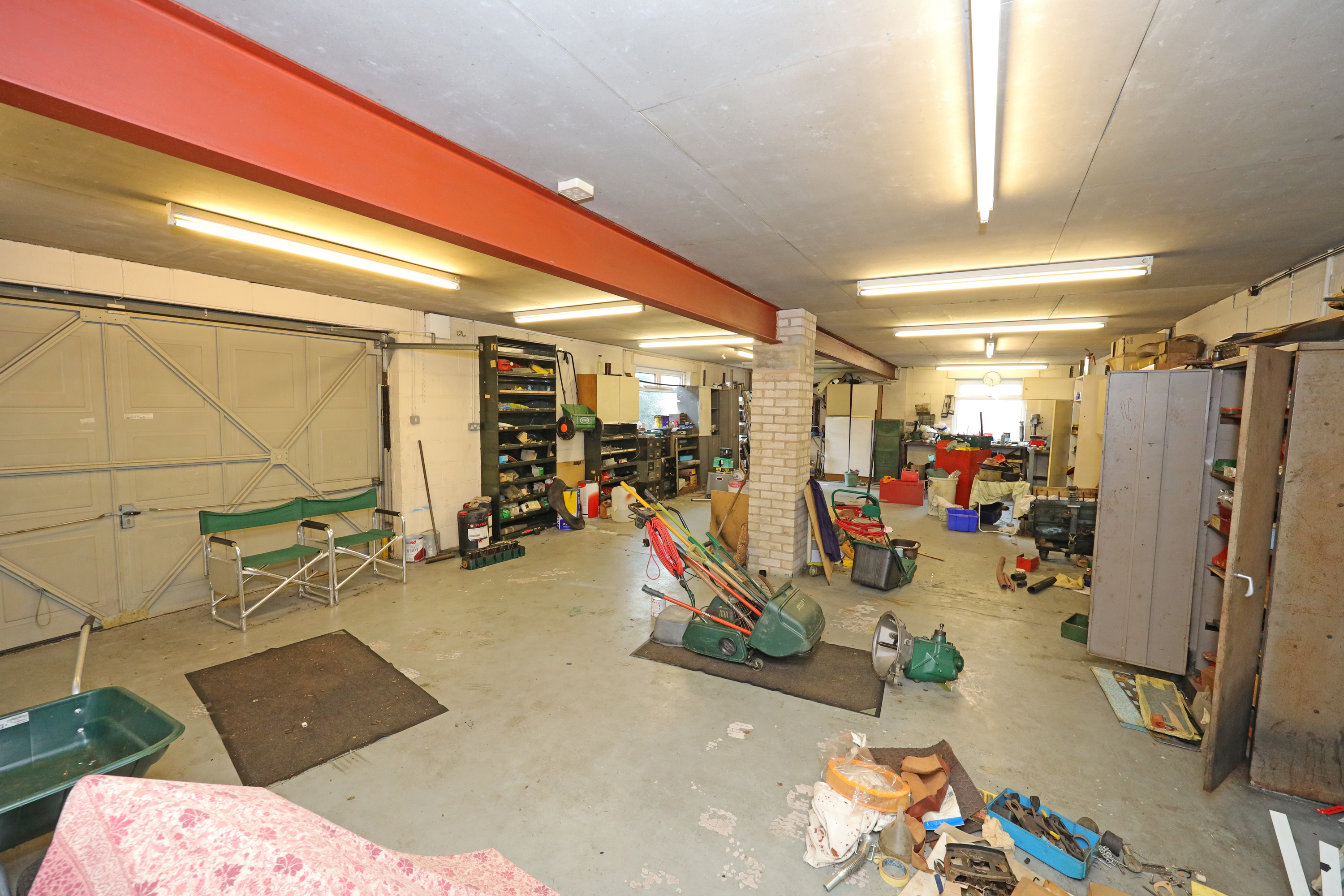 There are two separate driveways providing parking for several vehicles with the right hand driveway continuing to an attached garage having dual access front and rear up and over doors with drive-through driveway continuing through to the rear garden and leading to the substantial detached workshop internally measuring (42ft 2” x 20’10”) This has double up and over door, numerous power point connection, separate personal door access and window.