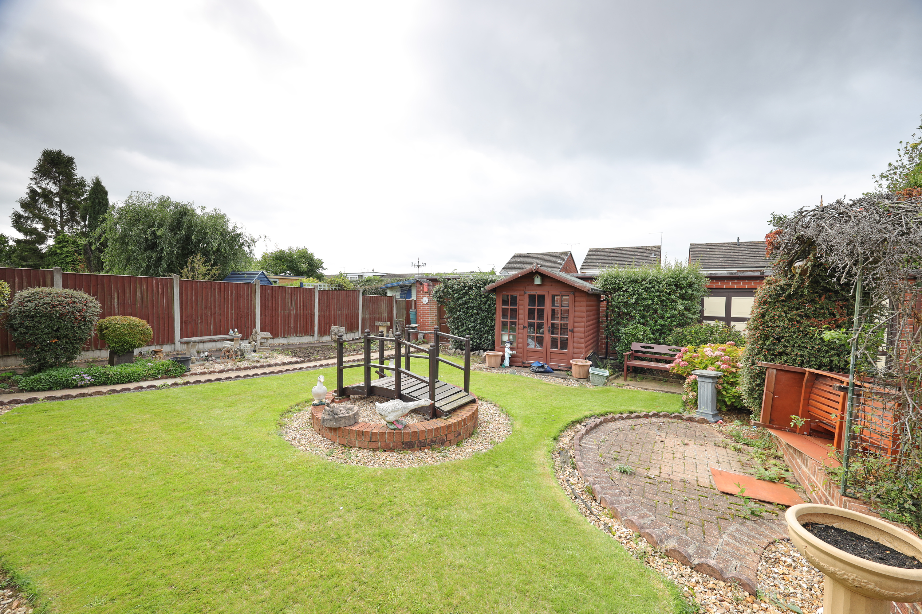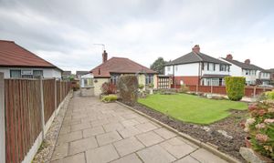 There are good depth garden areas to both front and rear with lawns, borders and various pathways. Boundary wall to front and fence enclosures with access for to either side of the bungalow.