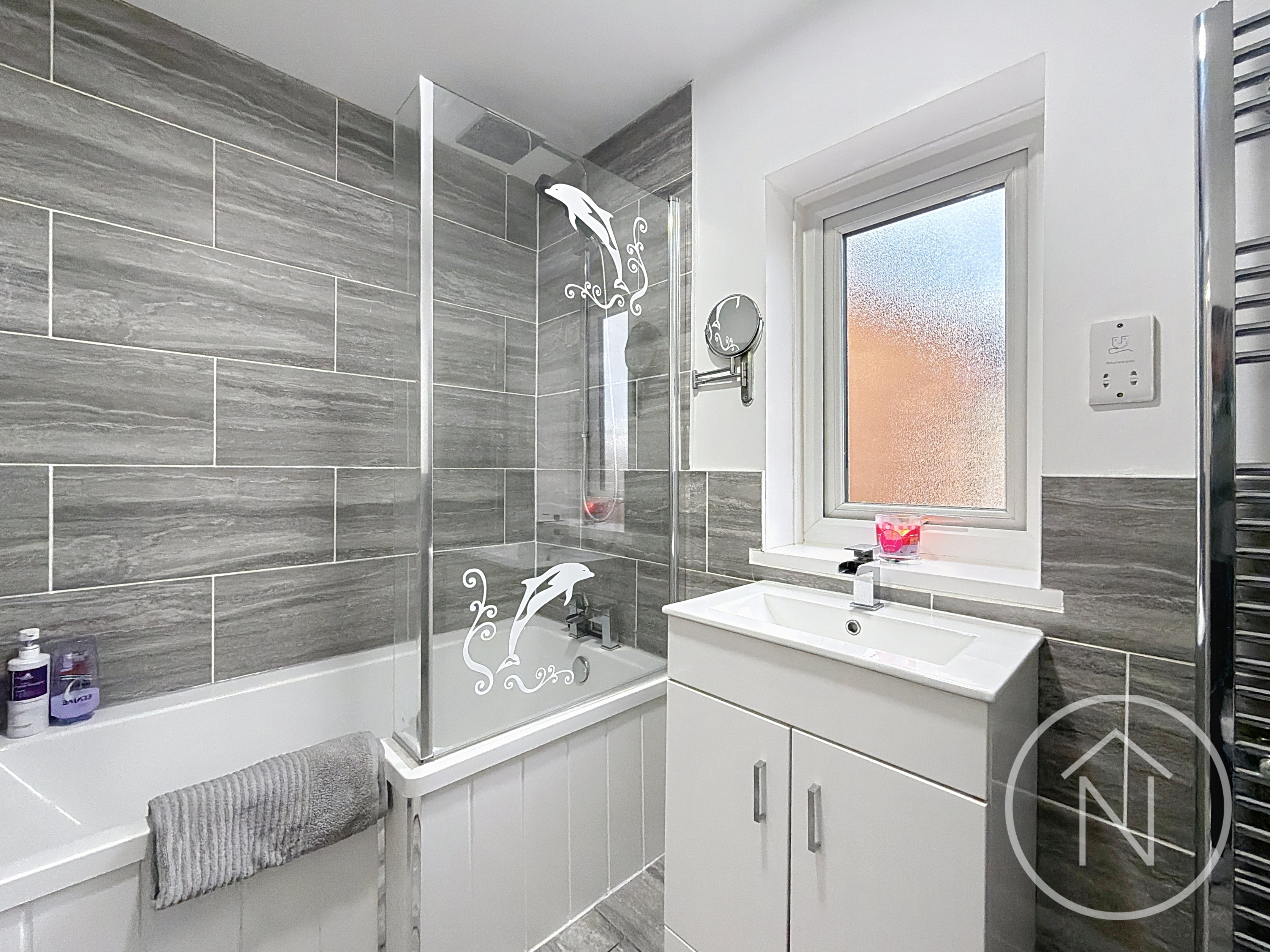 Additional benefits include a stylish modern bathroom with elegant tiling, a bath with shower over, and a heated towel rail for added comfort. The bedrooms are well-proportioned, providing inviting retreats. Outside, the property boasts a low-maintenance garden featuring artificial grass, a paved patio area for outdoor entertaining, and secure wooden fencing for privacy. Off-road parking is available via a spacious driveway, complemented by a well-maintained front lawn that enhances the property’s kerb appeal. This home is perfect for first time buyers and families.