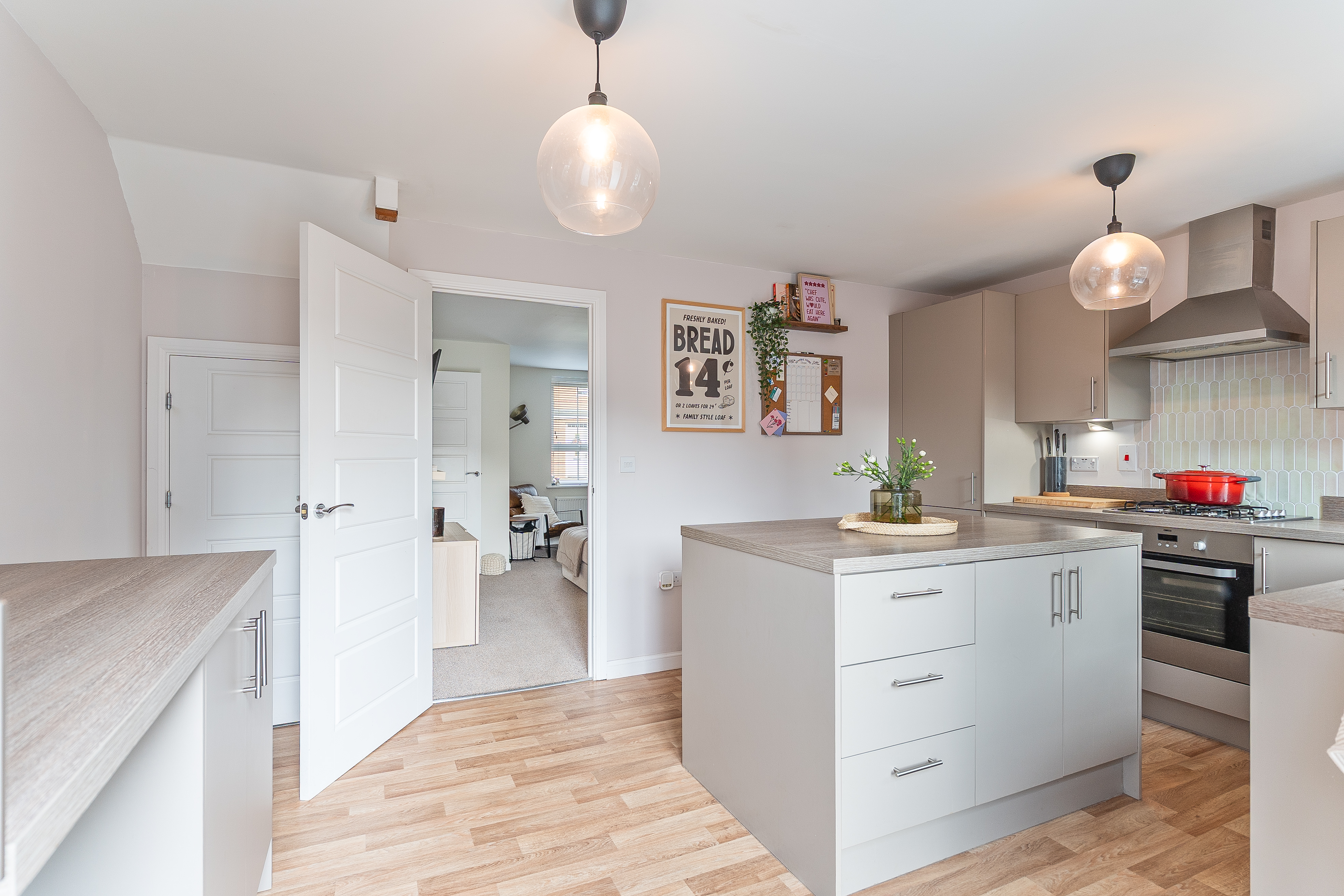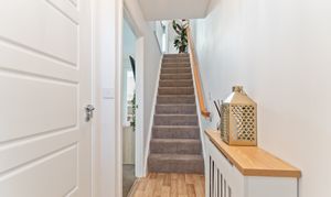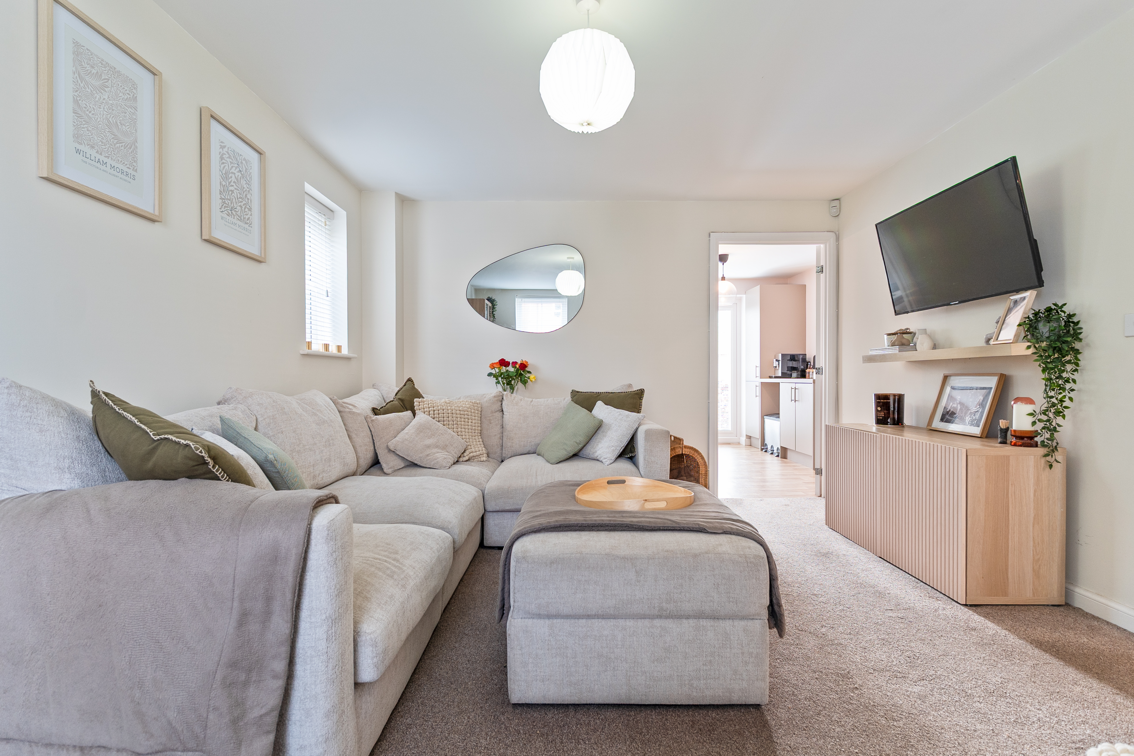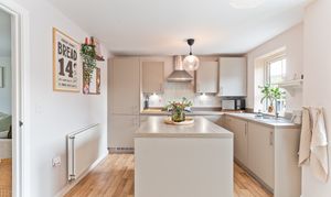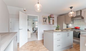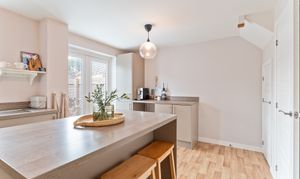Upon entering the home, you are welcomed into a bright hallway that provides access to the main living areas, a convenient cloakroom and the staircase to the first floor. To the left sits the well-presented lounge, a warm and inviting space ideal for relaxation. From here, a door leads through to the impressive modern kitchen/breakfast room. This contemporary space features a central island with breakfast bar, stylish fitted units and ample worktop space, making it perfect for both everyday cooking and social dining.
