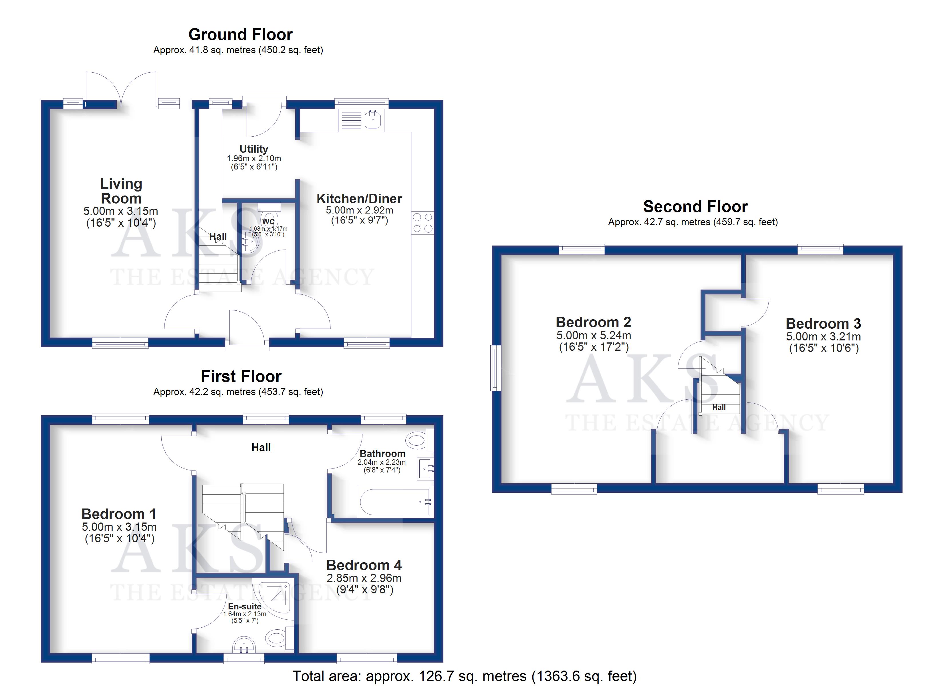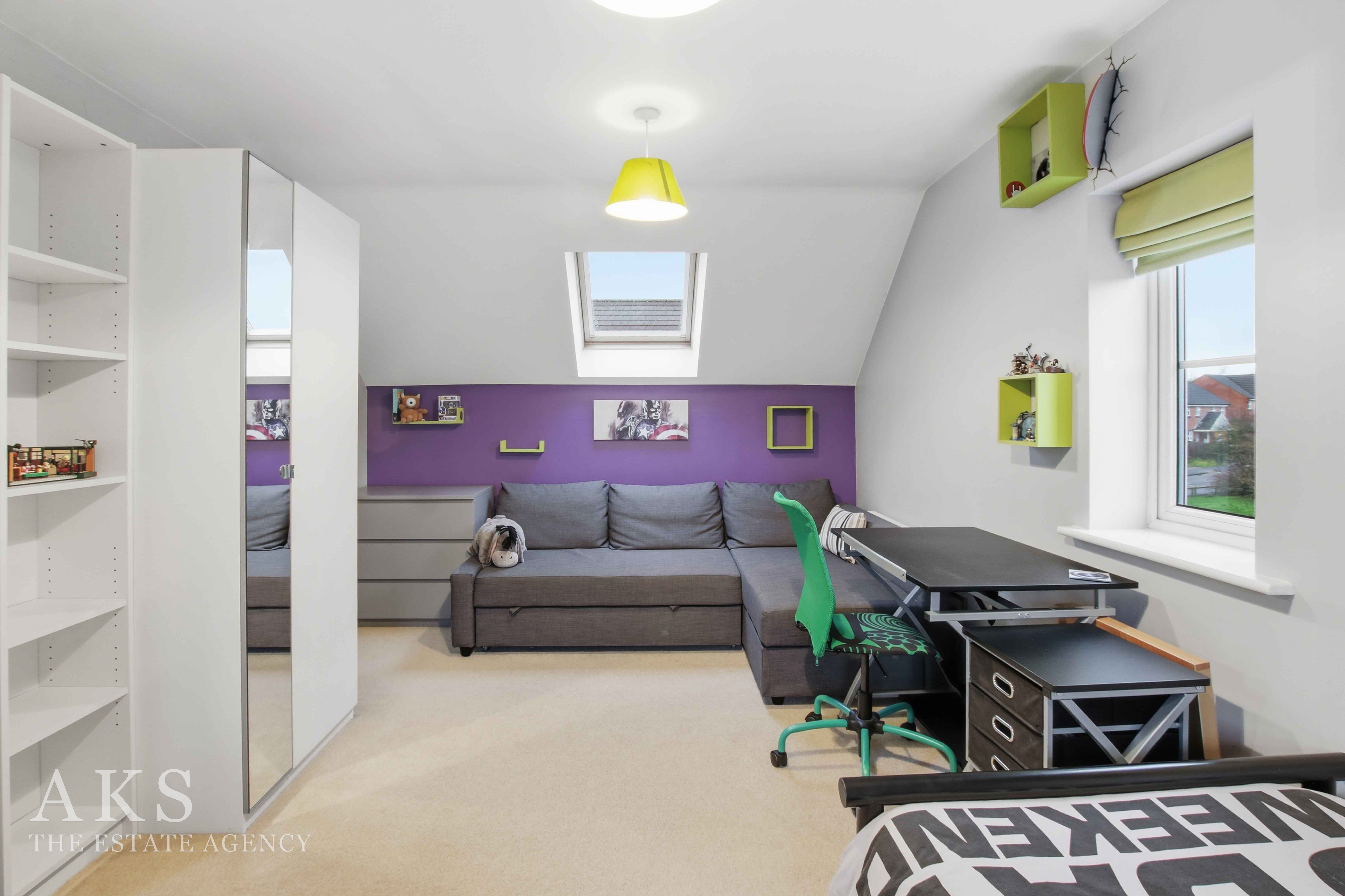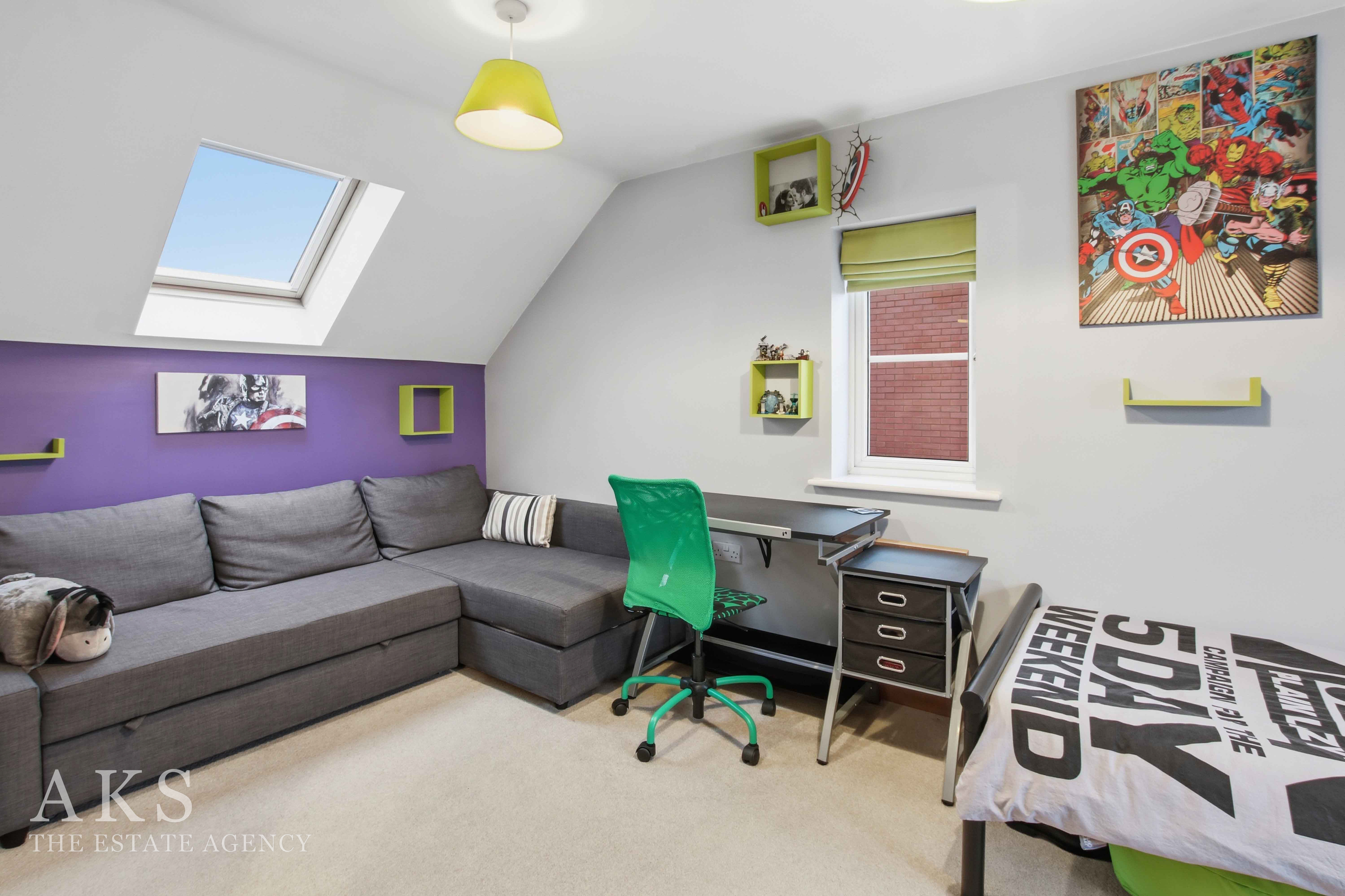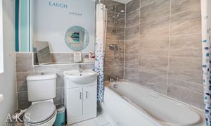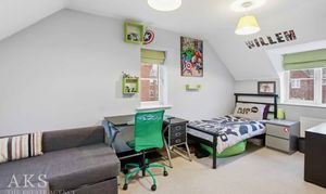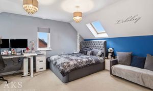 Upstairs on the first floor you’ll find bedroom 1 and bedroom 4, bedroom 1 also has a modern and spacious en-suite. The family bathroom is also on this floor, which is a fully tiled, lovely neutral room with a shower over the bath. The top floor is a fantastic space where there’s two further large double bedrooms, both have skylights creating a wonderful bright space.