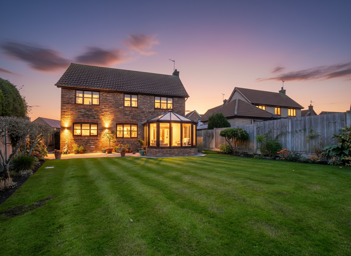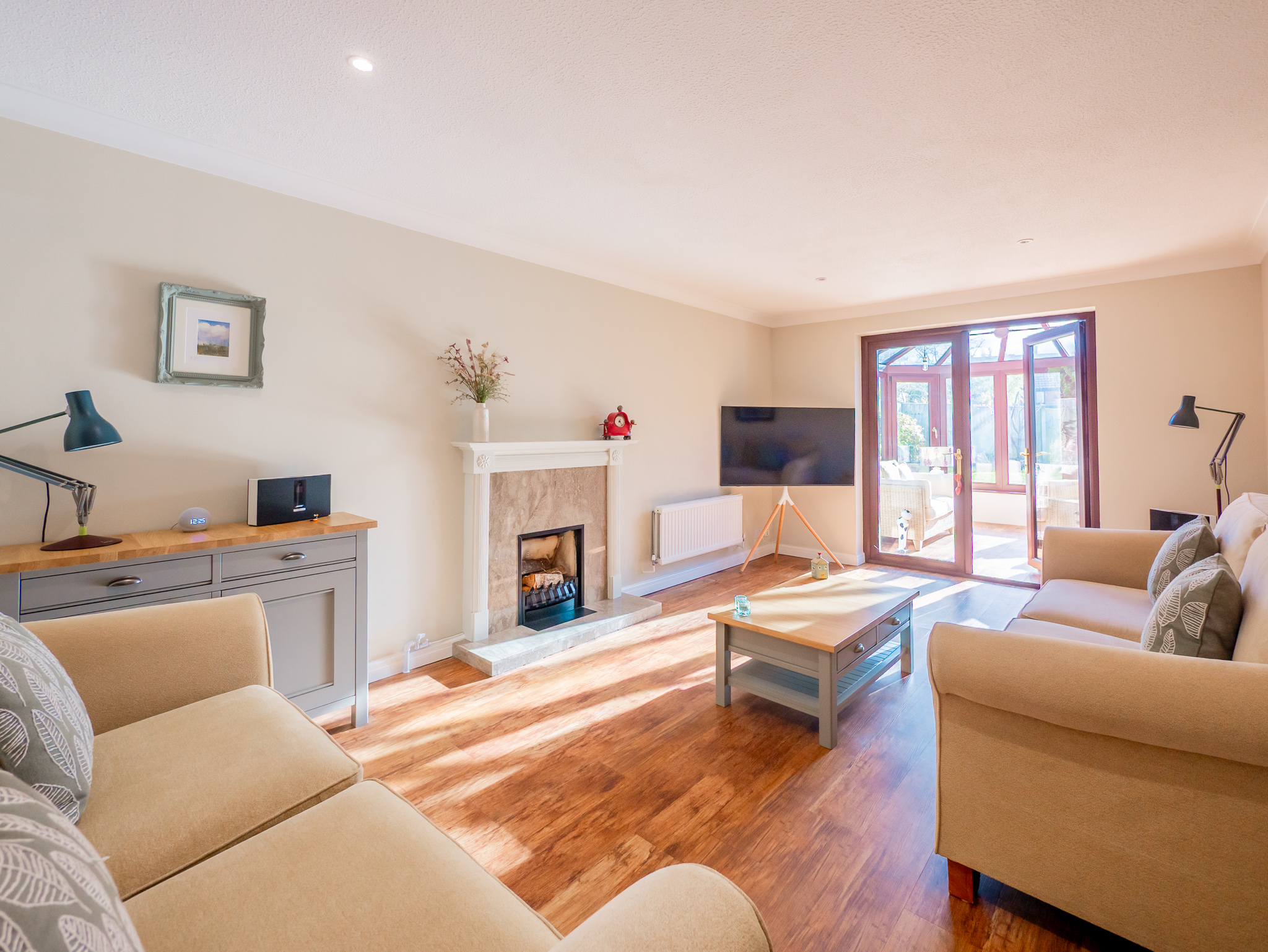 The heart of this home lies in the spacious kitchen/breakfast room, where mornings are filled with the aroma of freshly brewed coffee and pancakes sizzling on the stove. Adjacent, the conservatory invites you to bask in natural light while enjoying tranquil garden views.