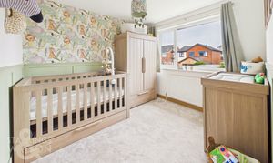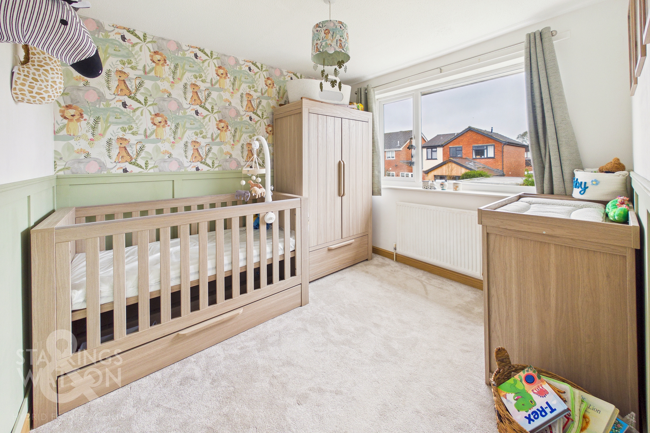 The first floor landing is finished with fitted carpet with a newly installed handrail and balustrades to the stairs. An open shelved storage area offers storage, with timber latch and brace doors taking you to the bedroom and bathroom accommodation. Each of the bedrooms are finished with fitted carpet and uPVC double glazing, with the main bedroom including a large open fronted wardrobe with hanging and shelved storage. The family bathroom has been re-fitted and offers a white three piece suite including a shaped panelled bath with a thermostatically controlled twin head rainfall shower and glazed shower screen, with tiled splash-backs and wood effect flooring.