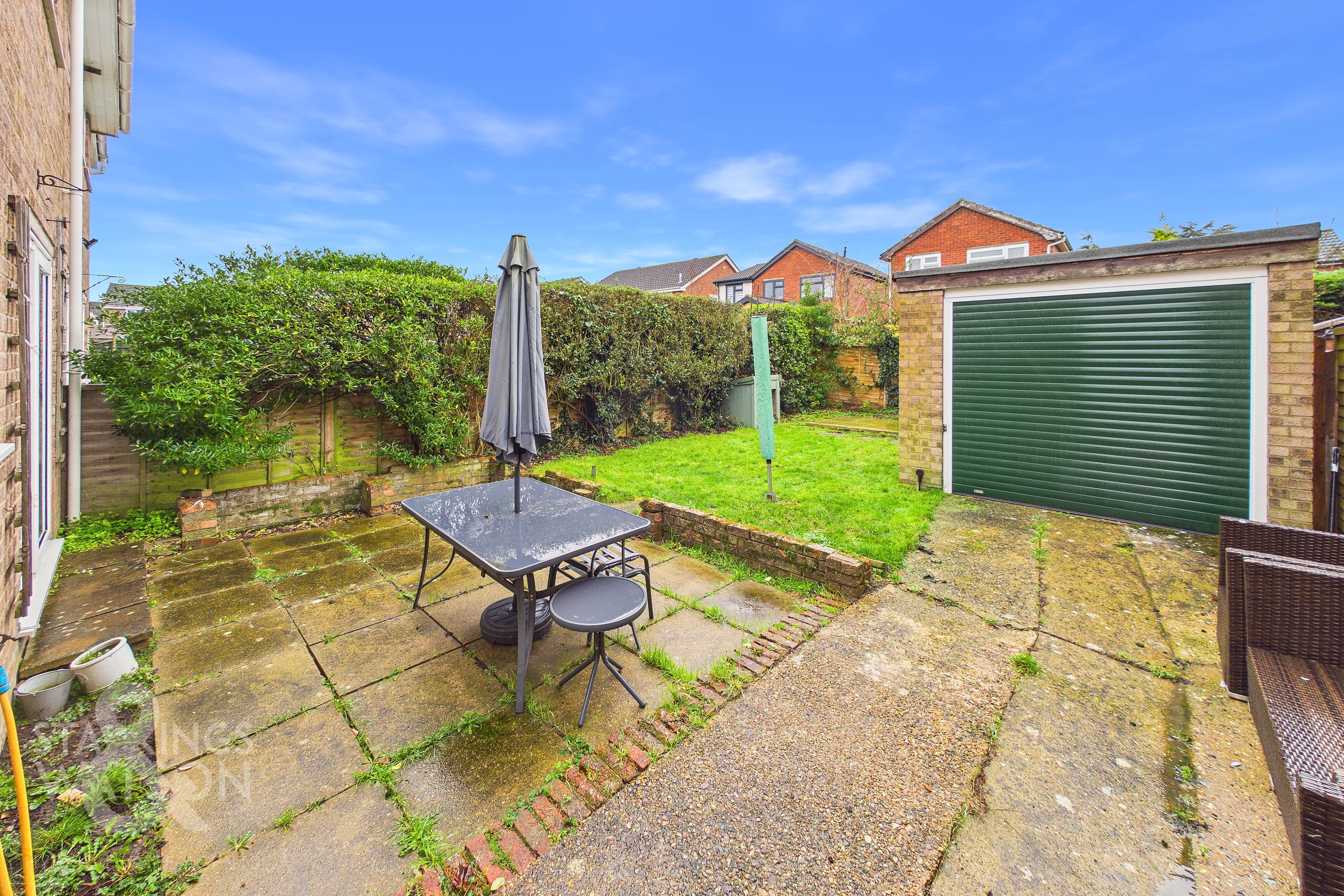 THE GREAT OUTDOORS Heading outside, the rear garden offers a fully enclosed space with hedge and fence boundaries, with a central lawn and two patio seating areas - offering an ideal outside entertaining space. The hard standing driveway continues at the side of the property, leading to the detached garage. The garage itself is accessed via an electric roller door to front with power and lighting installed.