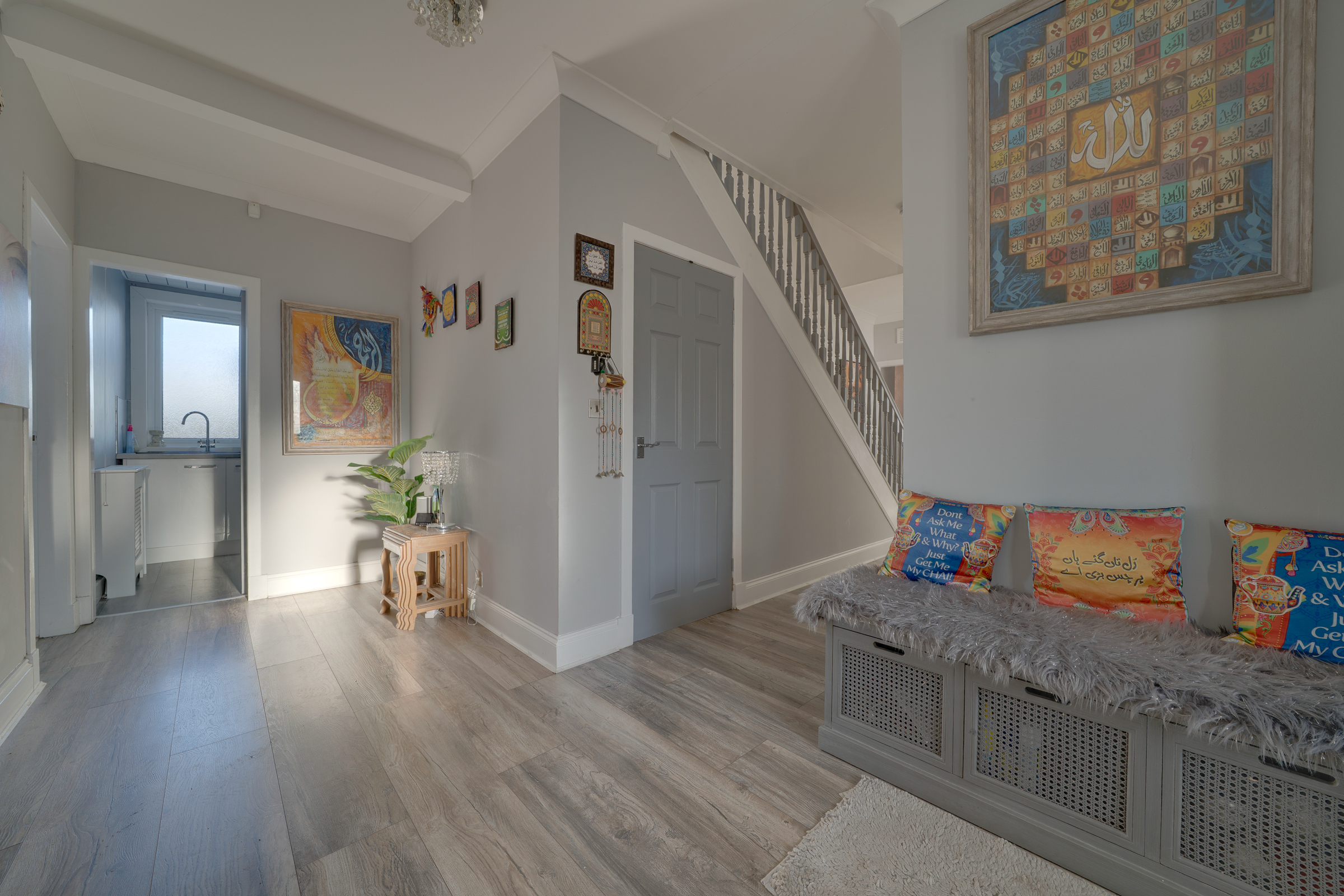 With a driveway that can accommodate several cars, parking will never be an issue. The double garage has been converted and could be used to run your own business from home. The enclosed rear garden provide’s even more space for storage and outdoor activities.