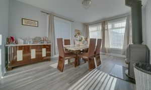 The dining room is the perfect setting for intimate dinners or festive gatherings and boasts a wood burner, while the exquisite main bathroom and en-suites offer a touch of elegance and sophistication.