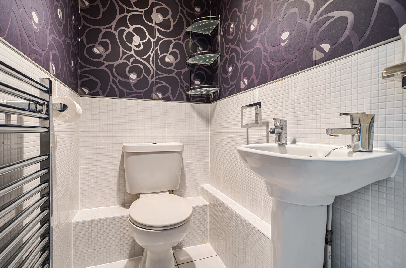 The modern kitchen comes fully equipped with integrated appliances, while French doors from the sitting room open onto a private balcony. The property also features a welcoming entrance hall, a cloakroom, and a spacious double bedroom with built-in wardrobes and an en-suite bathroom.