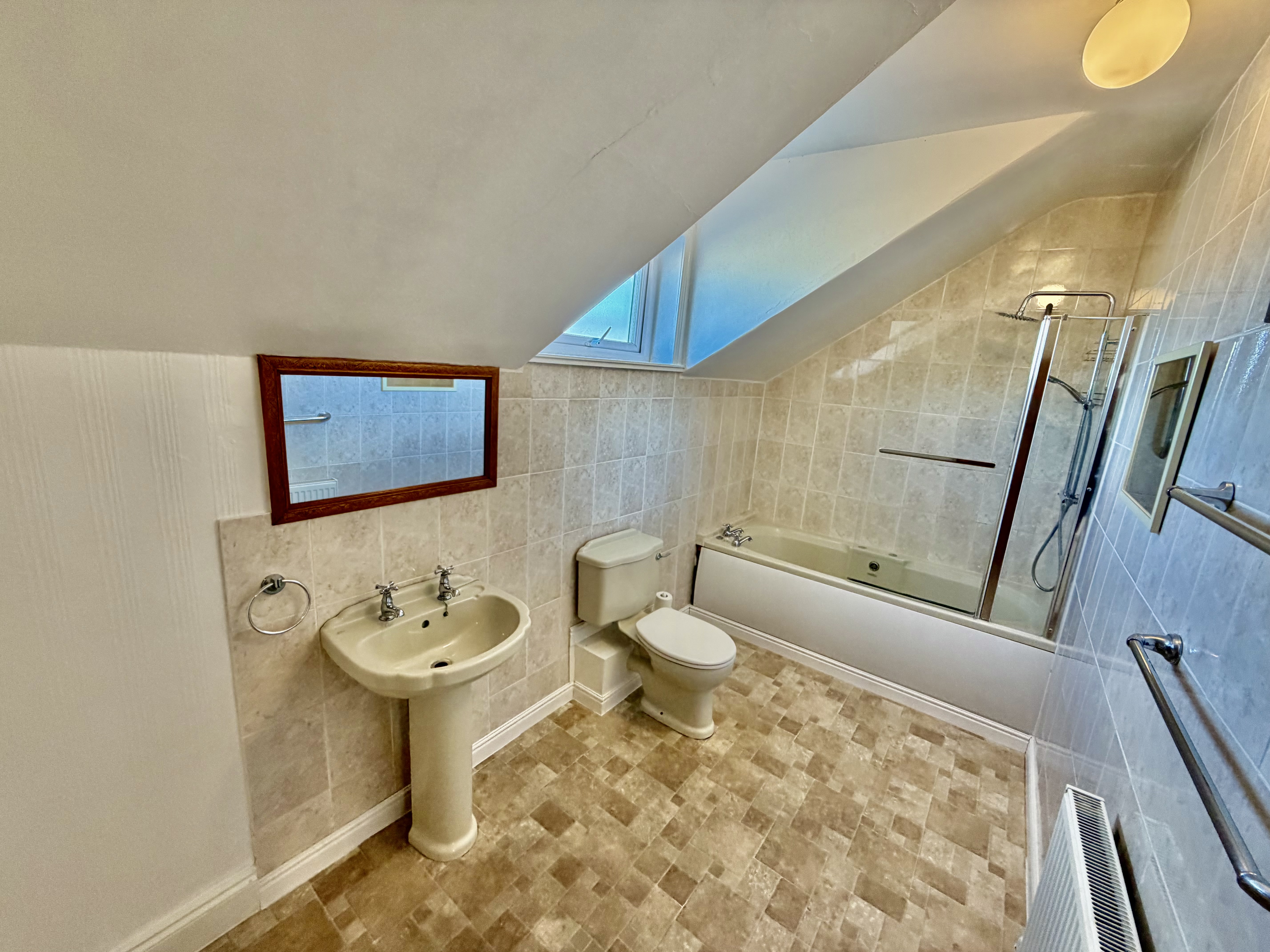 Upstairs are two double bedrooms and the bathroom complete with low level hand basin, WC and bath with over head shower.