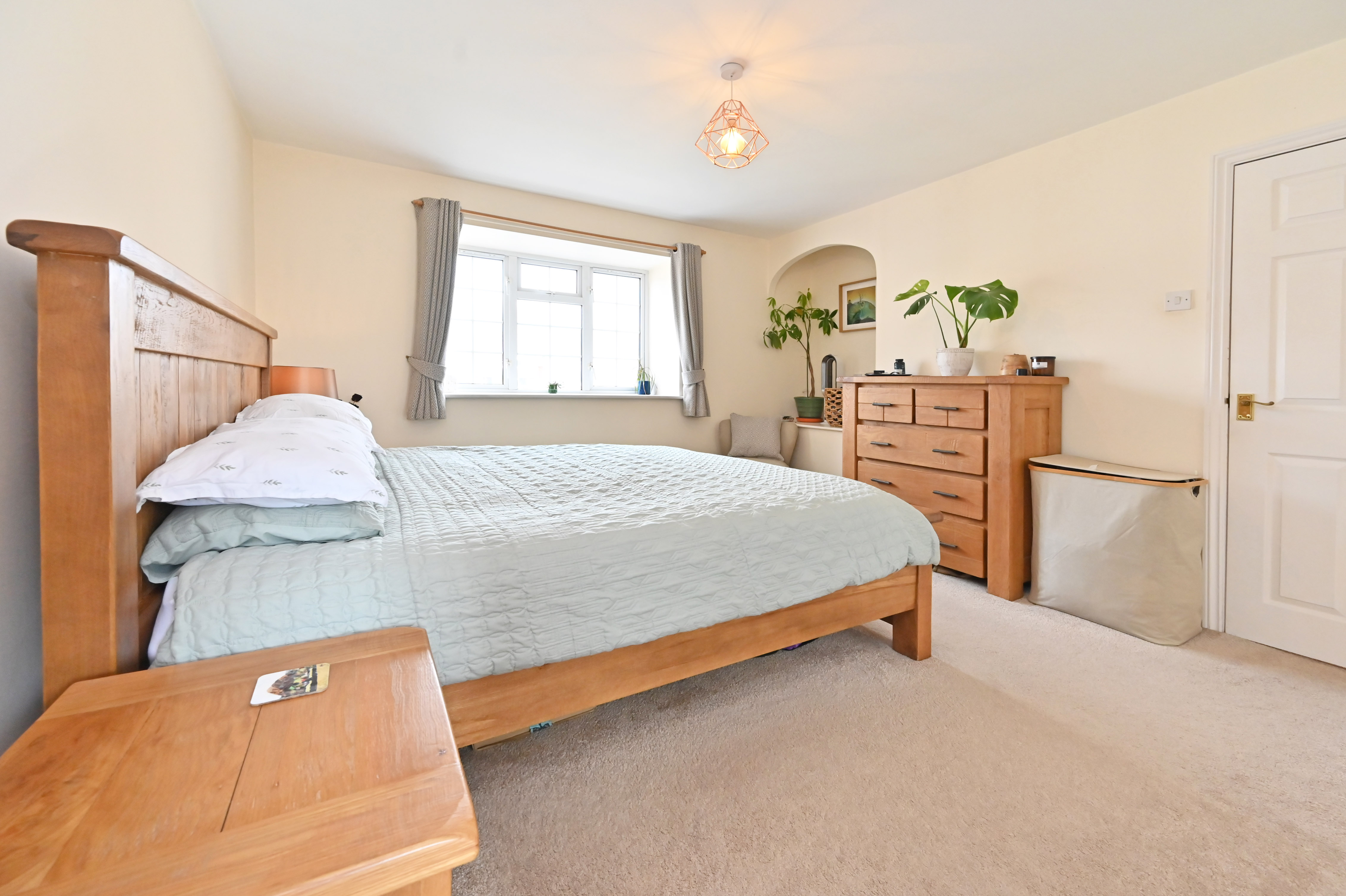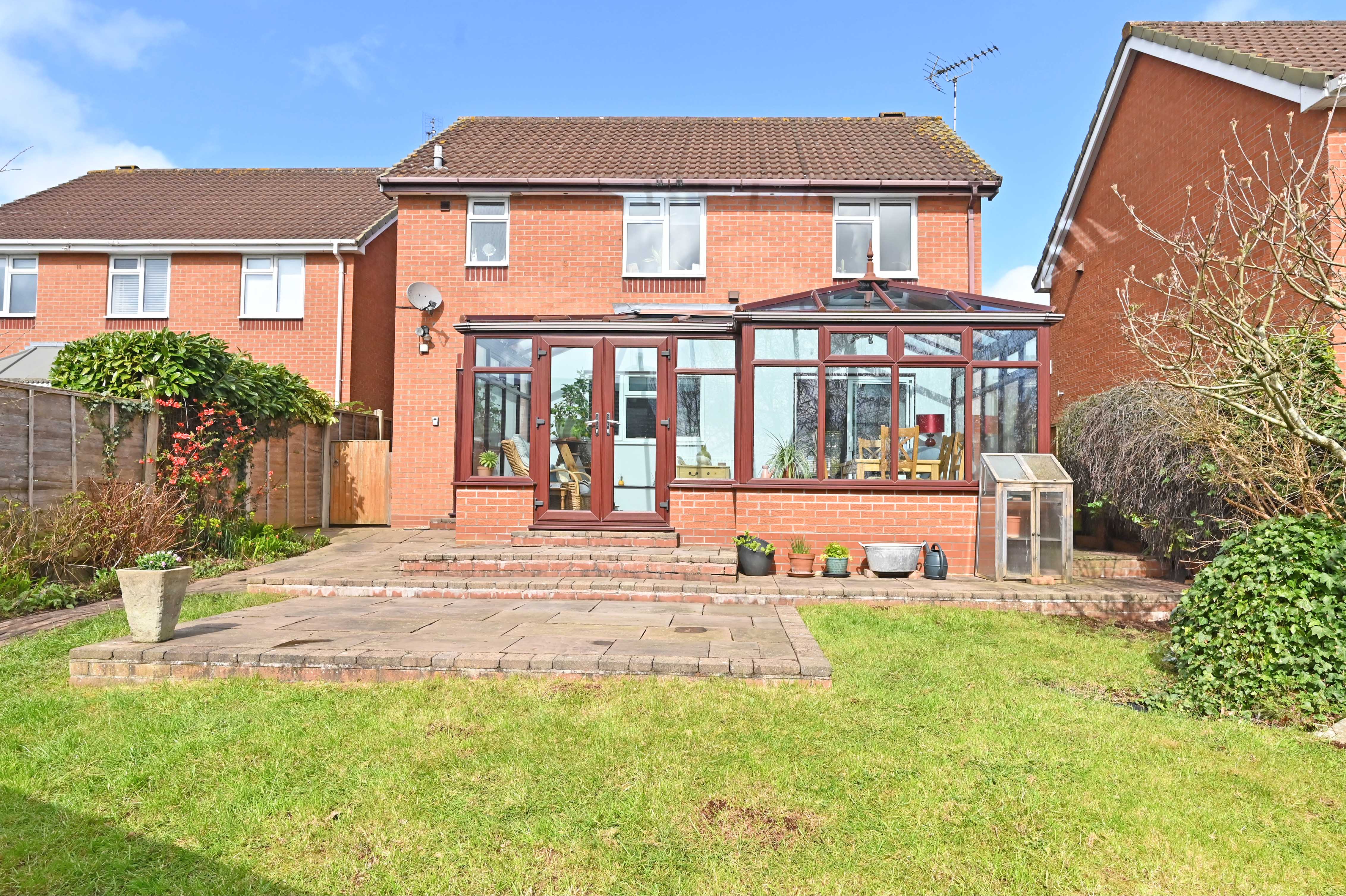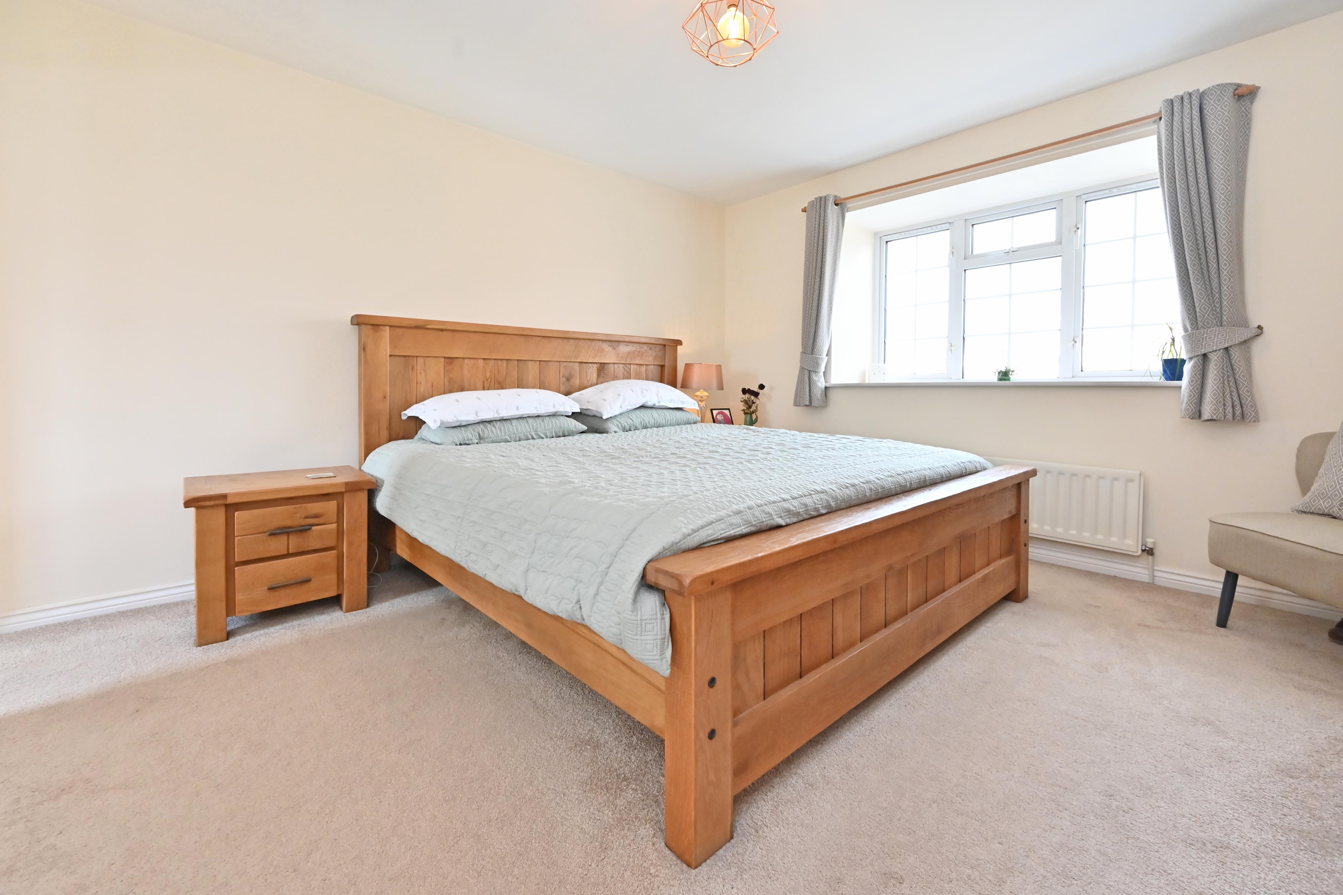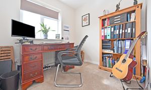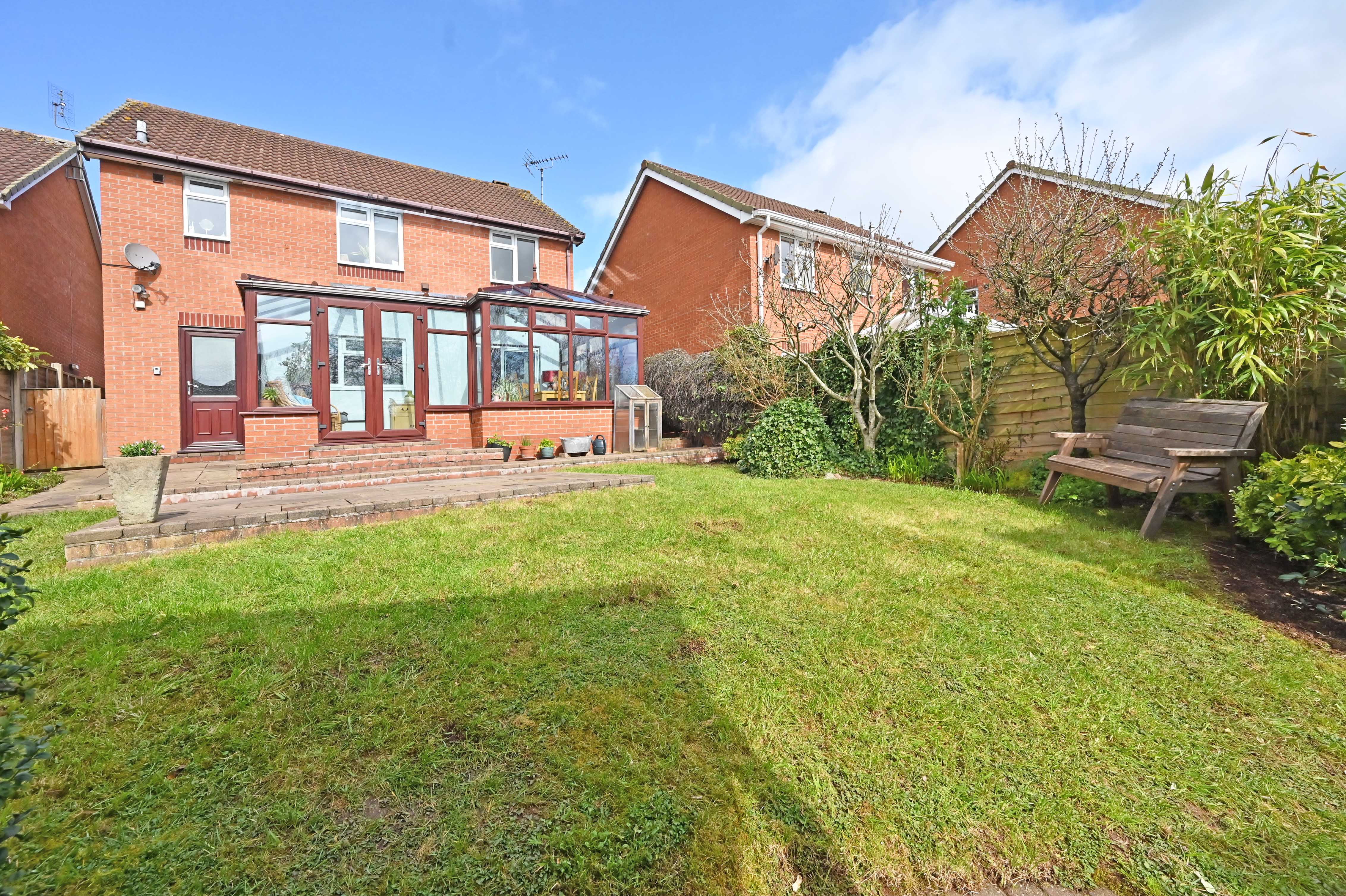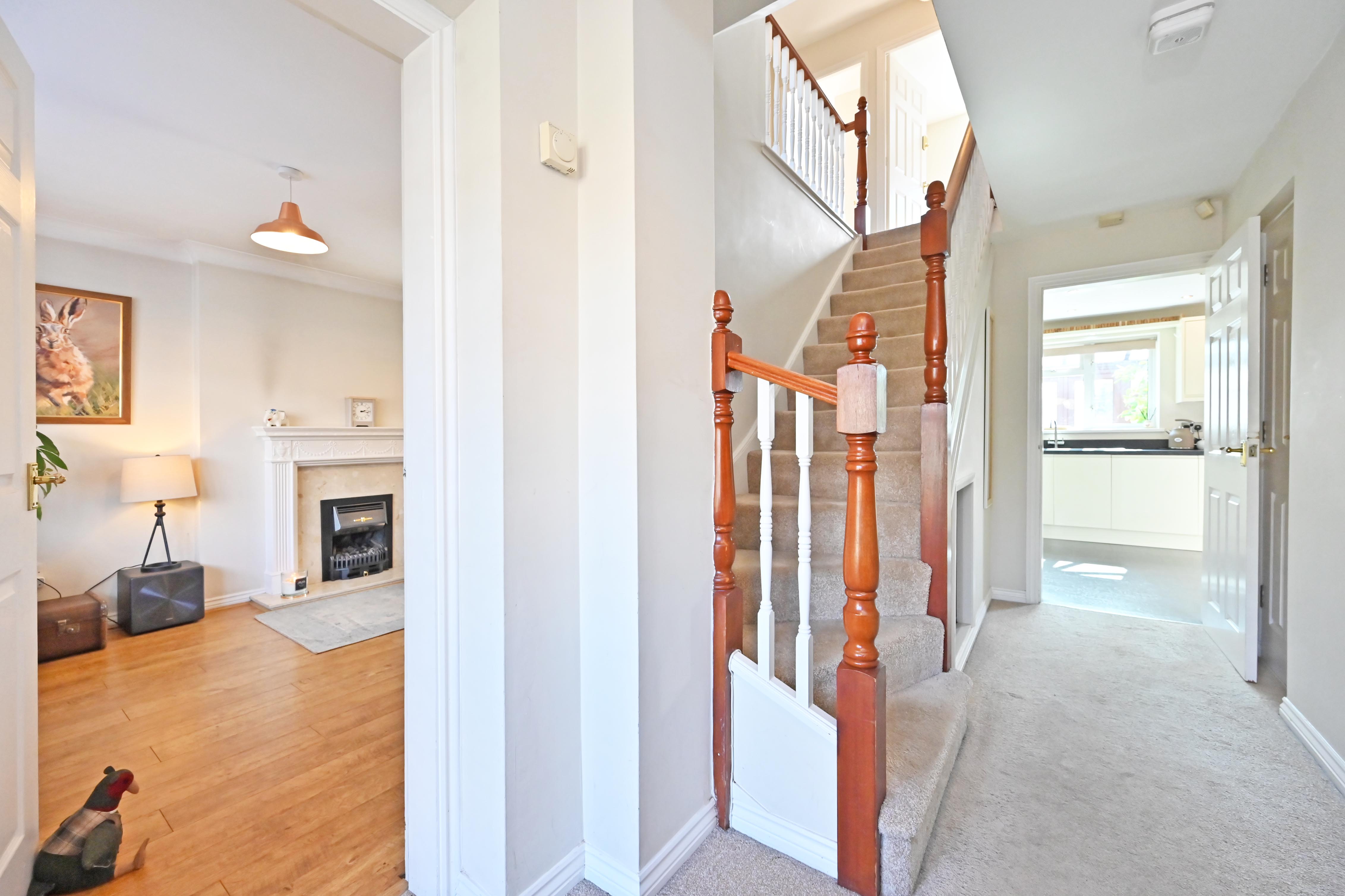 The detached family home is towards the head of a quiet cul-de-sac, the outlook to the front is pleasantly open and not overlooked. A footpath at the end of the cul-de-sac leads to open fields over which the first-floor bedrooms sneak a view.