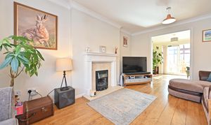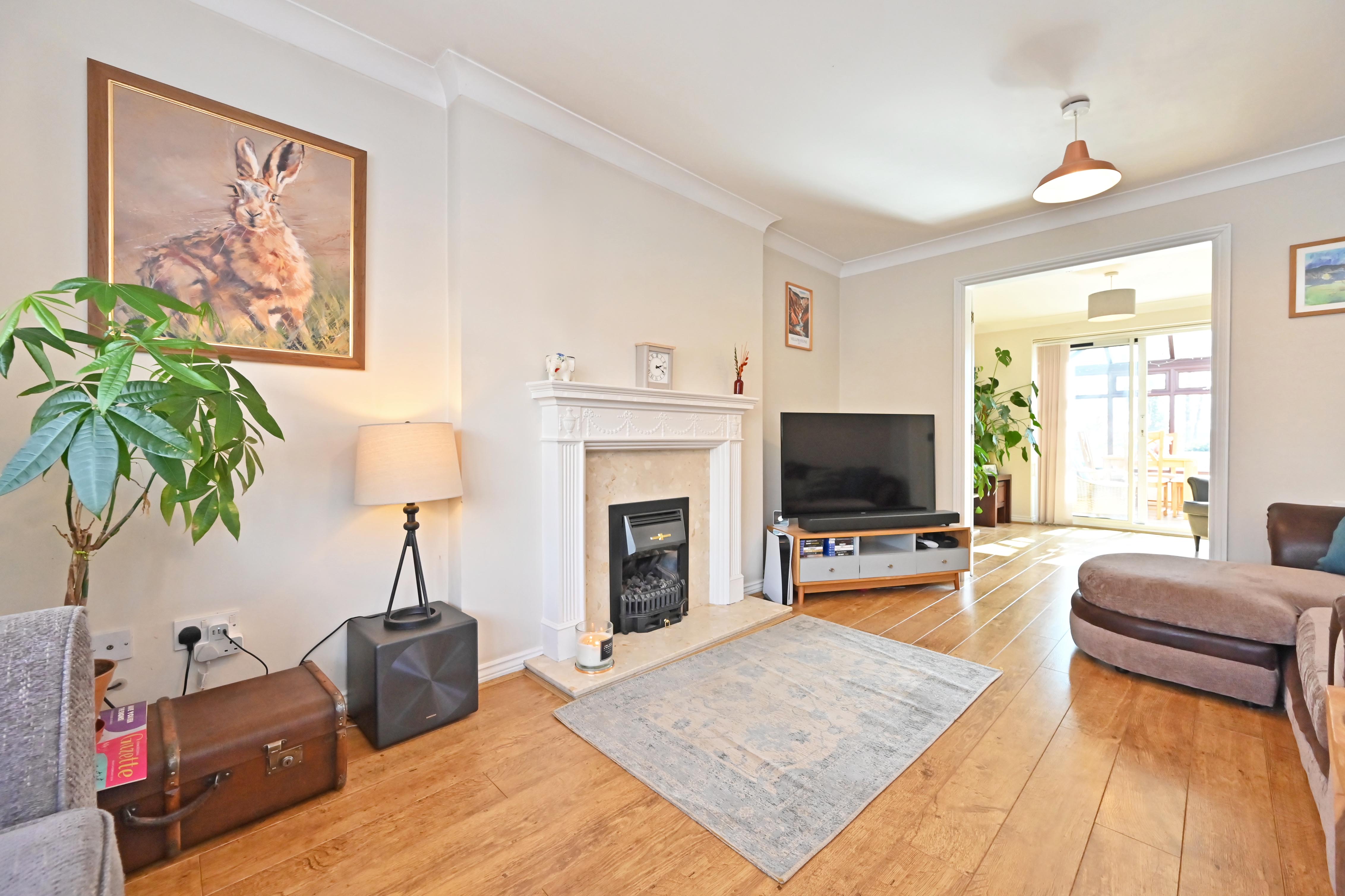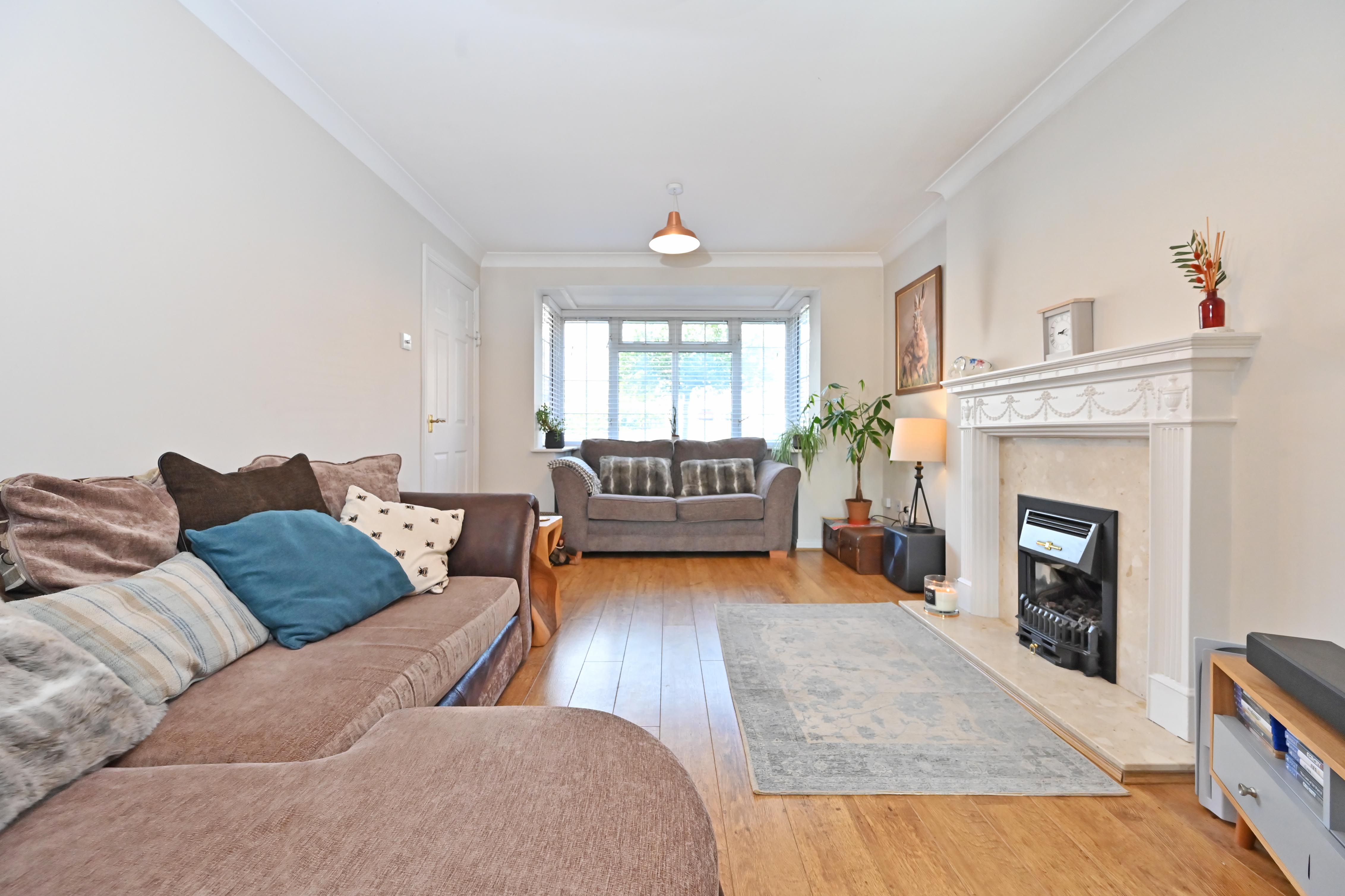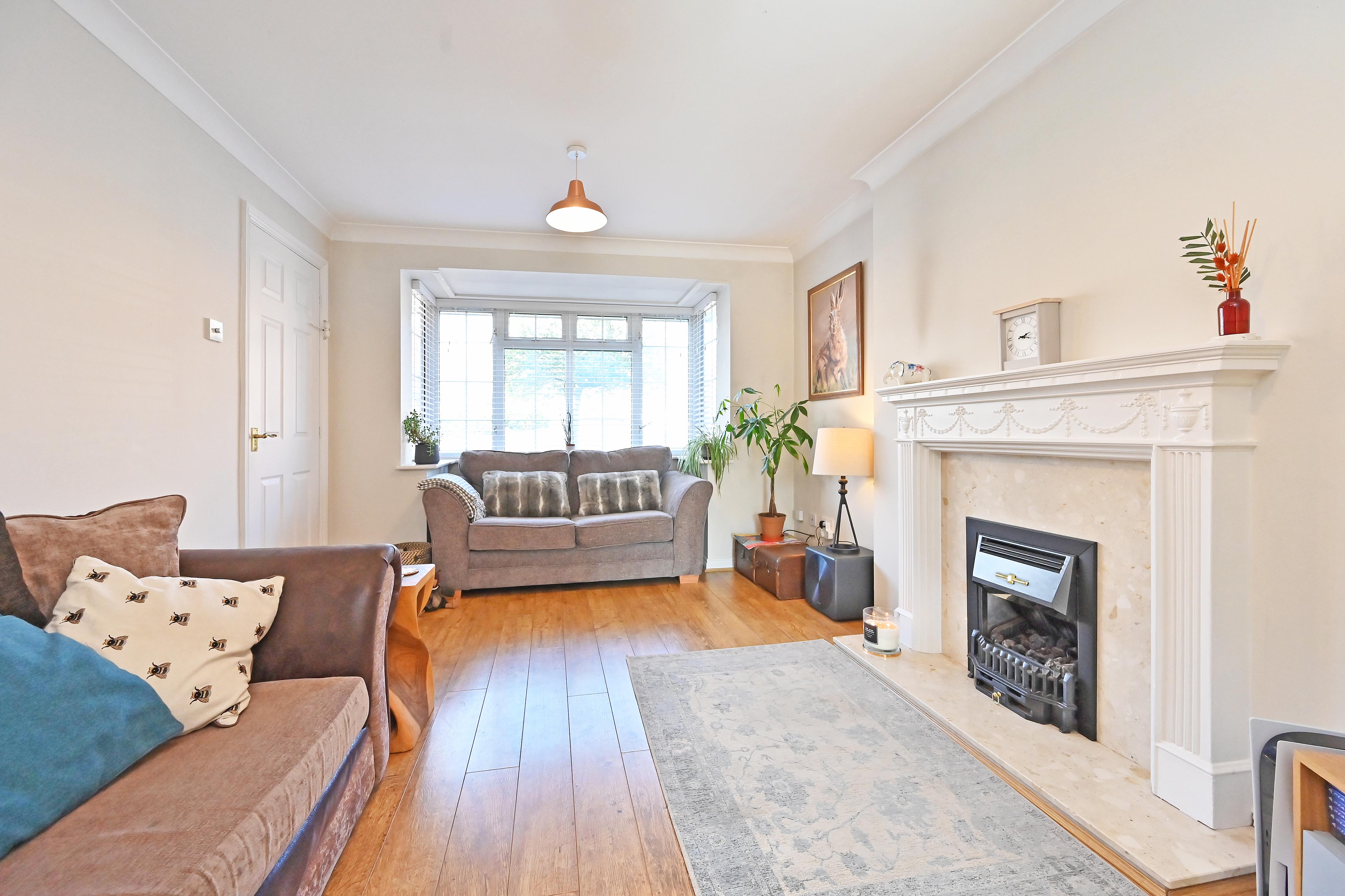 Double glazed bay window to front with open outlook, engineered wood floor, gas fire in surround. Double doors into the dining room