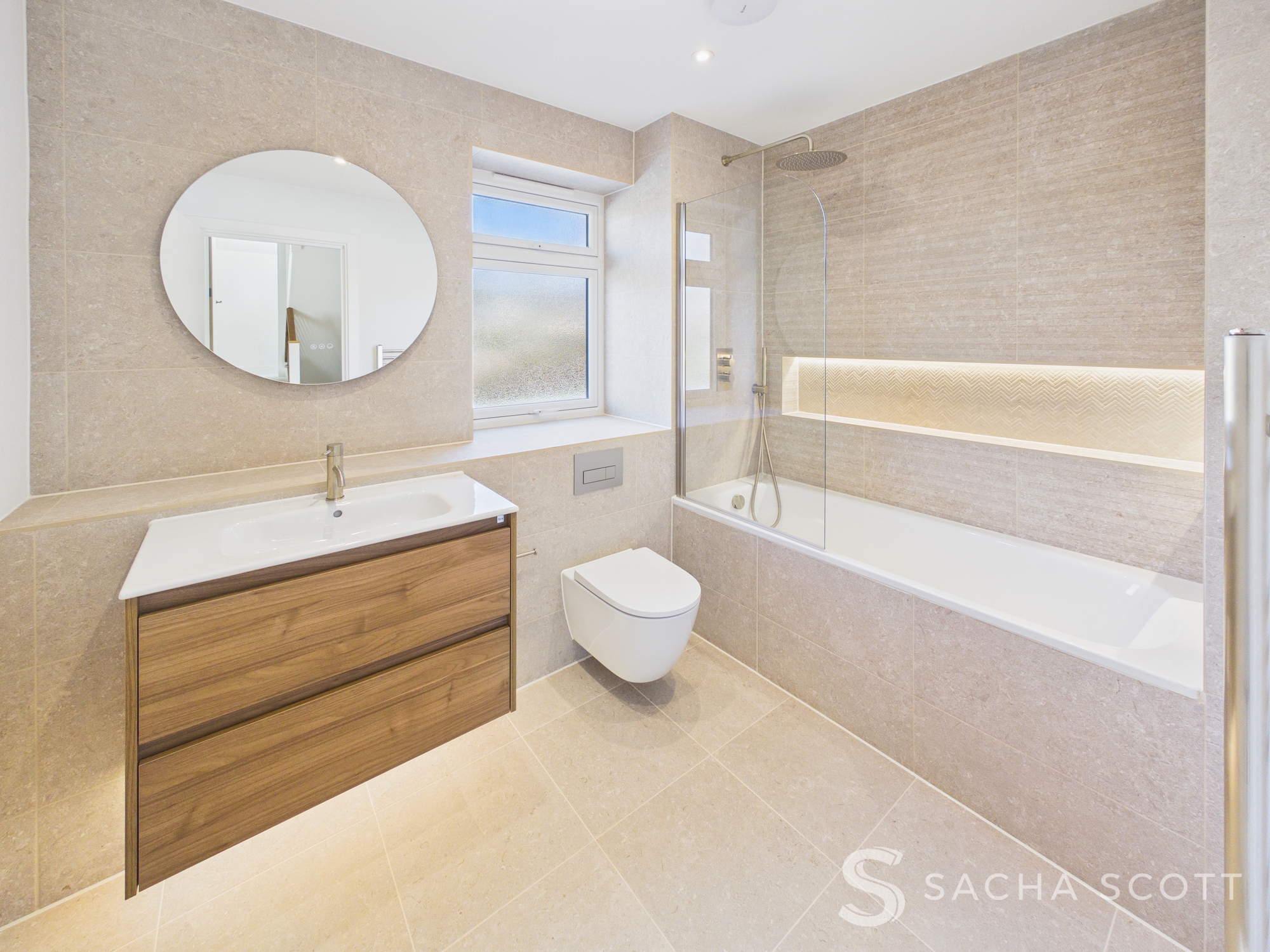 Porcelanosa wall and floor tiling to main bathroom and en-suite
