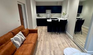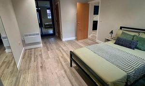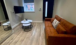 This fully refurbished one-bedroom apartment on West Street offers modern, stylish living in one of Sheffield’s most desirable city centre locations. Thoughtfully designed and furnished to a high standard, it features a bright living area with a brand-new tan sofa, bistro dining set, and a wall-mounted Smart TV. The separate bedroom offers a comfortable double bed, ample storage, and a dedicated study space, while the sleek kitchen includes integrated appliances and the contemporary shower room is finished with quality fittings and a heated towel rail.