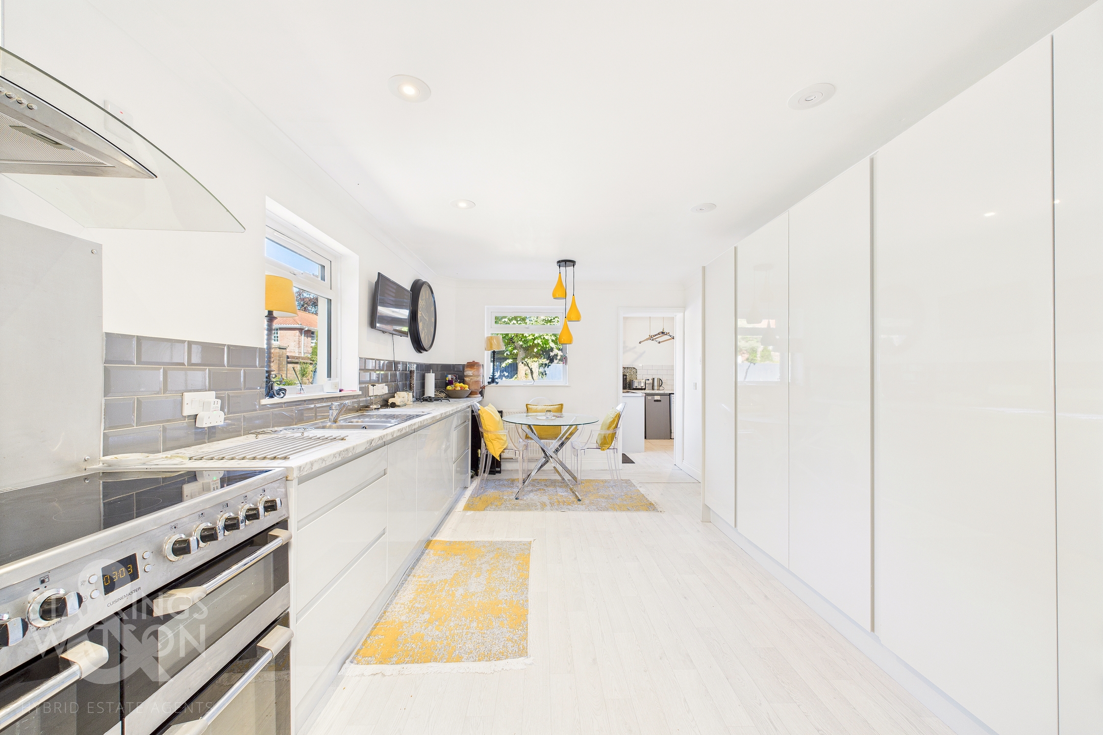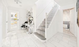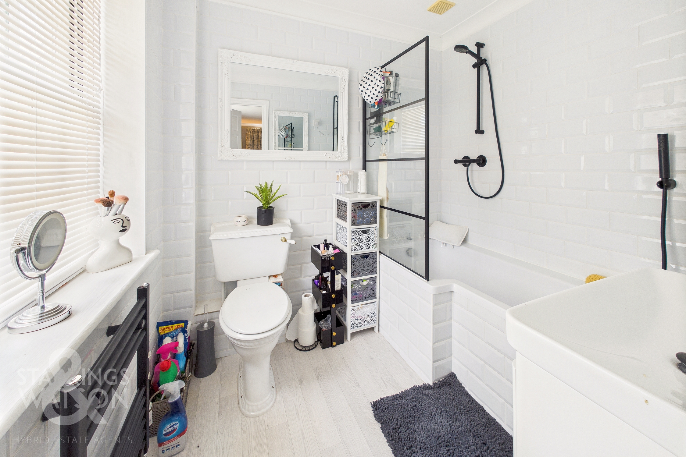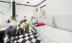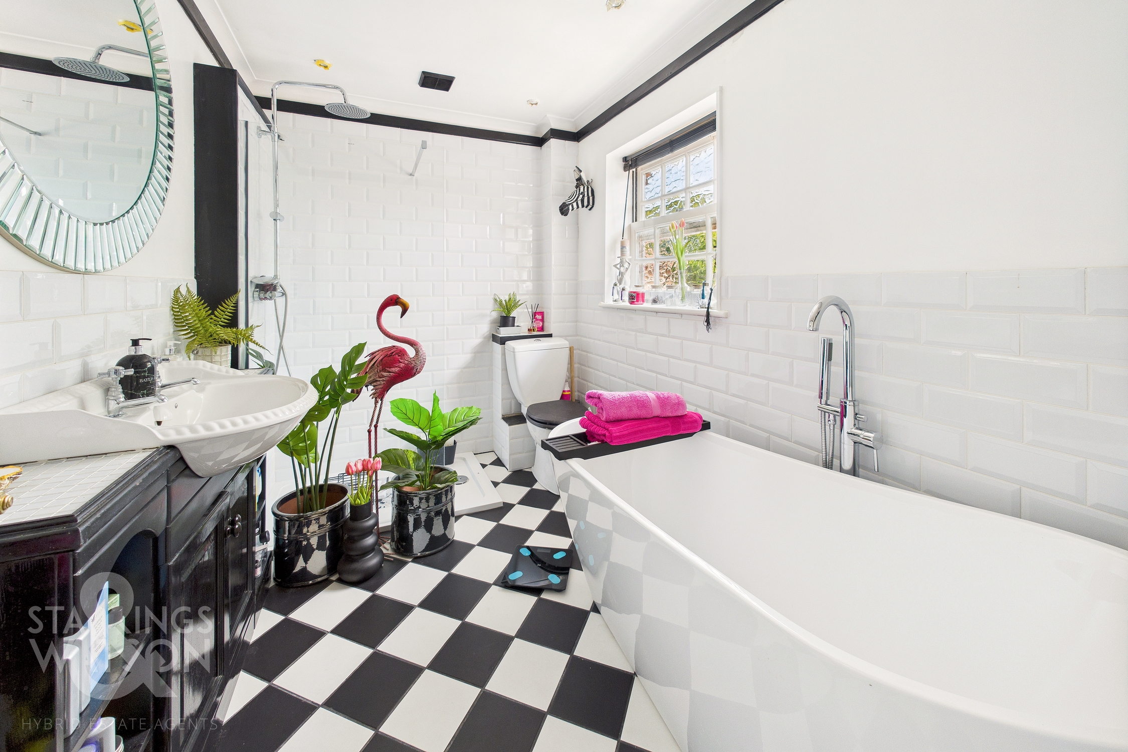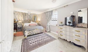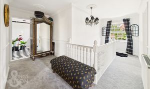 Heading up to the first floor galleried landing you will find four bedrooms, three with built in wardrobes, as well as two bathrooms. The landing also offers two large storage cupboards as well as loft hatch access. To the front of the house you will find three bedrooms all flooded with natural light. The large and impressive main bedroom has a dual aspect and offers built in wardrobes as well as a door linking the smallest bedroom meaning this could easily be used as a dressing room if required. There is also a re-fitted en-suite bathroom, fully tiled benefitting from a w/c, hand wash basin and shaped bath with shower over. Heading down the landing there is a family bathroom which also been recently re-fitted as well as the guest double bedroom. The bathroom is again fully tiled with a freestanding slipper bath, w/c, hand wash basin and separate double walk in shower with rainfall head.