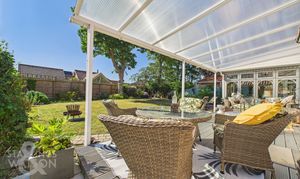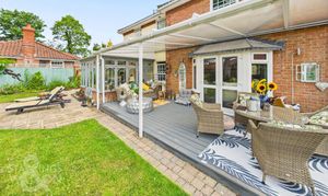 THE GREAT OUTDOORS The total plot offers almost 0.2 of an acre (stms) with gardens to all sides of the house. Leading from the door in the utility room to the rear there is a large paved terrace offering a good degree of privacy whilst also providing the perfect place for outside dining. There is an array of mature shrubbery as well as a brick pond and raised terrace area also. To the side is the shingled and hard standing parking area accessed by the double gates from the driveway. Heading in the other direction to the other side of the house you will find the main section of garden. The garden is predominantly laid to lawn and enclosed with timber fencing and brick wall. The garden offers a good degree of privacy as well as mature trees and shrubs and planting areas. The paved patio wraps around from the rear and leads to the raised decked area with a wonderful covered veranda providing much needed shelter all year round as well as the ideal spot for entertaining.