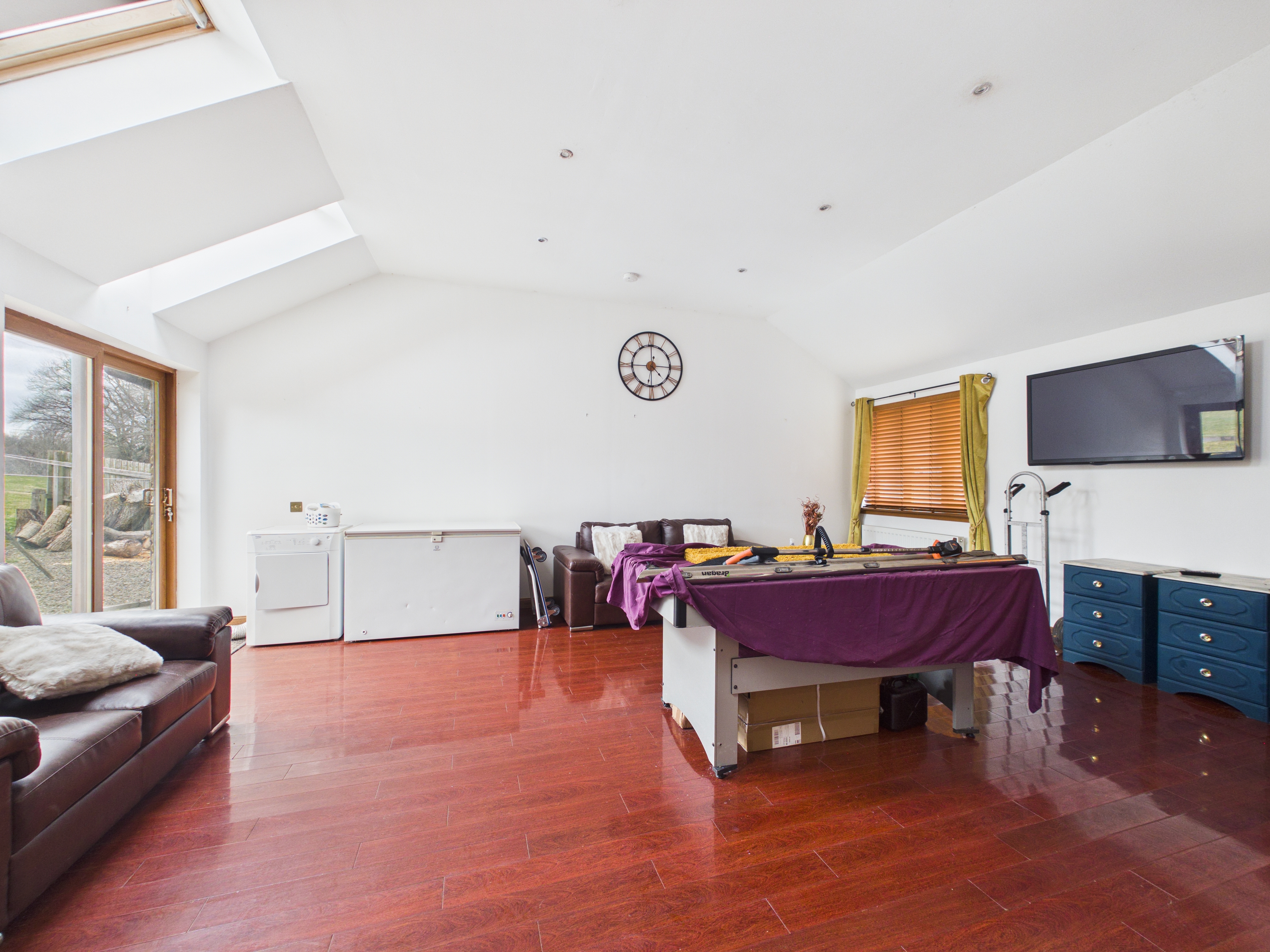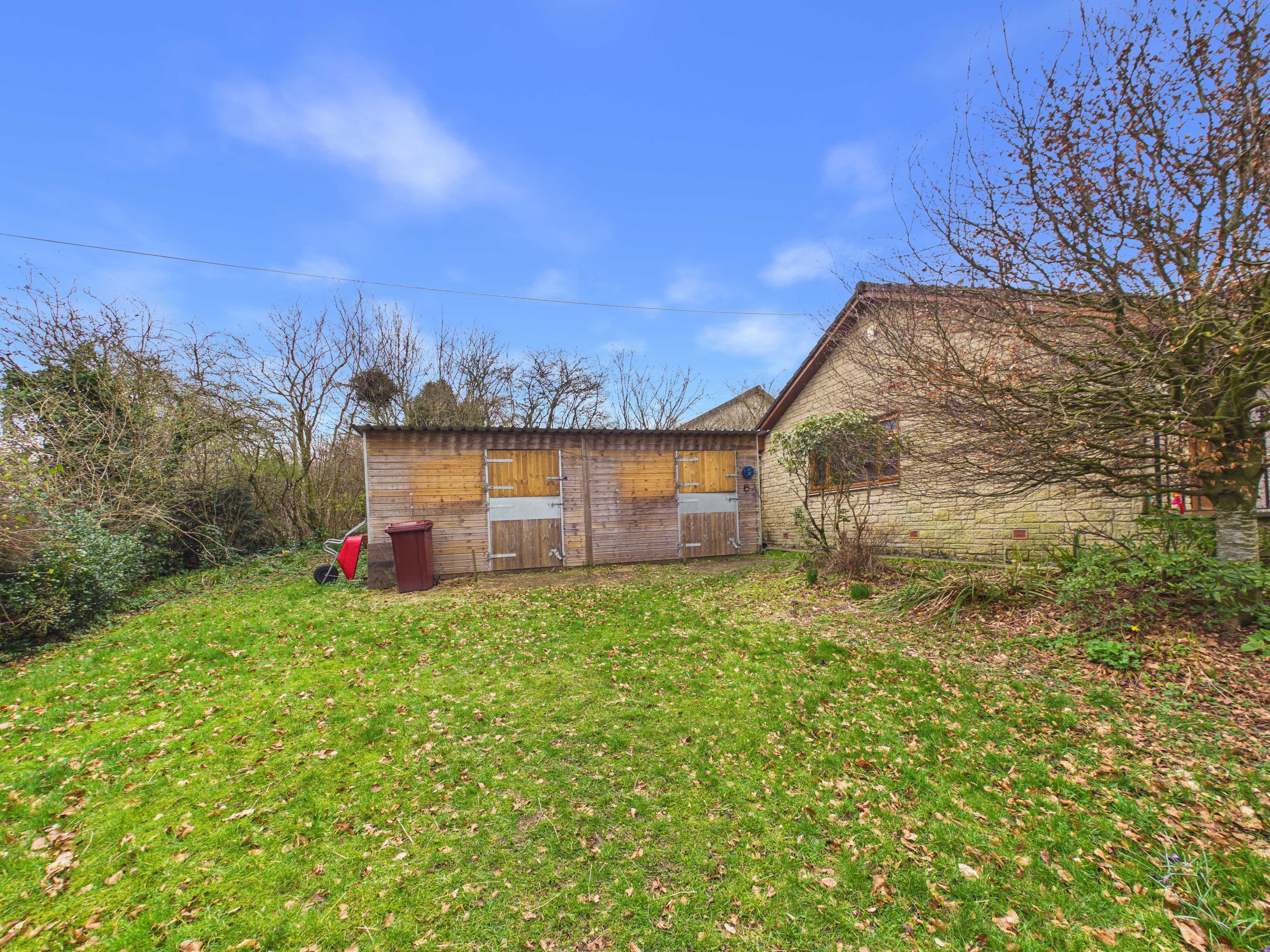 Externally there is a large driveway to the front which can house multiple vehicles. On the front lawn there are two timber stables as the current owner has rented grazing land for her horses from neighbouring landowners. To the rear there is an area of timber decking from which to sit and admire the open views to the rear.