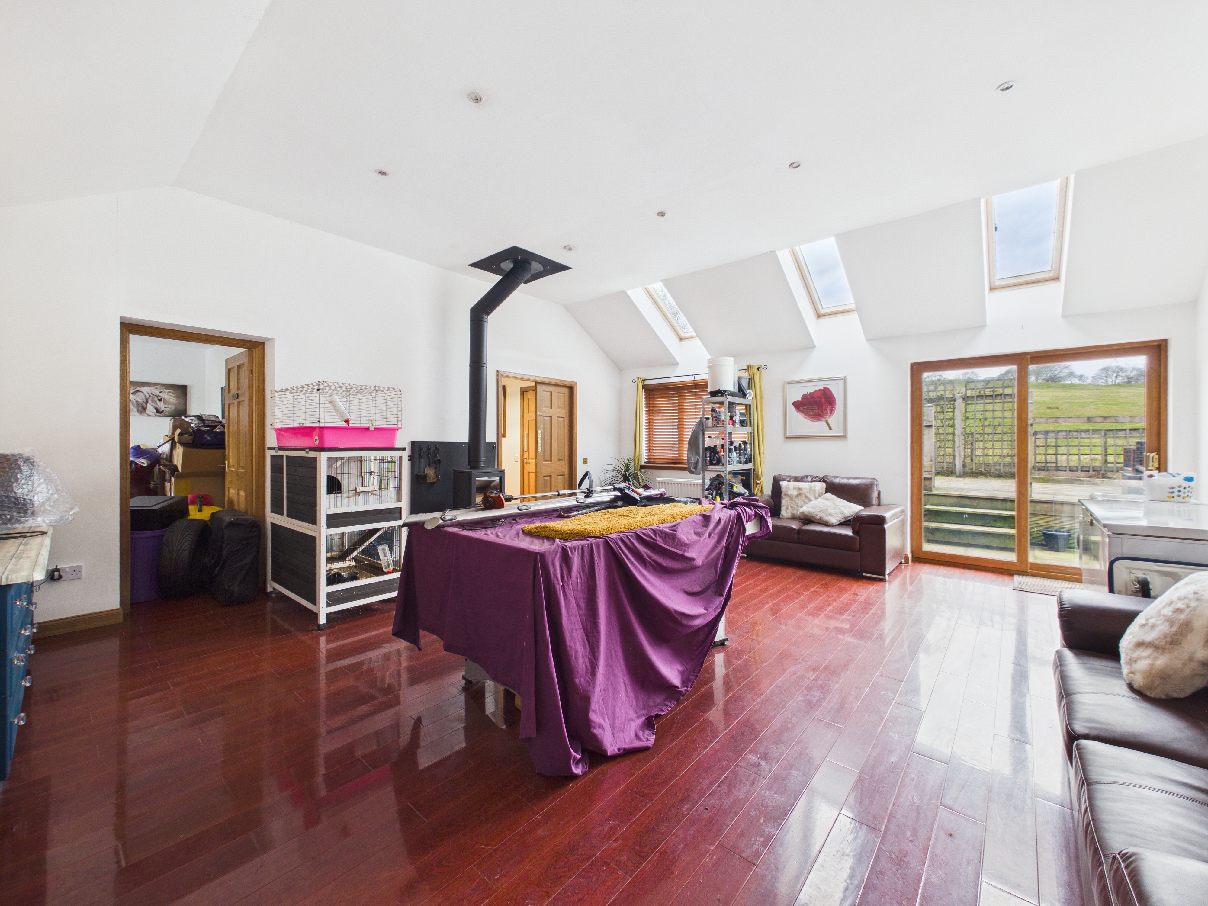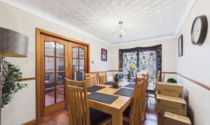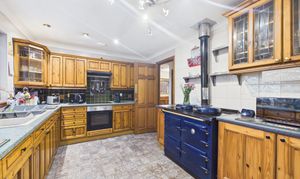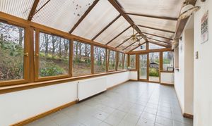The property is entered from the front through a large vestibule into a welcoming entrance hallway. The lounge is generous in size with a log burning stove providing an attractive focal point to the room. French doors lead through to the dining room which has patio doors which open to the side of the garden. The kitchen has a good selection of country style base and wall mounted storage with an electric oven and hob. A large Aga style range has been fitted for many years, but the vendor has informed us that it has not worked for some time. Off the kitchen is a useful utility room with cupboard which houses laundry facilities. This area leads through to the large conservatory at the rear which wraps around the house. The hallway then leads through to the far side of the home where there is a family bathroom and four double bedrooms, two of which have en-suite shower rooms. The home is completed by a second spacious public room which has a multitude of uses this room also has a log burning stove and patio doors leading to the rear garden. Off this room is the fifth bedroom which the current owners use as a storeroom.