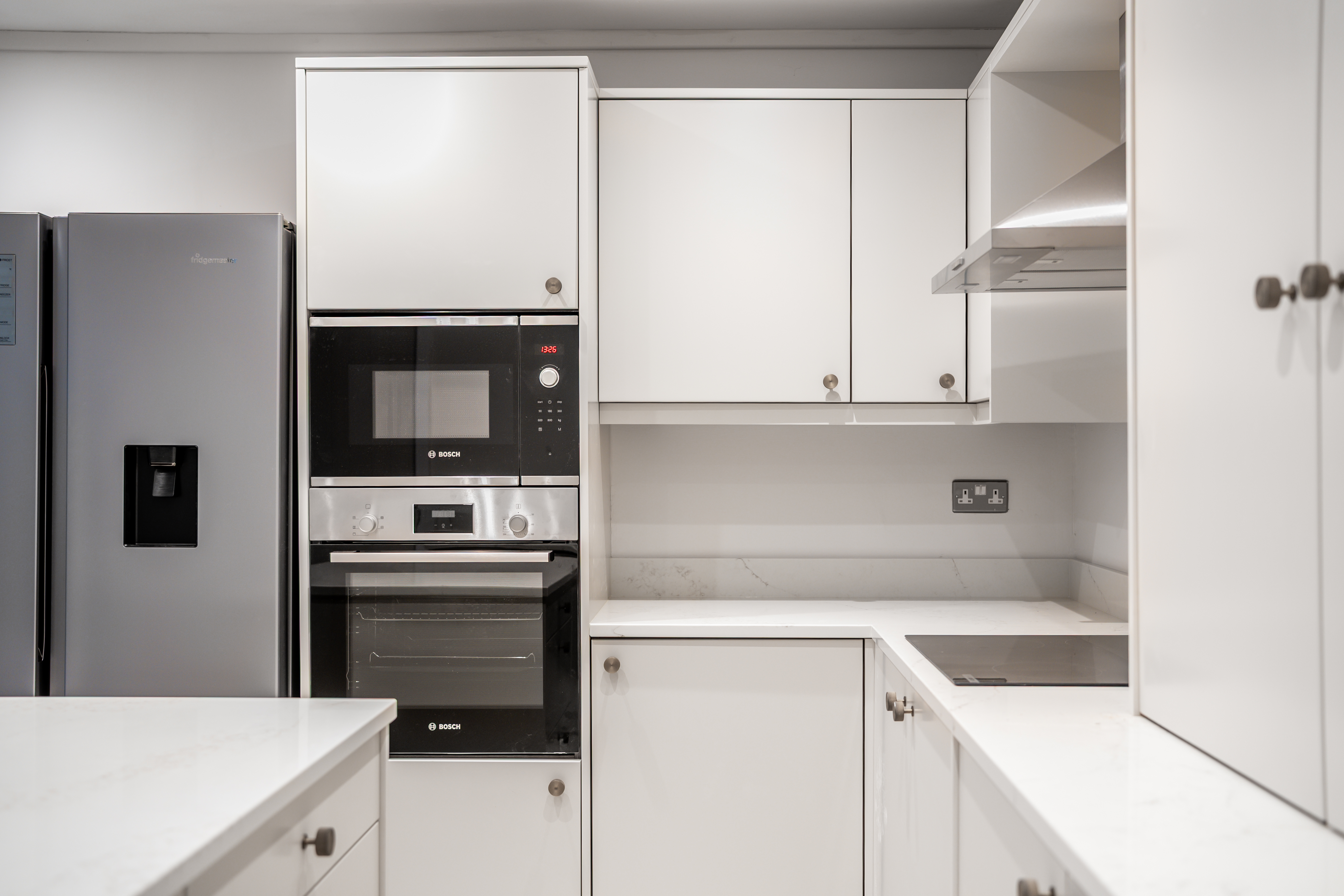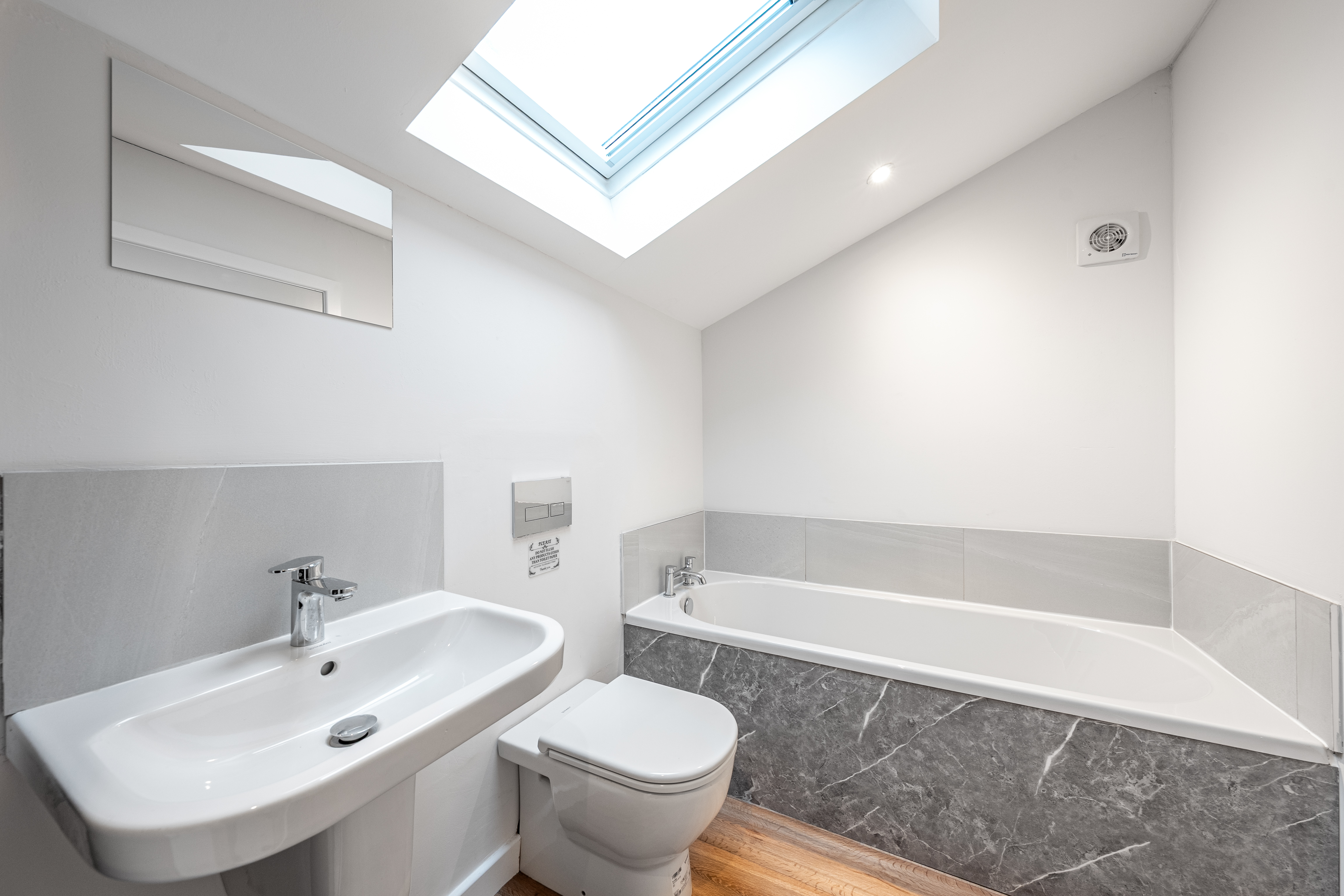 To the first floor are two generously sized double bedrooms, both served by well-appointed bathrooms, offering comfort and flexibility for occupants or guests. Externally, the property benefits from a private driveway complete with a vehicle turntable, providing practical and secure off-road parking.