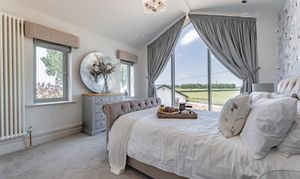 Wake up to a comforting countryside soundtrack of birdsong and for any horse lovers the possibility of the contented whinnying of horses, as they champ the grass in the paddocks, all framed within your eyeline at Pear Tree Farm, where a wealth of windows provides panoramic views over the land, providing ever-present views of nature.