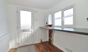 The front door opens into the hall/utility which has a window to the side, a wall mounted boiler, worktops along one wall and space for appliances. There is an opening to the kitchen and a door to the study/dressing room which has windows to the side and rear.