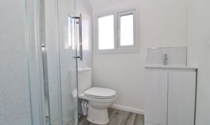 The bedroom is located to the rear with windows to both sides, whilst the modern shower room comprises a vanity wash hand basin, WC, corner shower cubicle and a window to the side.