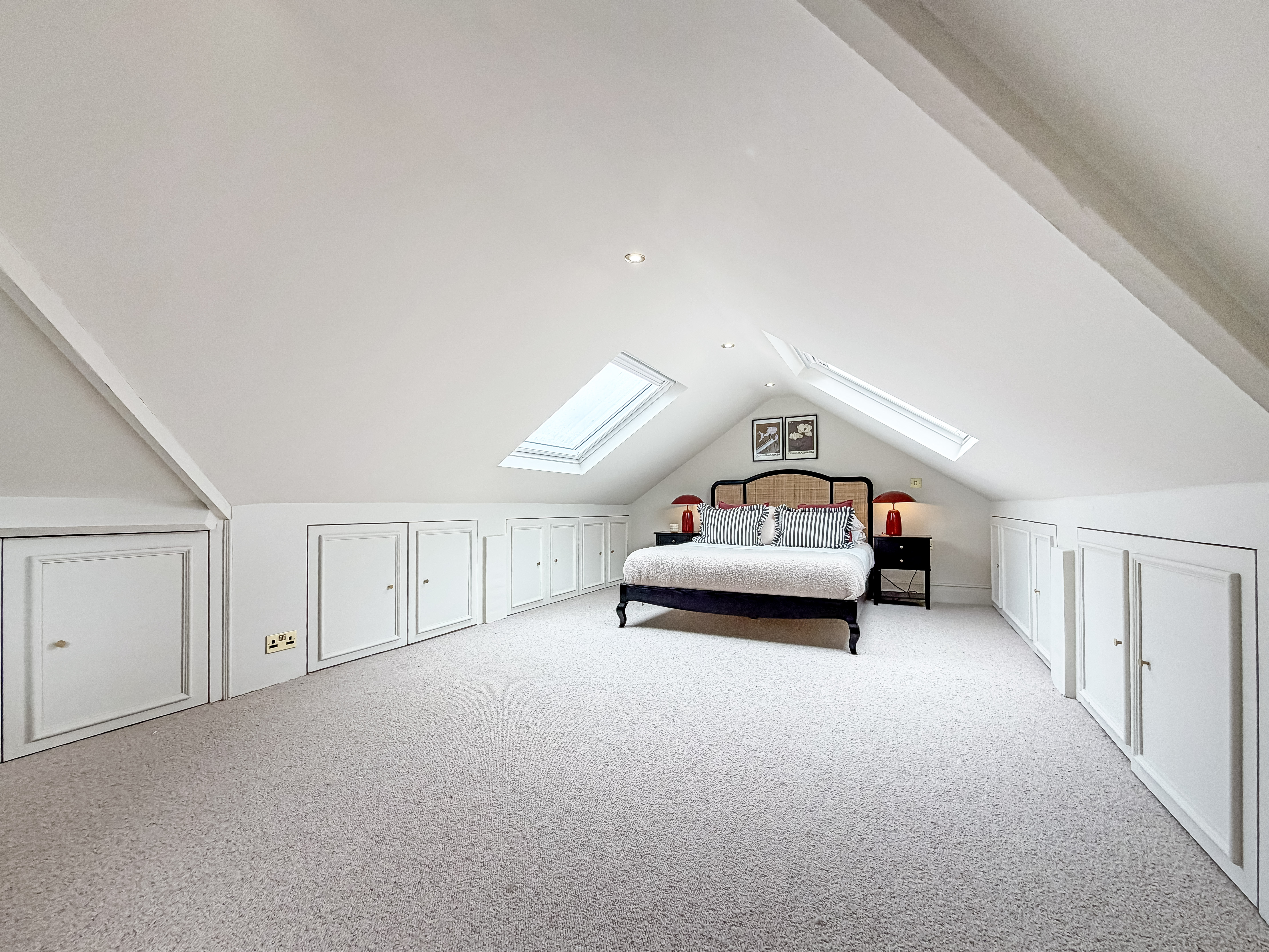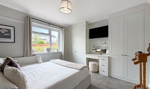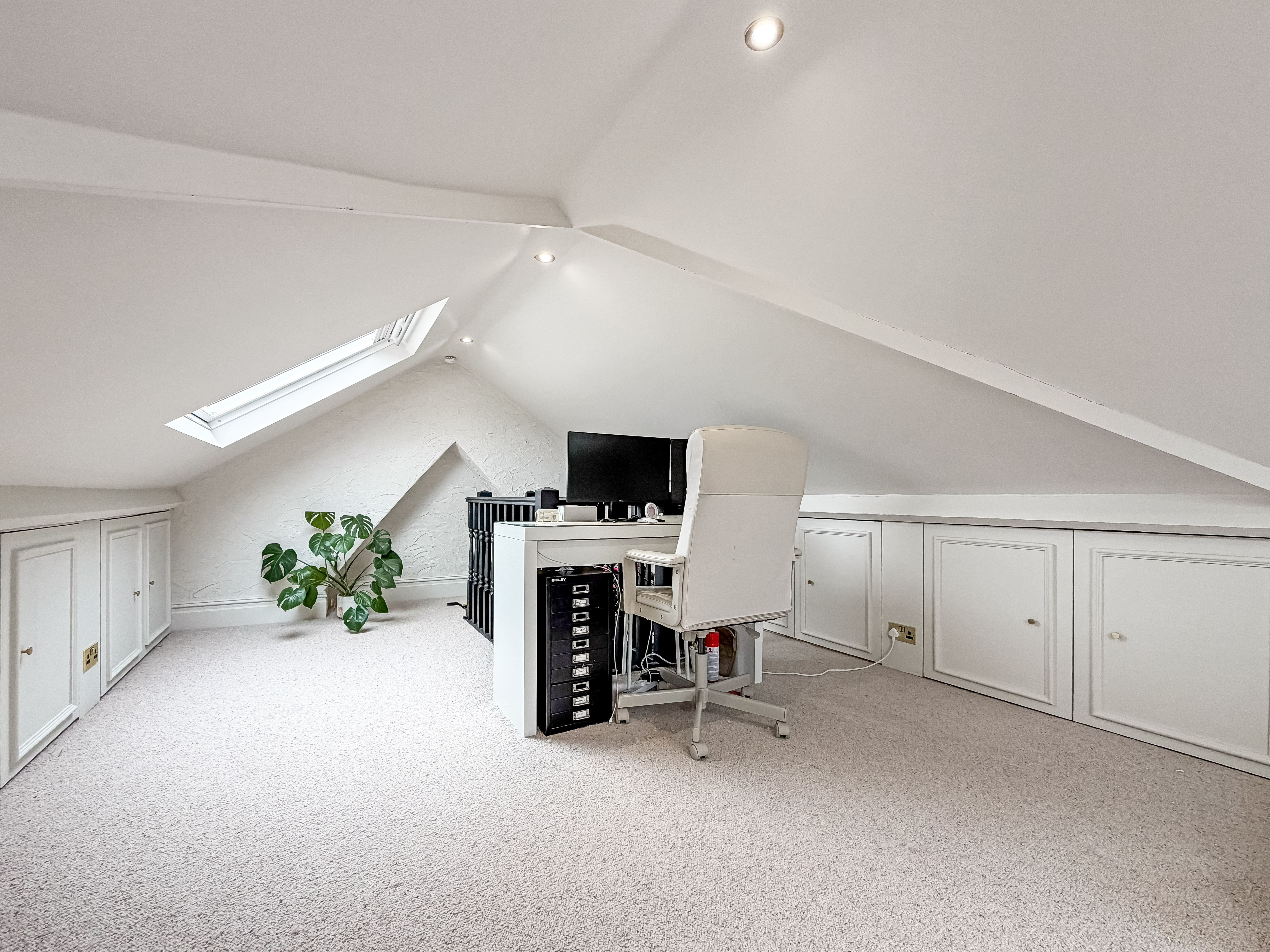 Upstairs, four well-proportioned bedrooms offer plenty of fitted storage, while a large loft room presents further potential for a home office, studio or guest accommodation. The loft room also has air conditioning.