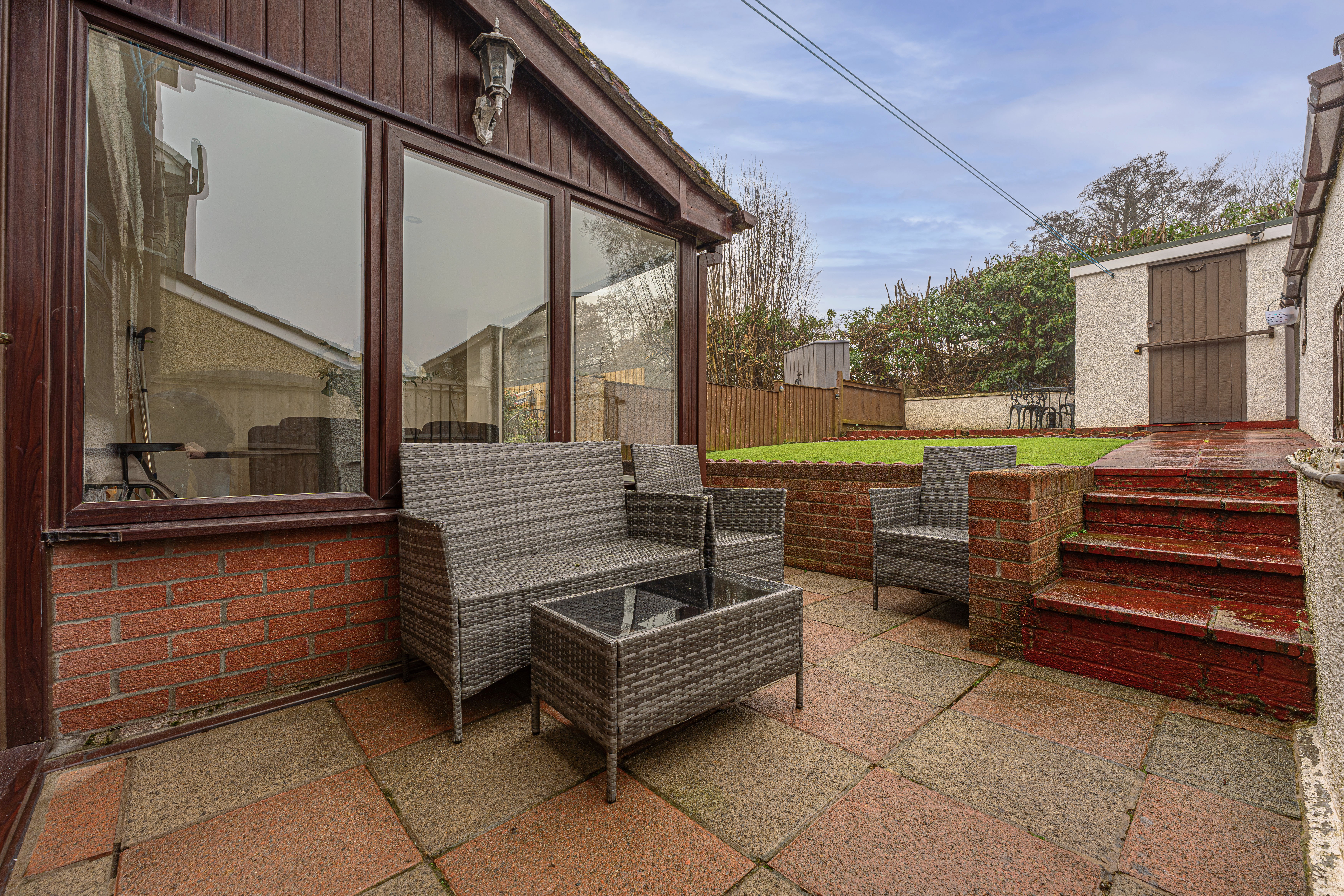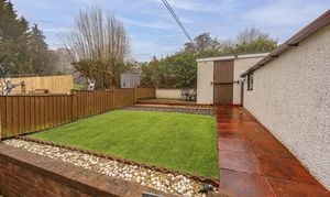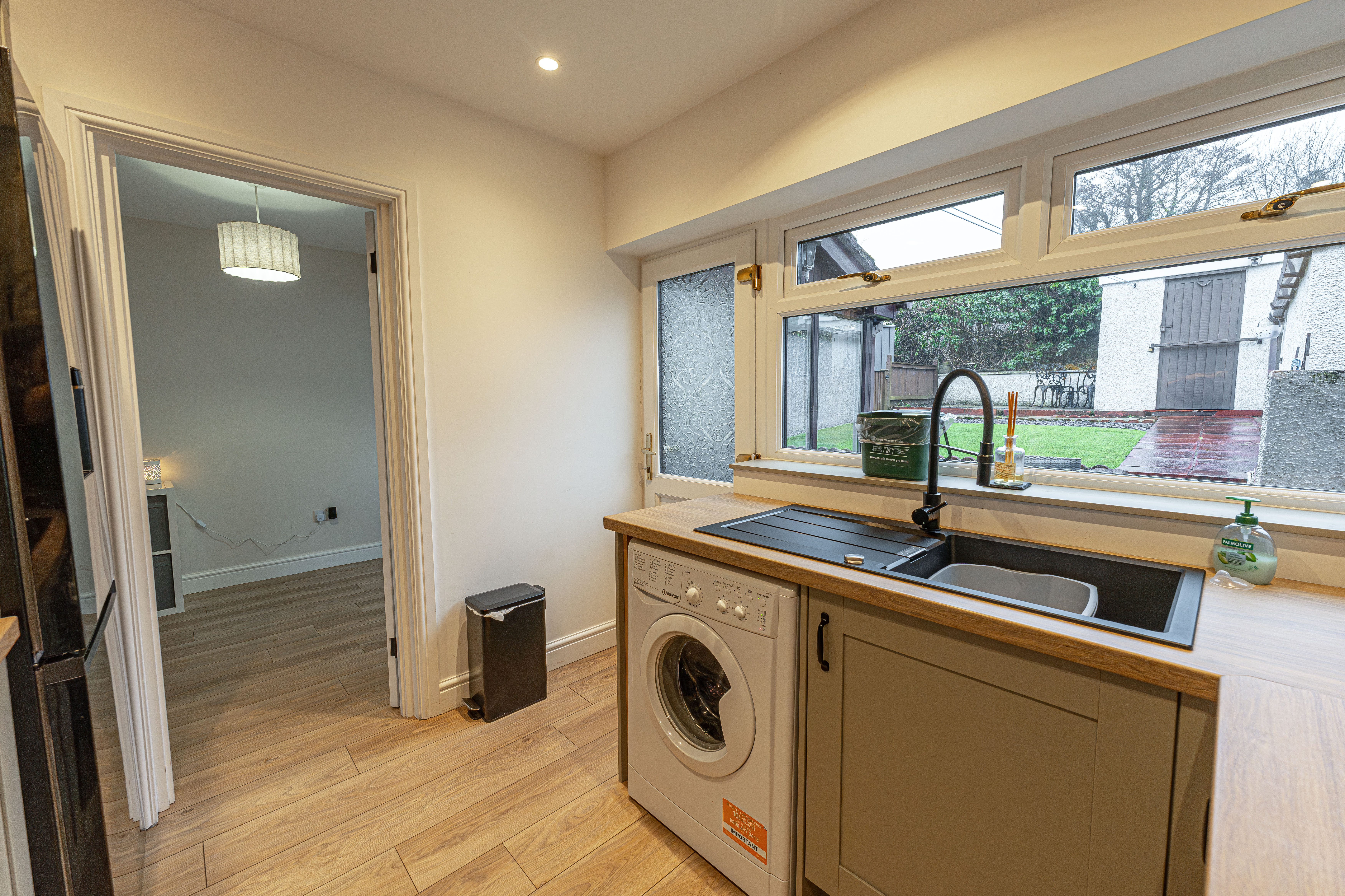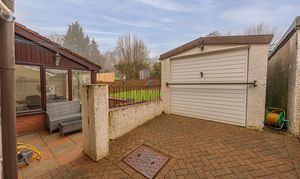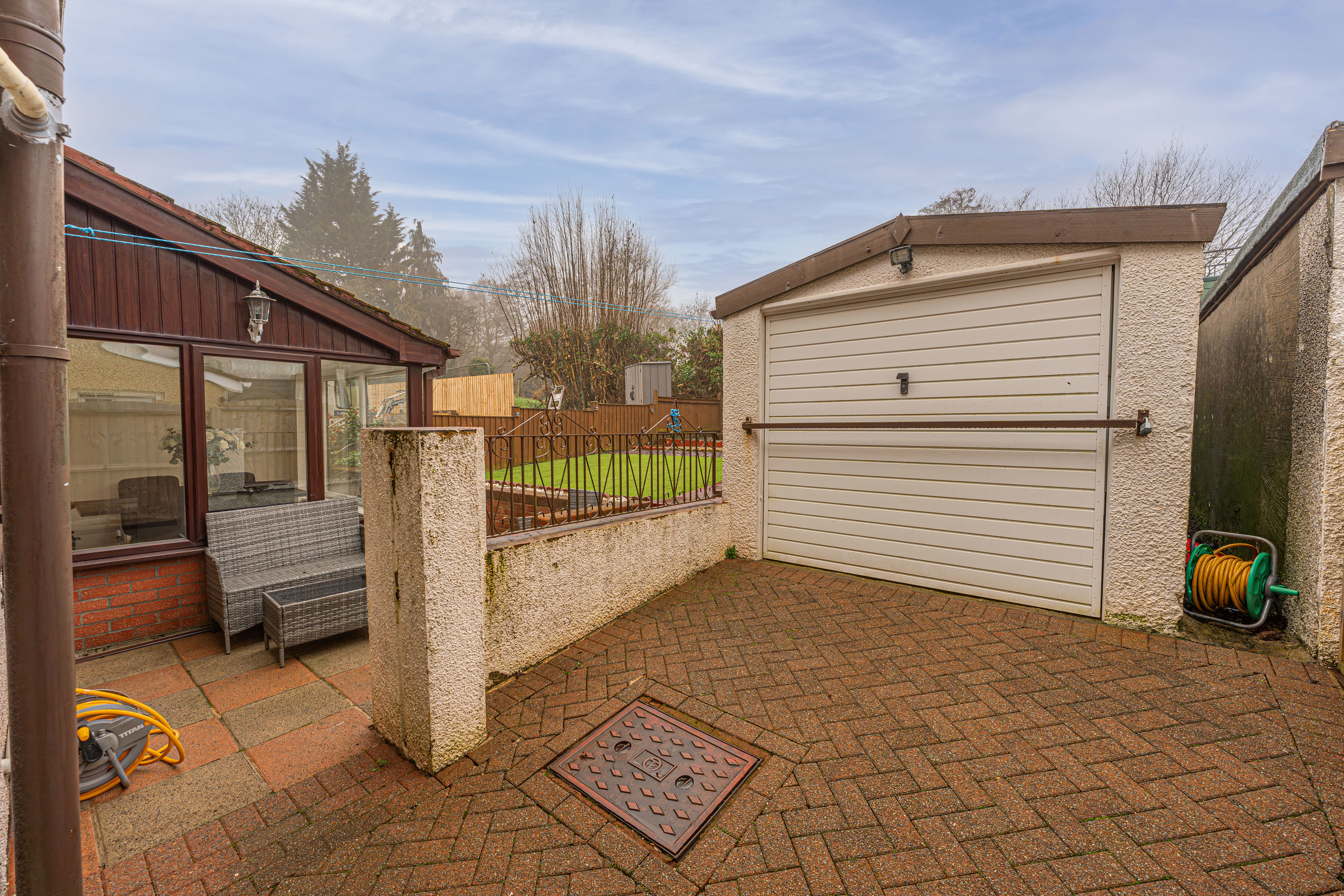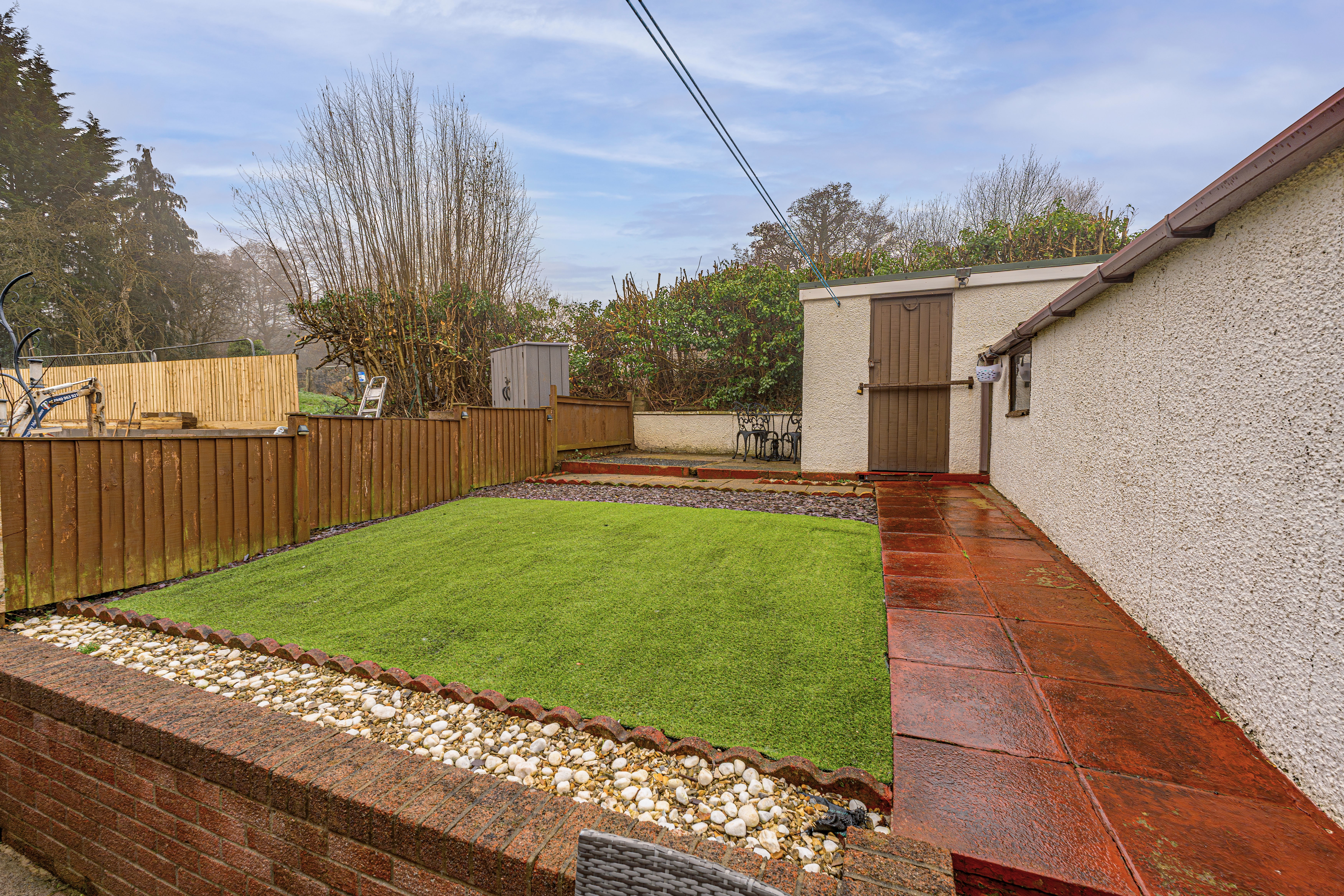 Additional highlights include a lovely rear garden, with multiple seated patio areas complimented by pebble stone aspects and artificial lawn, offering an attractive space for relaxing and entertaining, all with a low maintenance design. From the garden we can access a helpful storage shed and the detached garage, for parking and storage. Another garage space can be found as part of the new extension, which opens at both sides to extend the driveway into the rear garden, providing ample off-road parking space for residents to use.