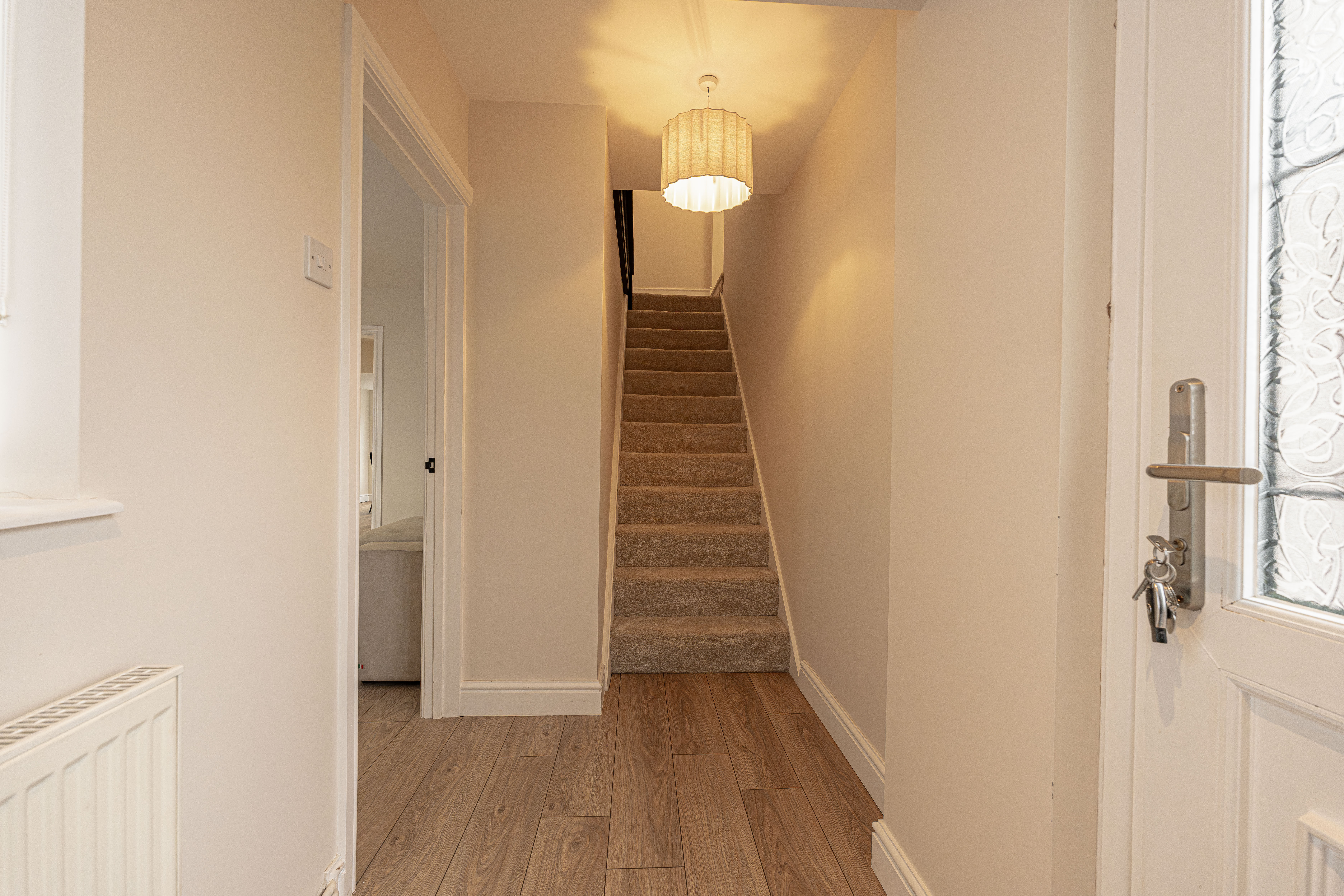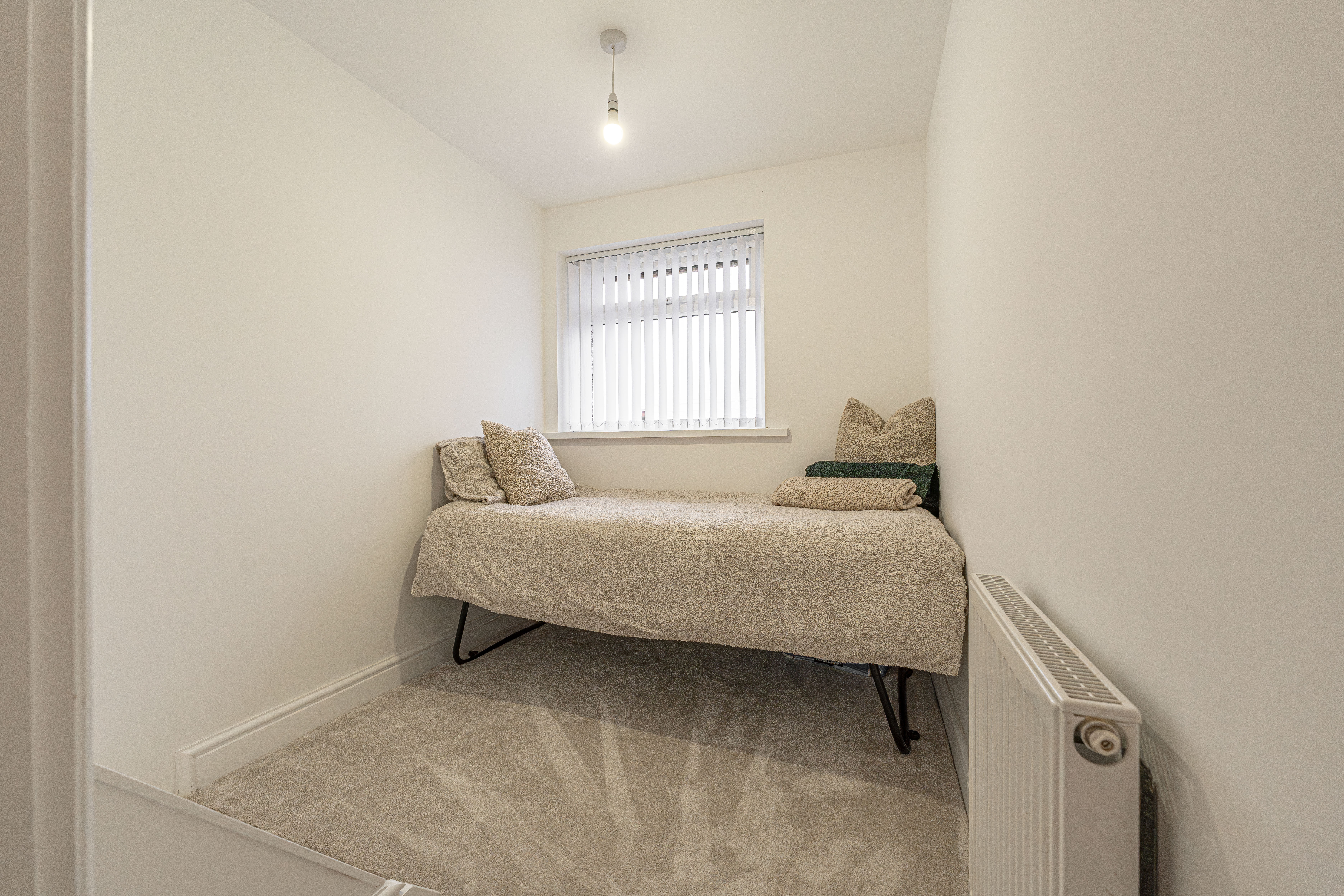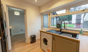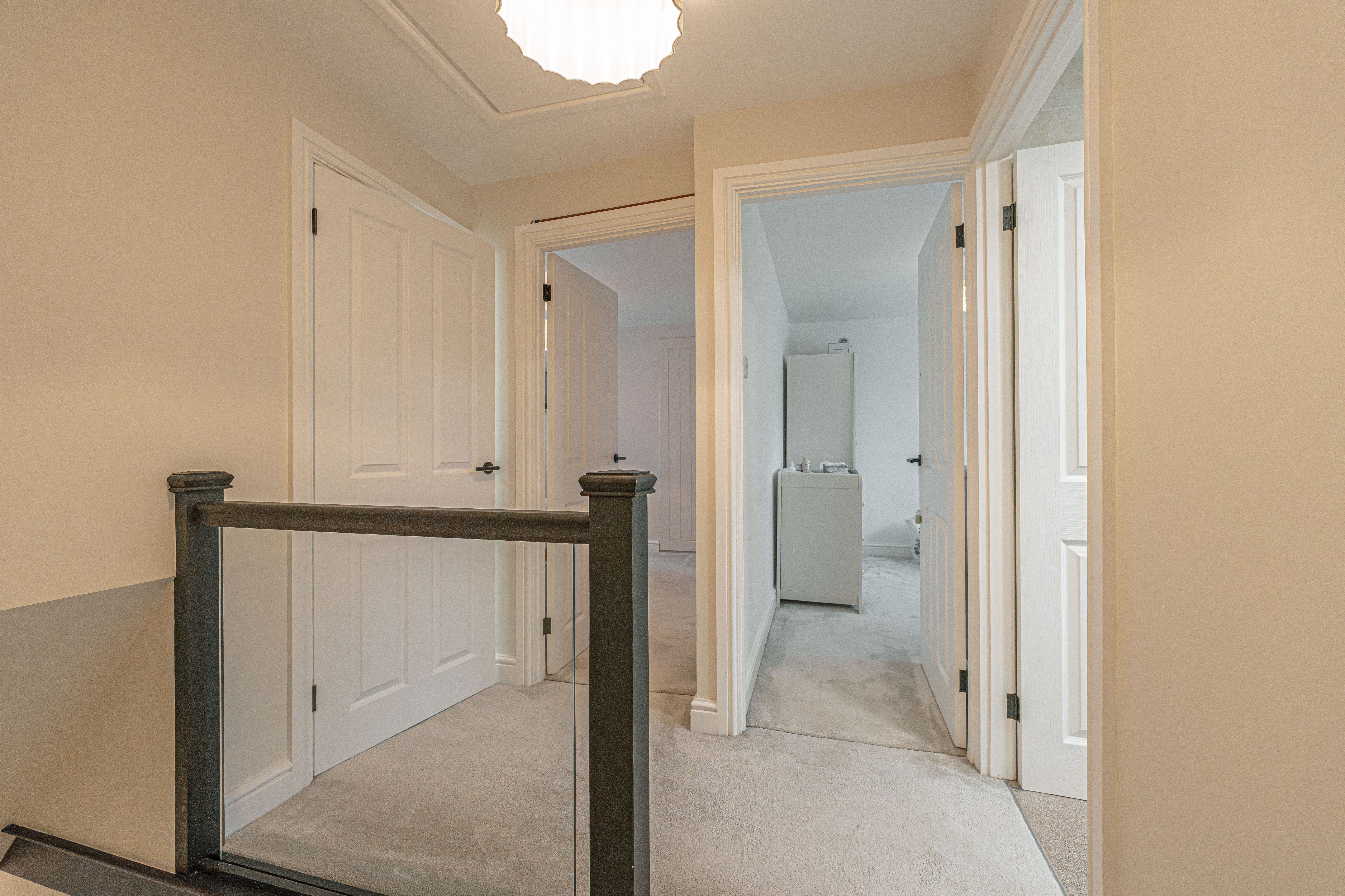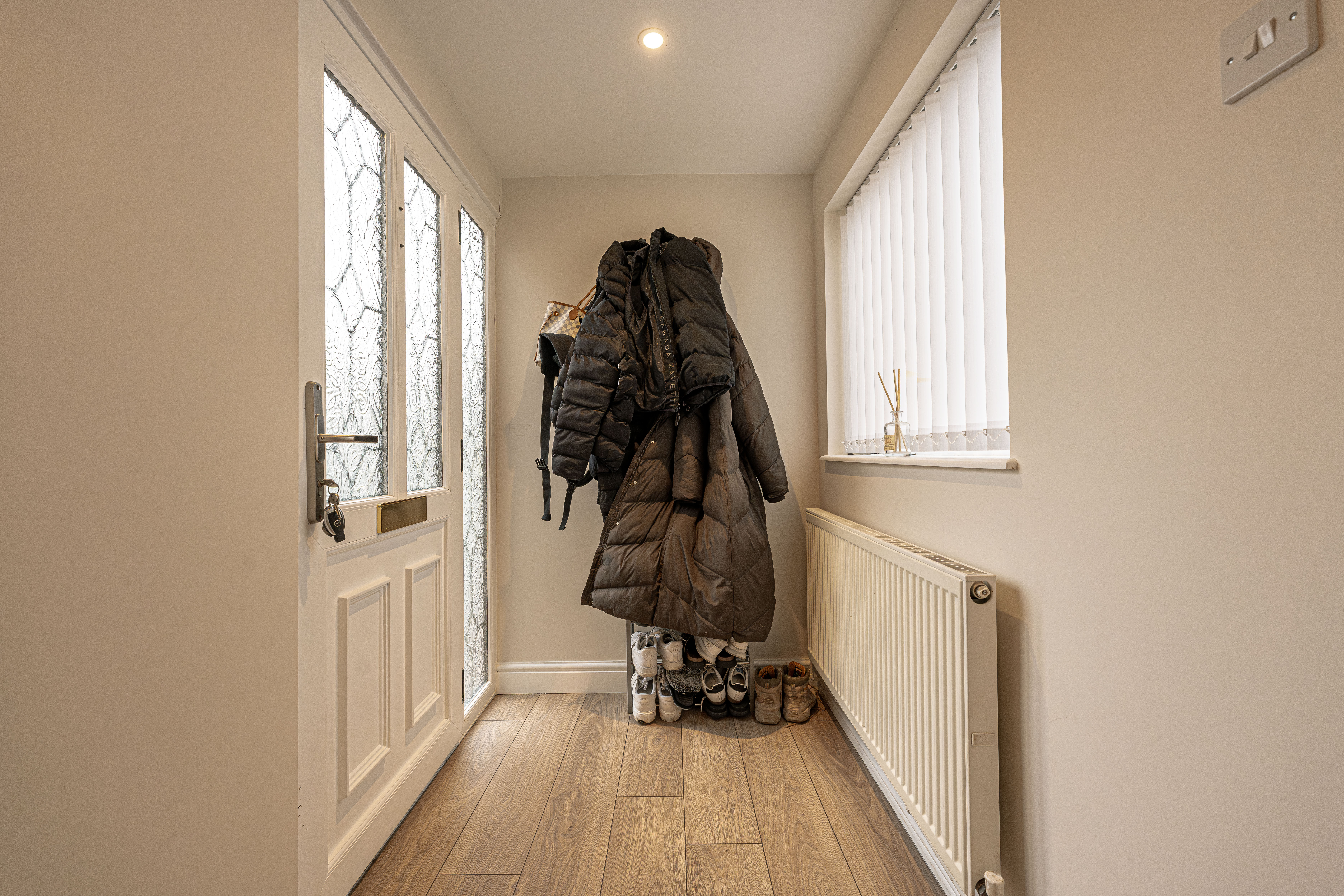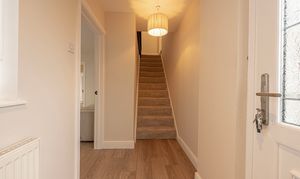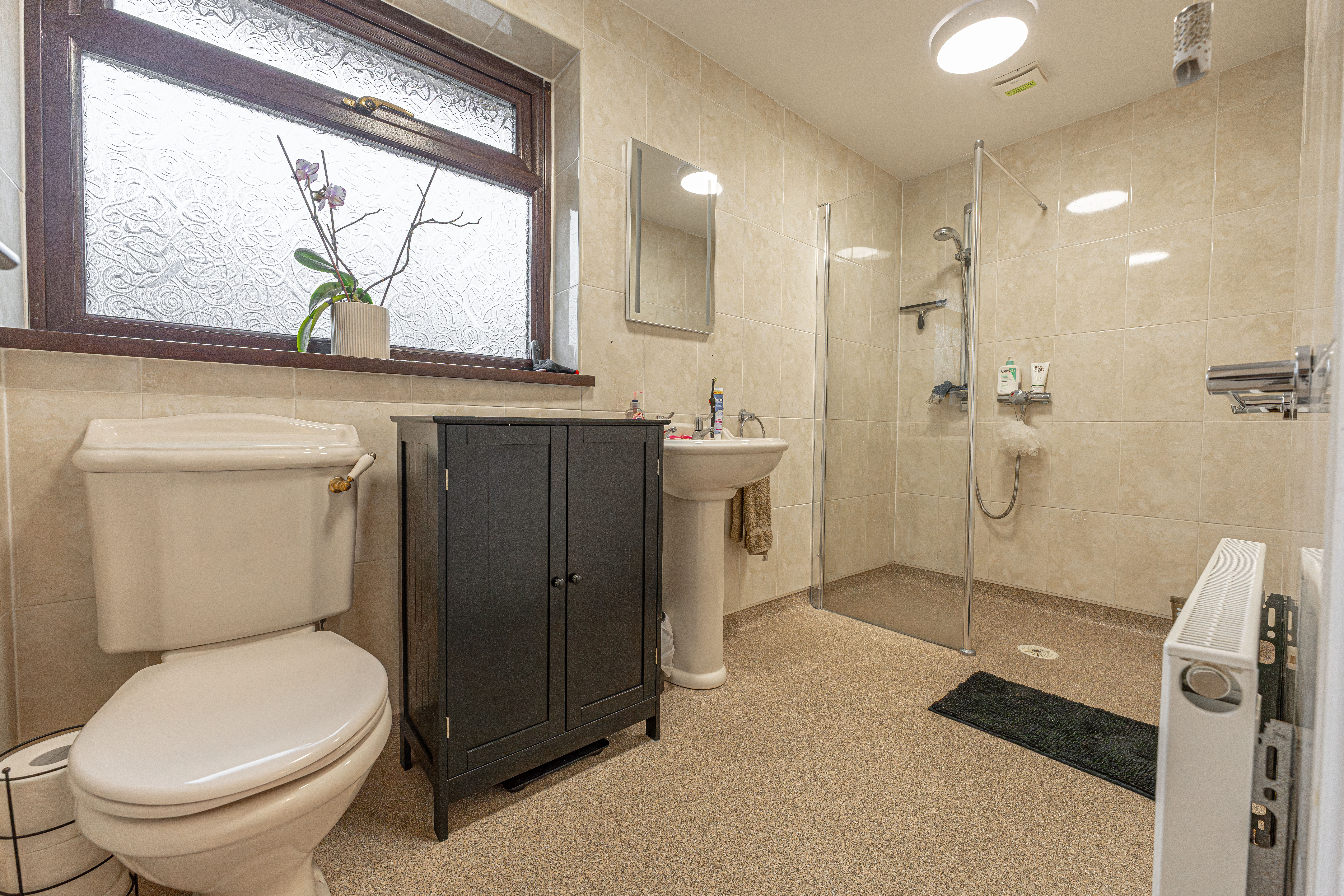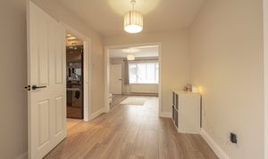 Ascending to the first floor we have four bedrooms, three of which are generously sized double rooms, with the fourth being a cosy single room - ideal for a home office, dressing room or nursery. One of the bedrooms features a helpful fitted wardrobe, while another offers an airing cupboard for added convenience. The sleek family bathroom is also accessible from the hallway, with a wet room style shower cubicle.