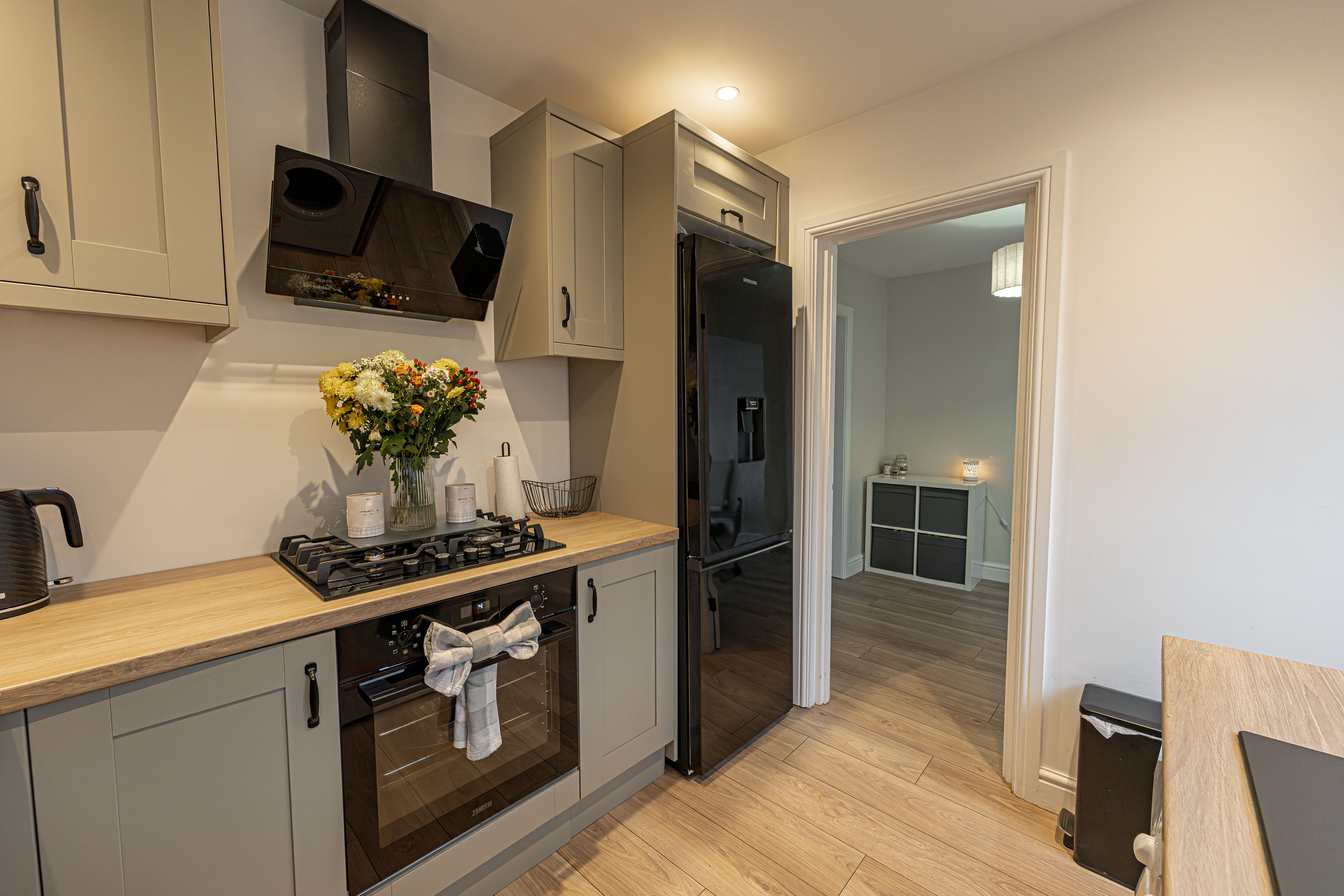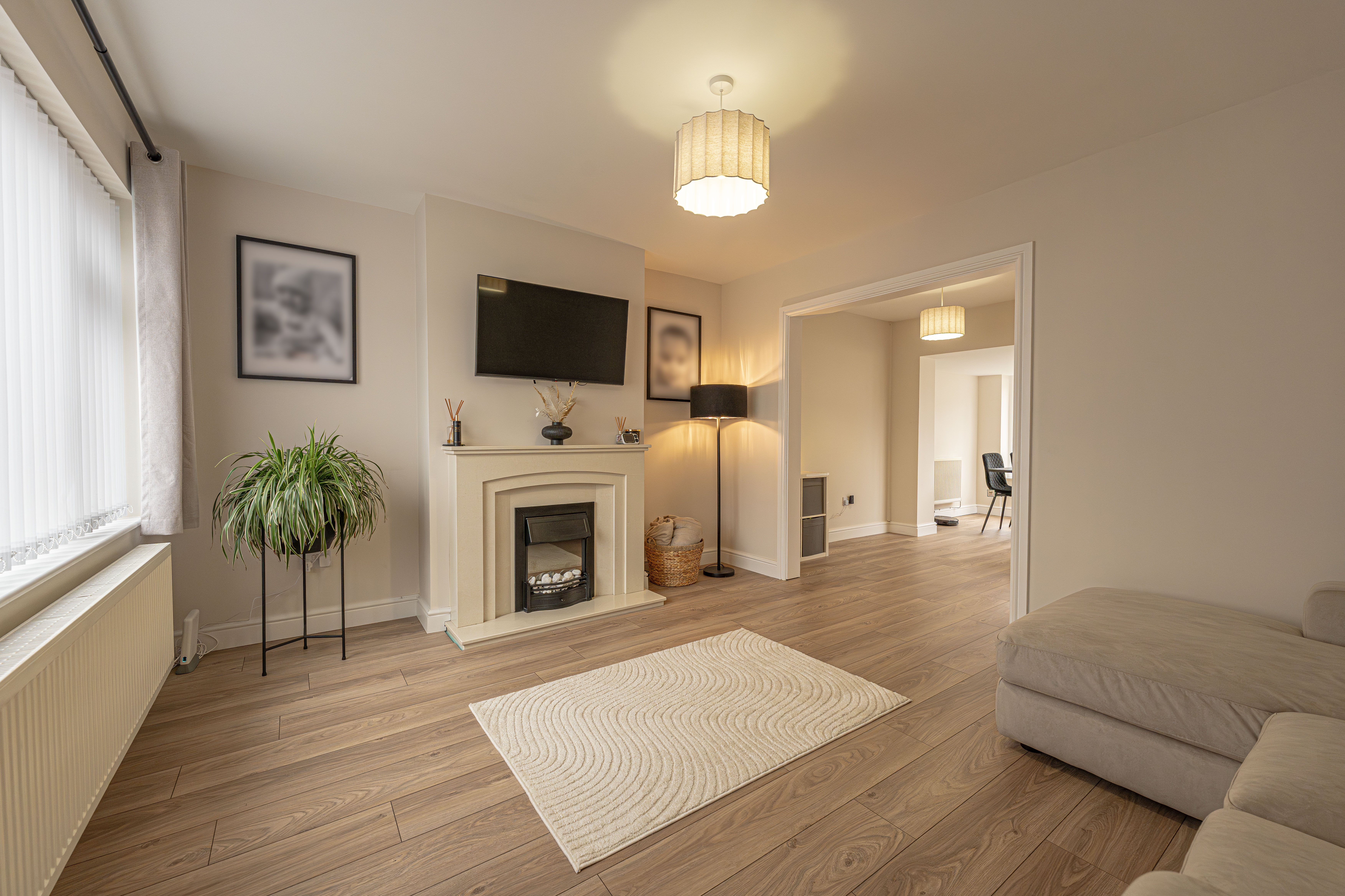 This incredible family home has been meticulously renovated within the last two years, showcasing a beautiful presentation and design throughout the property. At the heart of the home we have a spacious living room that is flooded by natural light, providing an inviting atmosphere for relaxing and entertaining guests. The living room also folds through to offer additional reception space at the rear of the house, with the family room and dining room connected by a fluid open plan design. The modern kitchen is another attraction, with stylish storage units offering ample storage and plenty of space for appliances to join the fitted hob and oven.