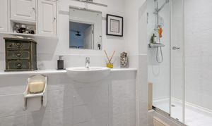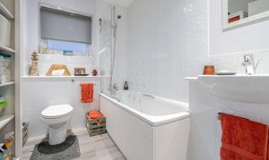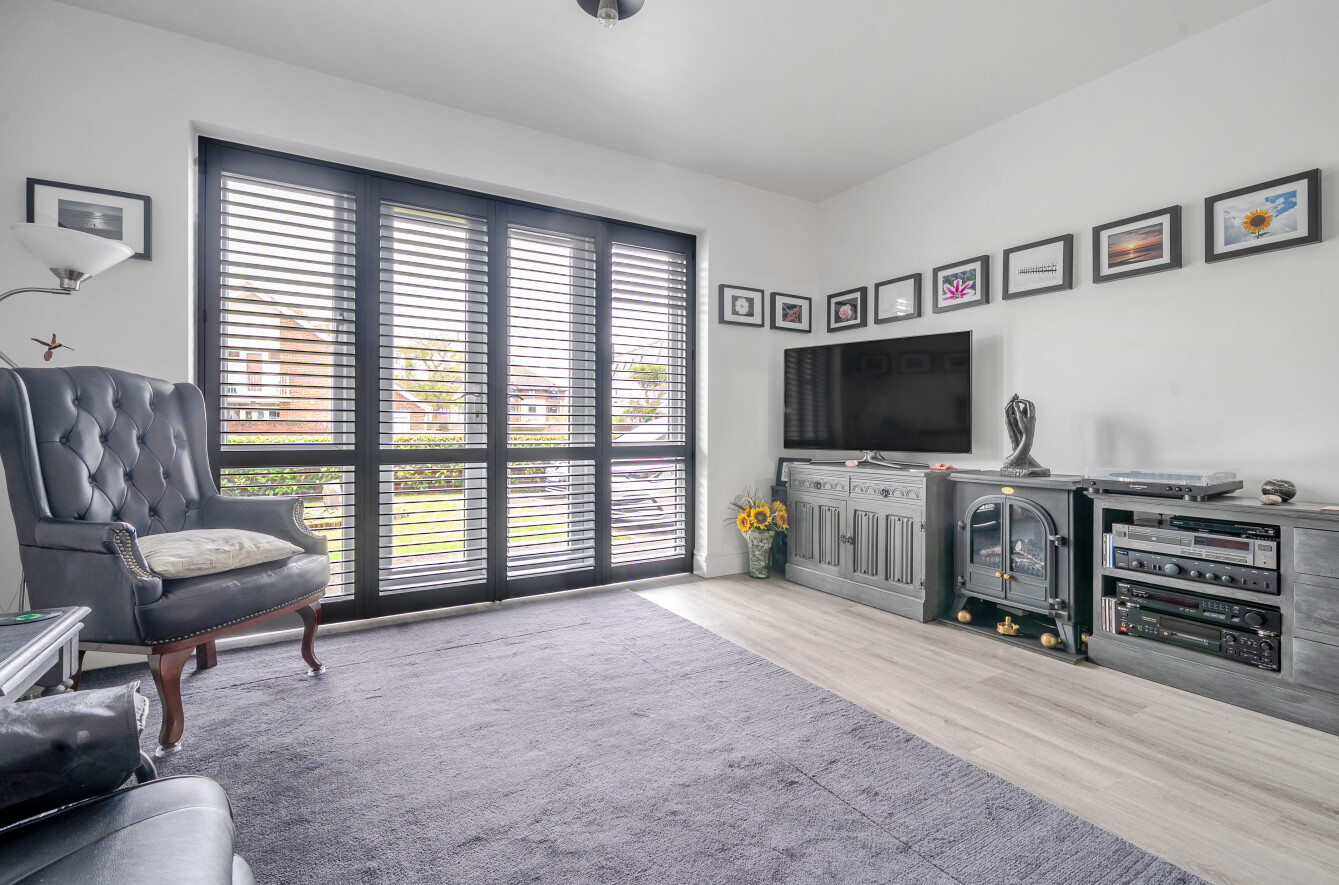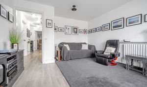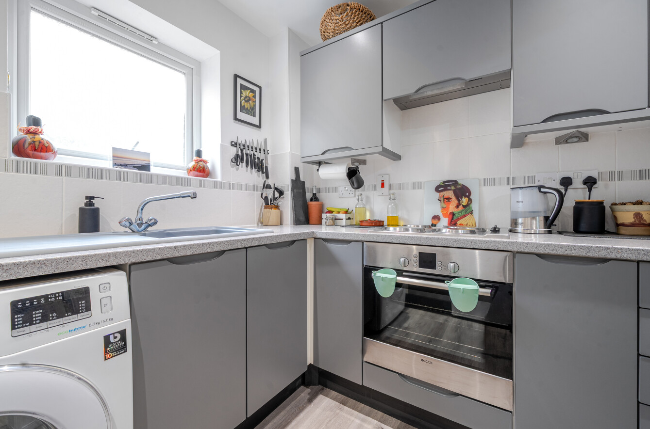 The front door opens to an ‘L’ shaped entrance hall with laminate flooring which leads to all rooms and a large walk-in cupboard. The reception room features French doors opening onto a patio area with communal gardens beyond, has a laminate floor and colonial style shutters. The kitchen features a comprehensive range of wall base units with ample worktops, a frosted casement window, tiled splashback and laminate floors. The first bedroom has a large window overlooking communal gardens, laminate floor, built-in double wardrobe and en-suite shower with corner shower WC and basin. The second bedroom also has a large casement window overlooking communal gardens, laminate flooring and a double built-in wardrobe. Finally, the immaculate family bathroom has a frosted casement window, bath, WC and basin with storage below. A new gas boiler was added in April 2025.