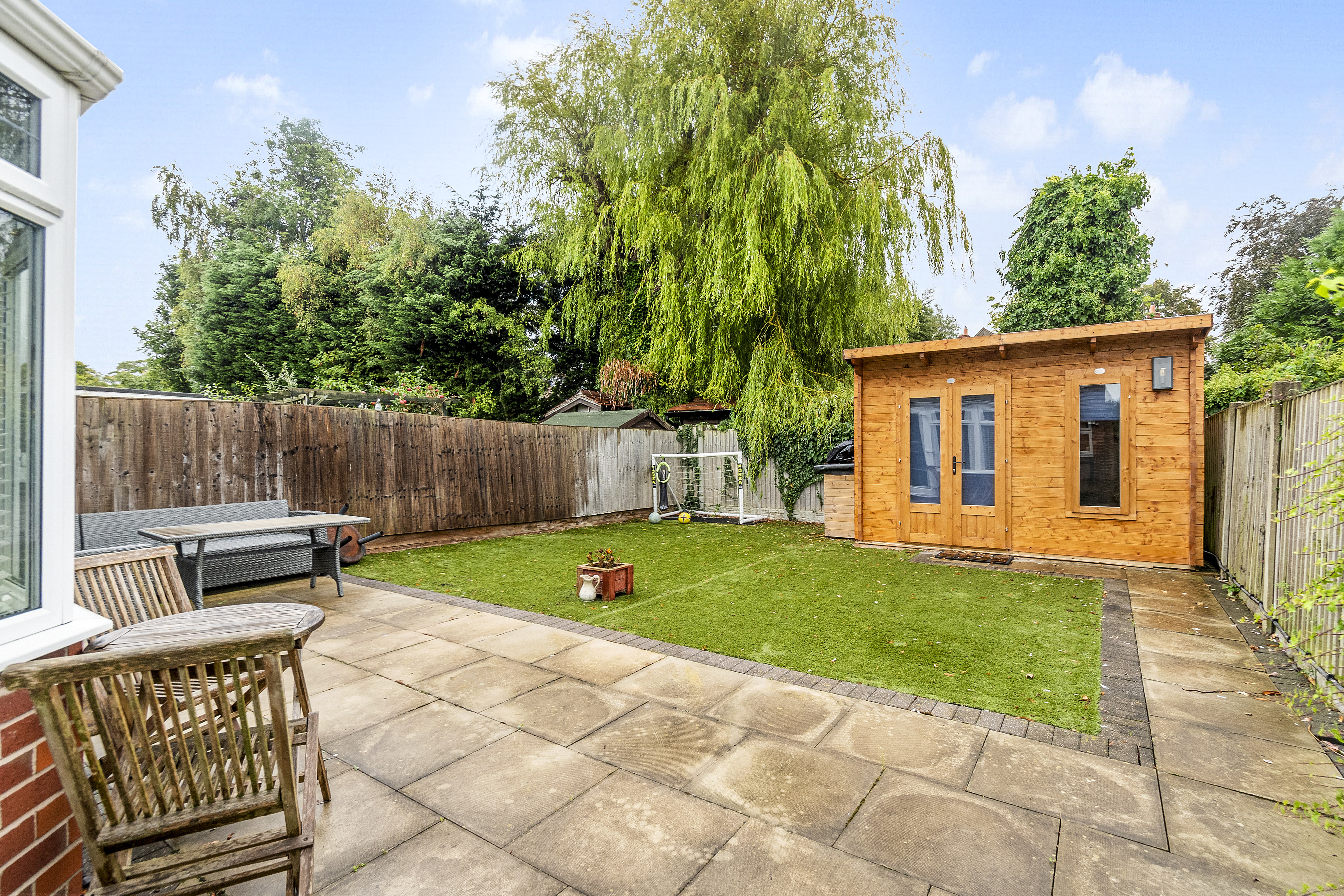 The garden to the front of the property adds a touch of greenery, while the low-maintenance rear garden includes a garden room that is perfect for storage or a quiet retreat. Whether enjoying a morning coffee or hosting a summer barbeque, this outdoor space is sure to enhance your lifestyle.