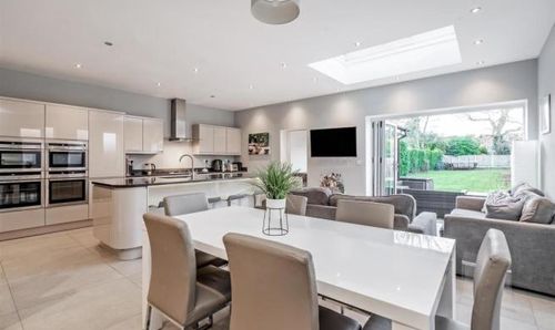 Catering to the heart of the home, the open-plan kitchen/diner impress with contemporary finishes and features direct access to the rear garden through double doors, infusing the interiors with natural light and offering seamless indoor-outdoor connectivity.
