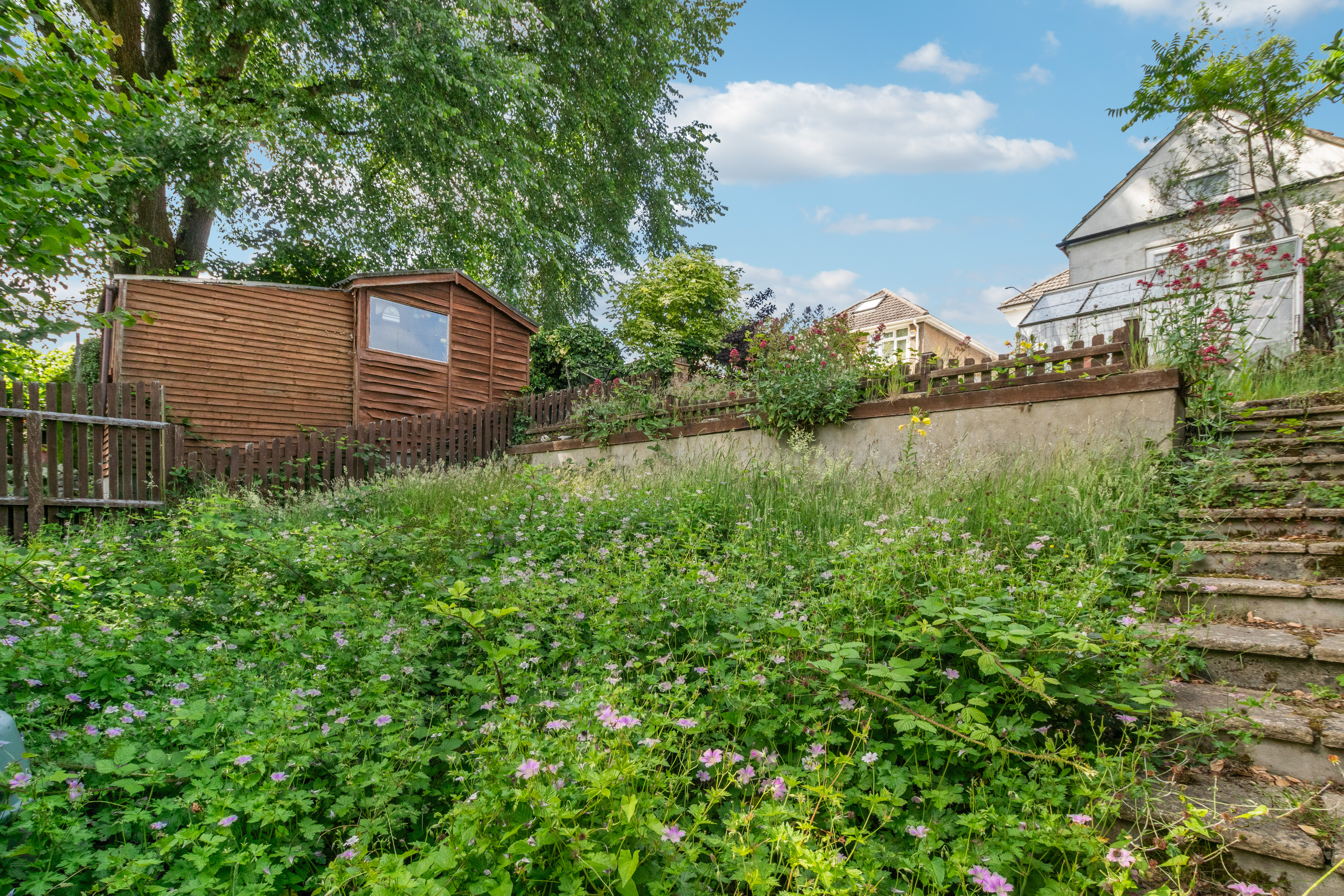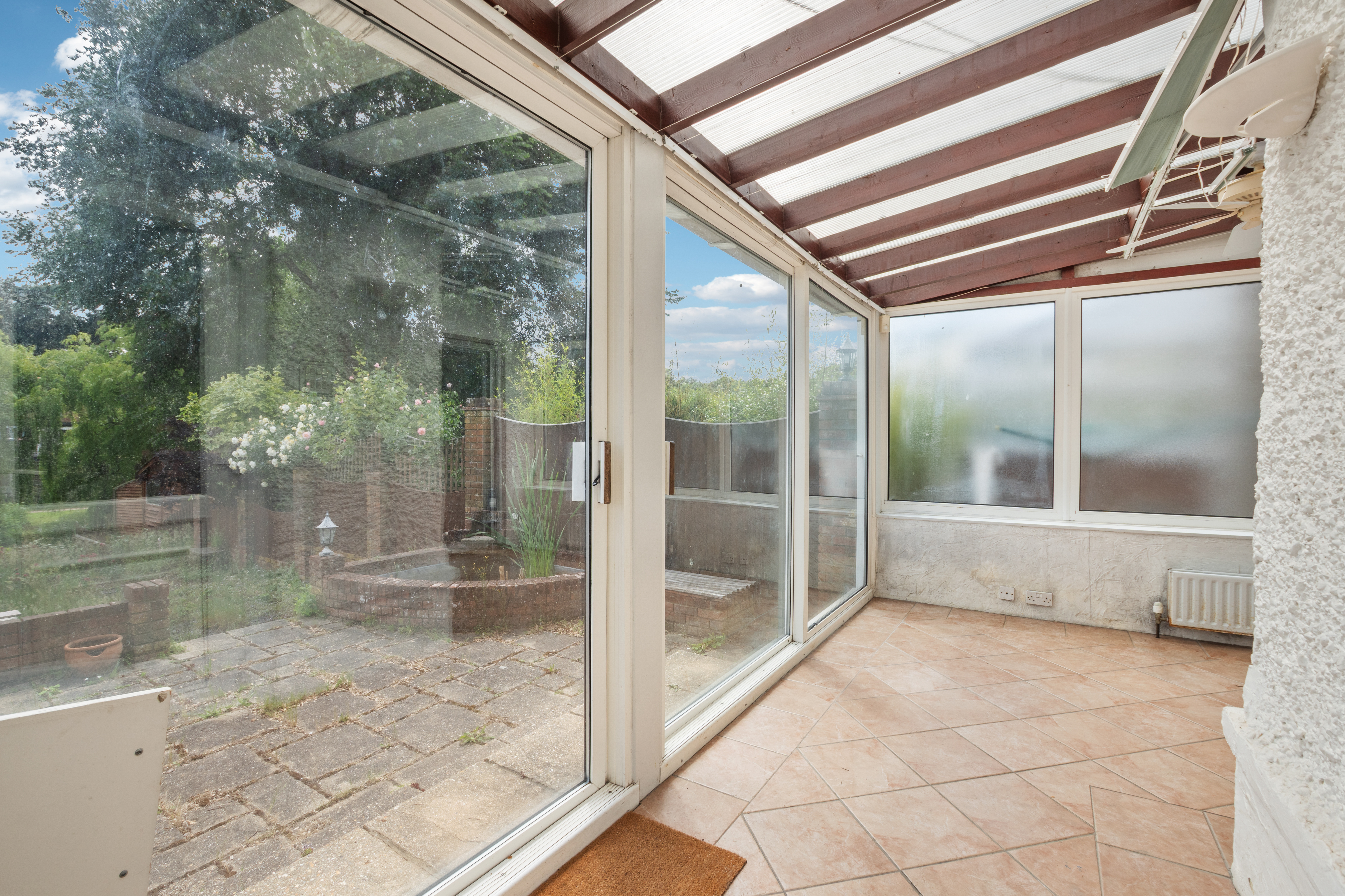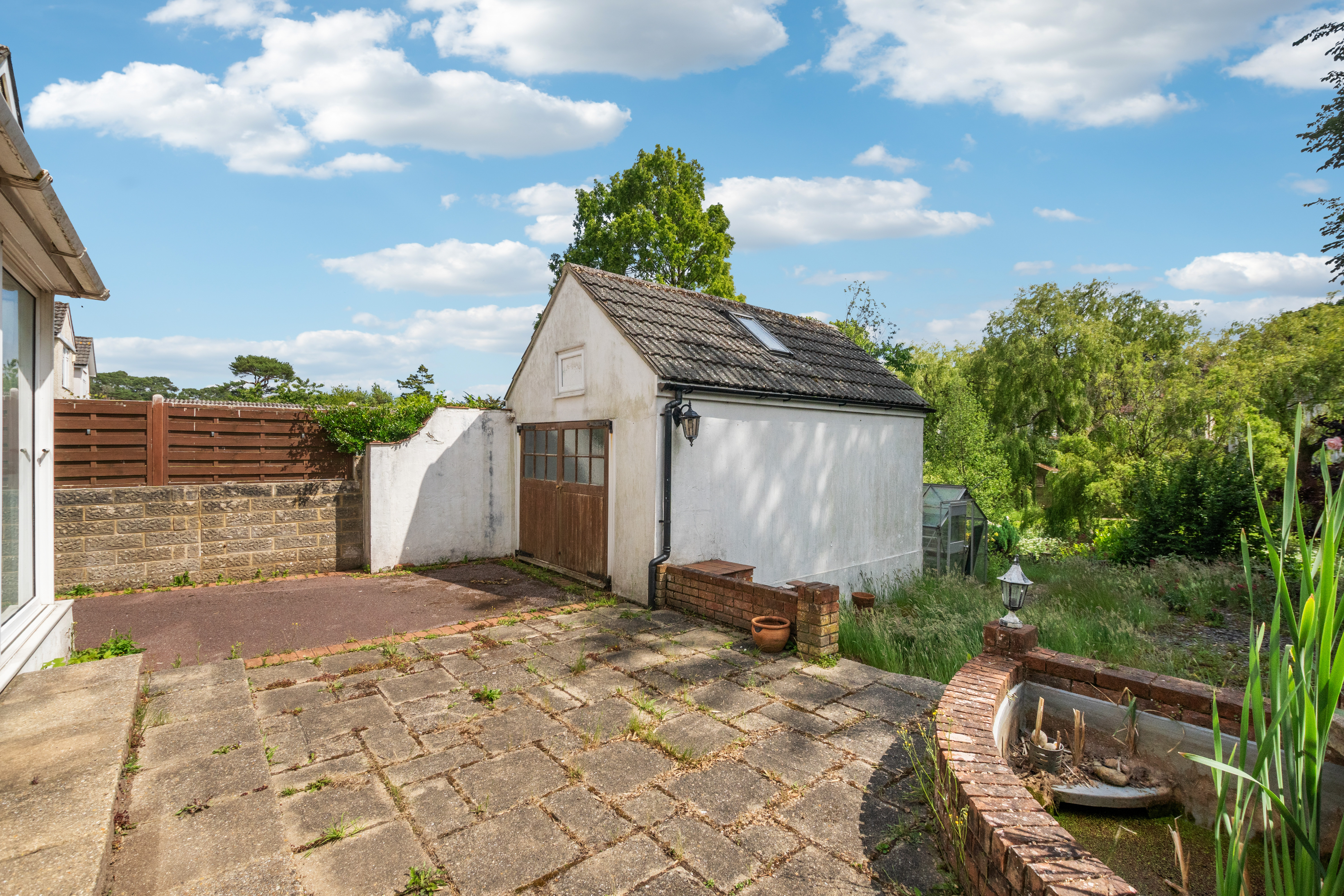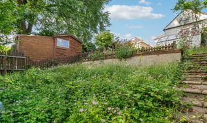 Backed directly onto the picturesque Coy Pond gardens, the property enjoys a tranquil setting with a large garden boasting two tiers, presenting a blank canvas for landscaping enthusiasts. A detached garage and driveway to the front offer ample parking and storage space. The property is in need of modernisation, providing plenty of scope for renovation and personalisation to suit the buyer's tastes.