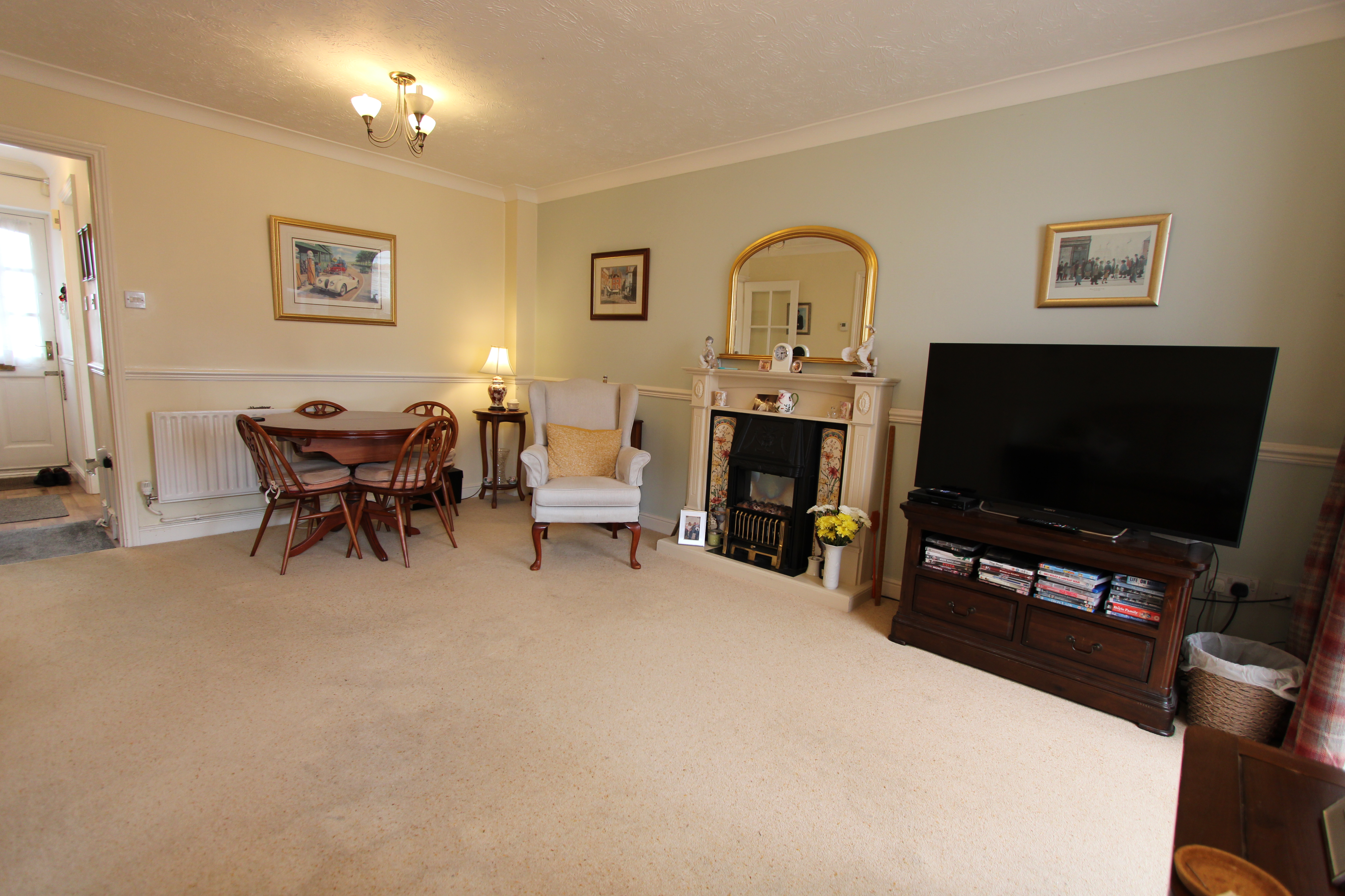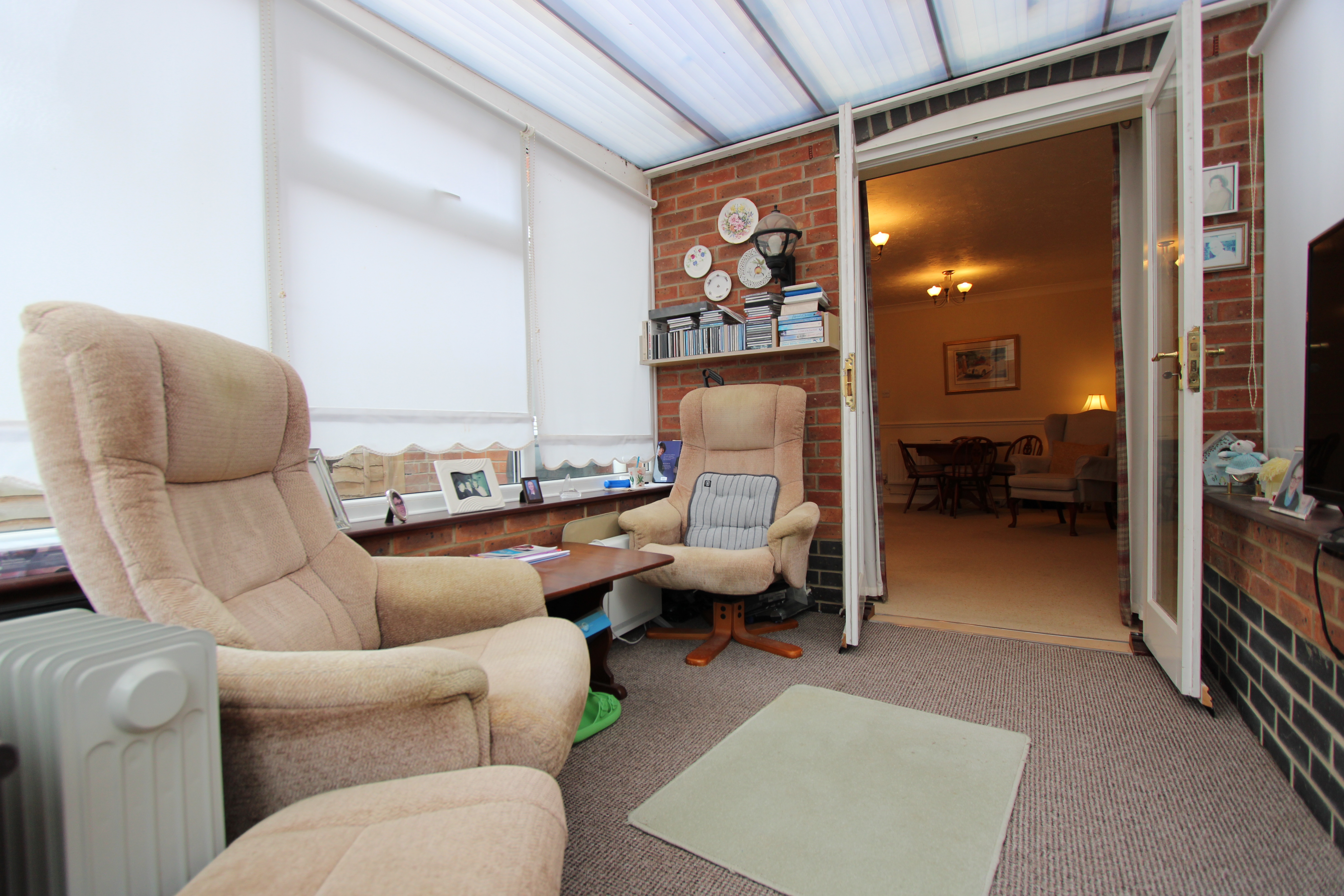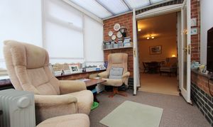 Stepping inside, you’re welcomed by a handy downstairs WC on your right, ideal for guests, while to your left, the generous kitchen space invites creativity and could easily be transformed into a stylish, modern hub for the home. Moving through, the large open-plan living room provides an inviting area for relaxation or entertaining, complete with a practical storage cupboard for added convenience. From here, the conservatory extends the living space and brings in plenty of natural light, making it a perfect spot to unwind.