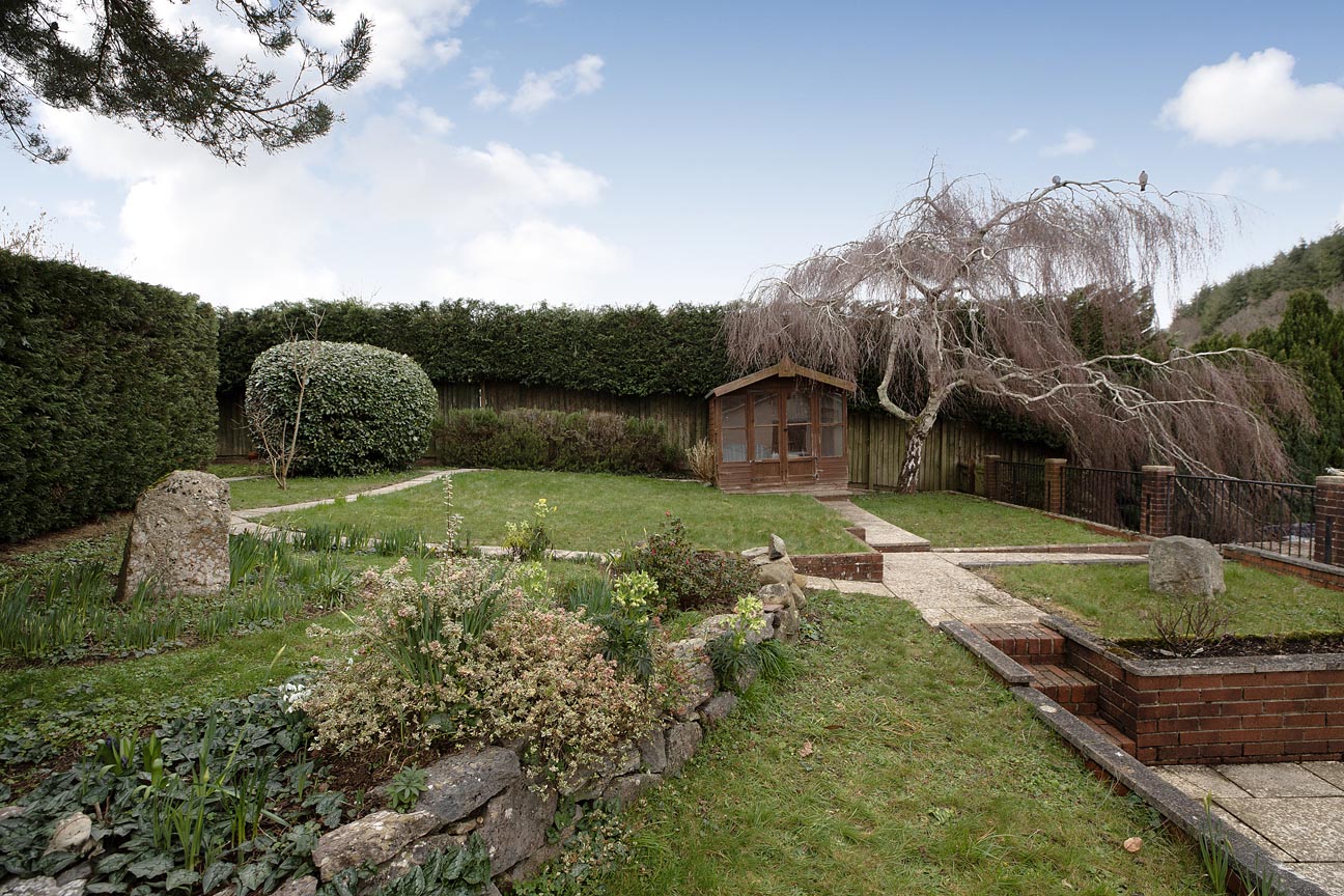 STEP OUTSIDE: The beautifully maintained, tiered gardens are a standout feature, wrapping around the front of the property and descending gently to the stream below. Lawned areas blend with established shrub borders, spring bulbs, and feature stone steps and paths, creating peaceful seating spots to enjoy the tranquil soundtrack of the waterfall. A raised terrace directly off the lounge and kitchen is perfect for outside dining, while the south/west-facing aspects maximise the breathtaking rural panorama. A sweeping driveway provides extensive parking and leads to the attached double garage with power and light. An additional patio and level garden just off the rear of the home offer more outdoor entertaining options, all enveloped by mature hedging and trees for privacy. This rare and characterful home combines spacious, well-thought-out accommodation with approx 0.5 acre, enviable plot in a serene location – an ideal retreat for families seeking space, natural beauty, and convenience.