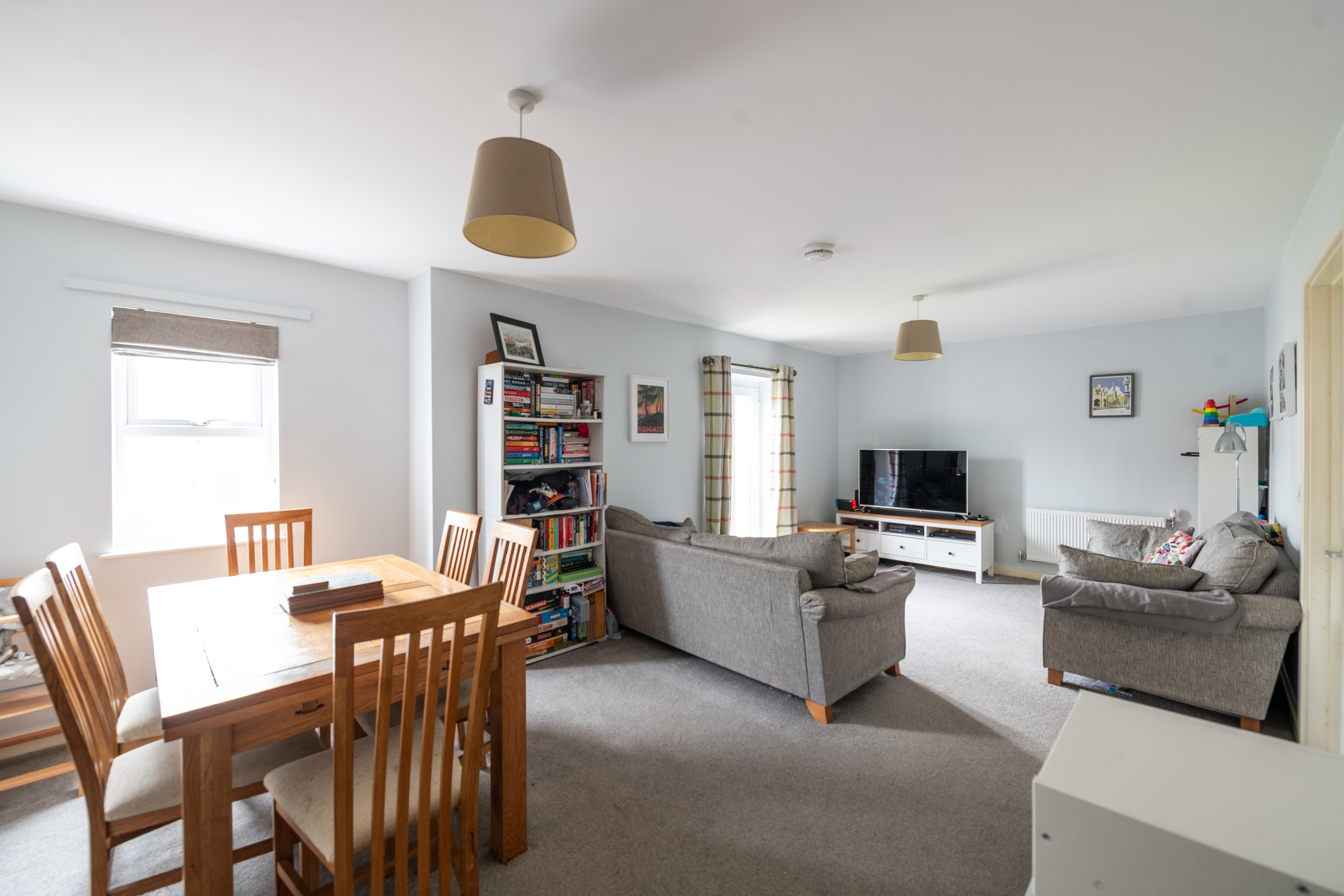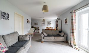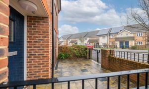 Upon entering, you are greeted by a generous entrance hall that leads to a bright and inviting open-plan living and dining area, featuring a Juliet balcony that allows natural light to flood the space and provides a charming outlook.