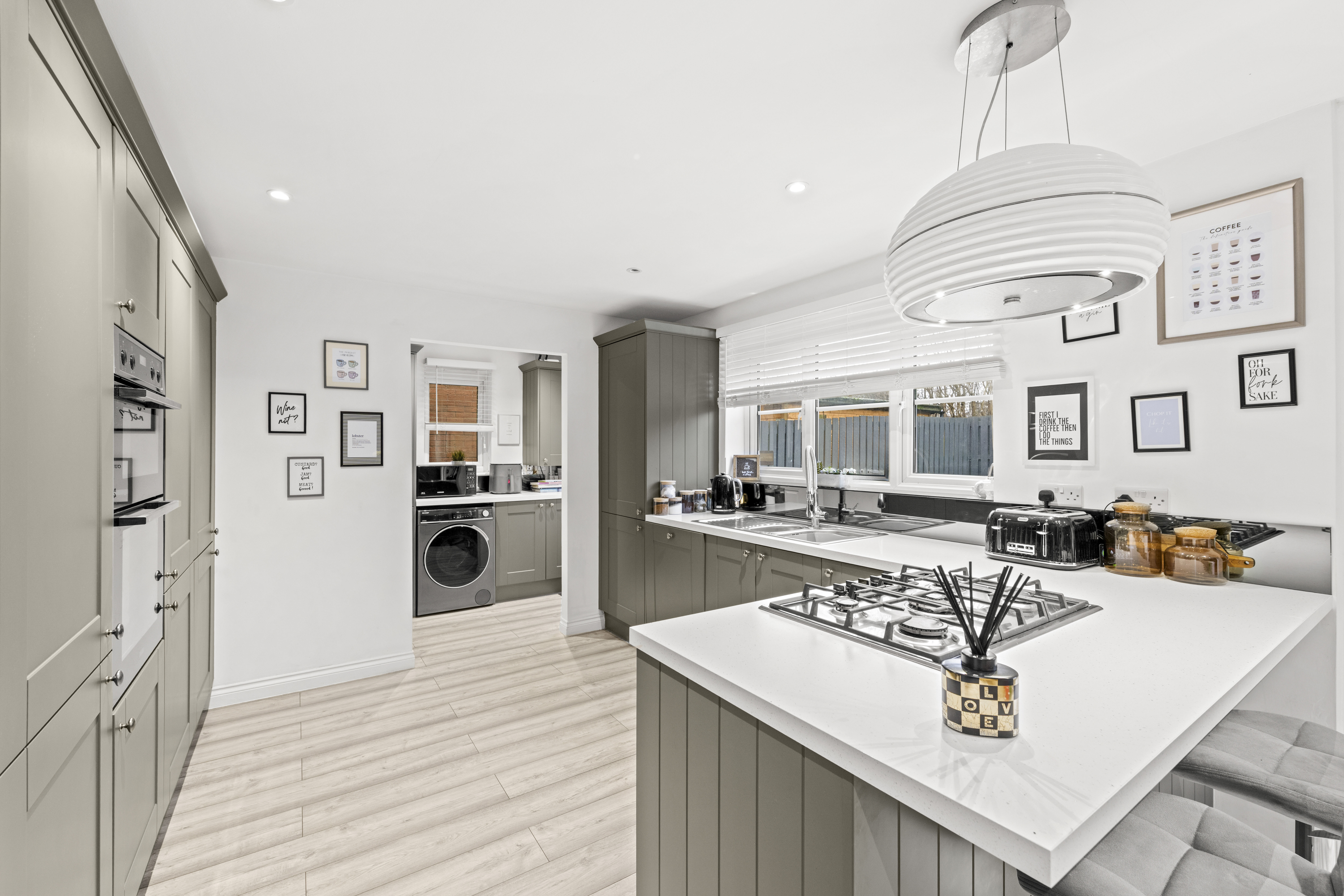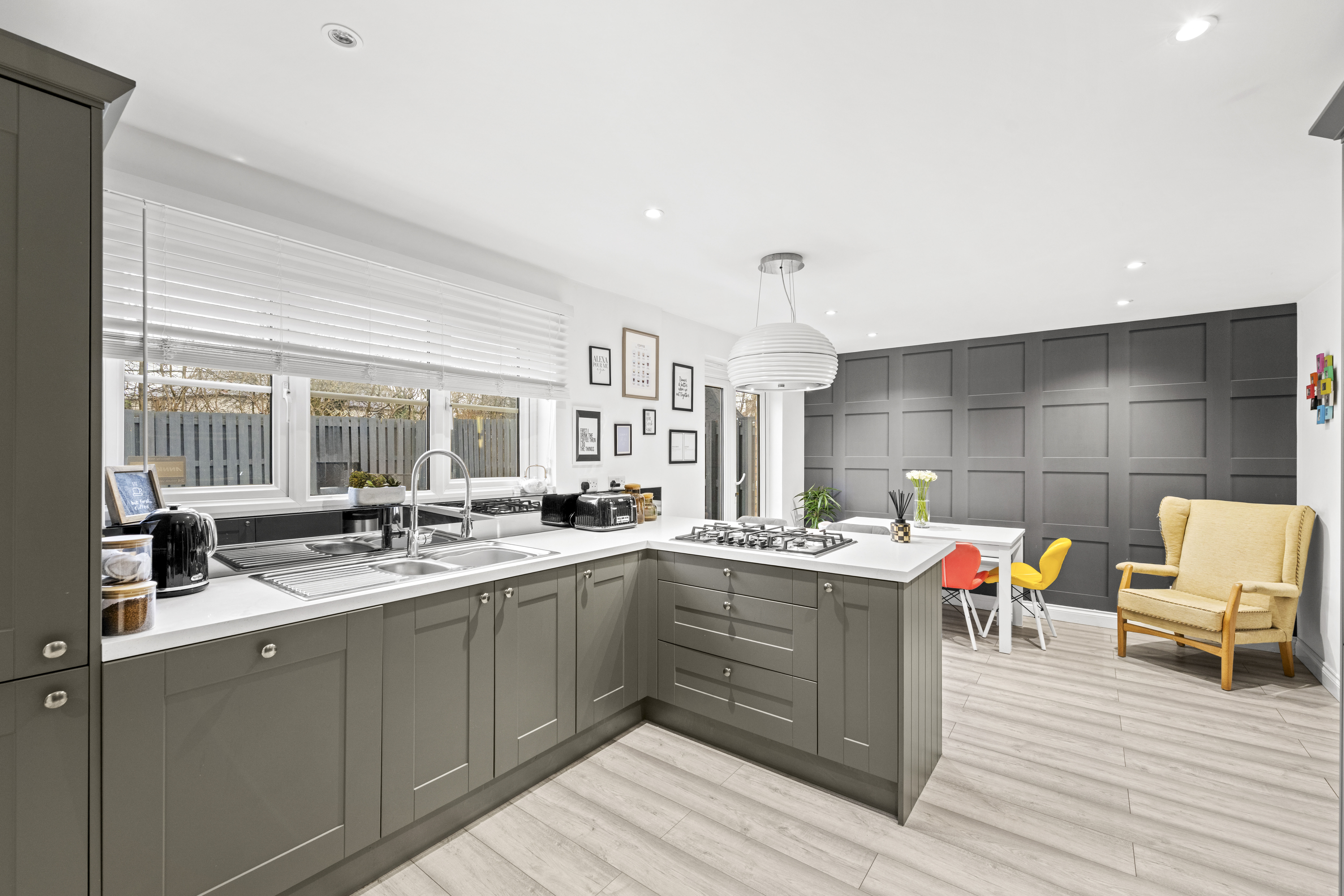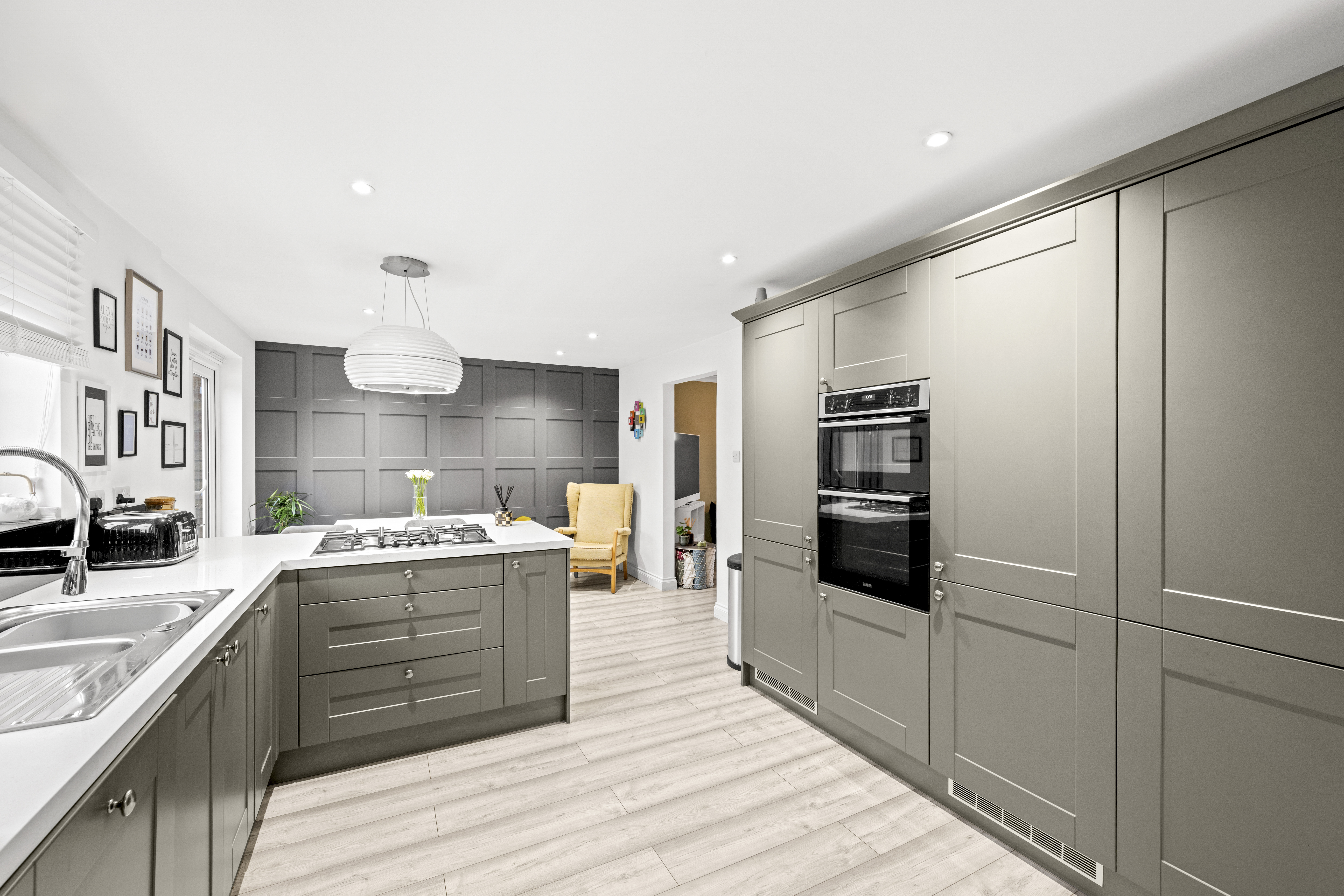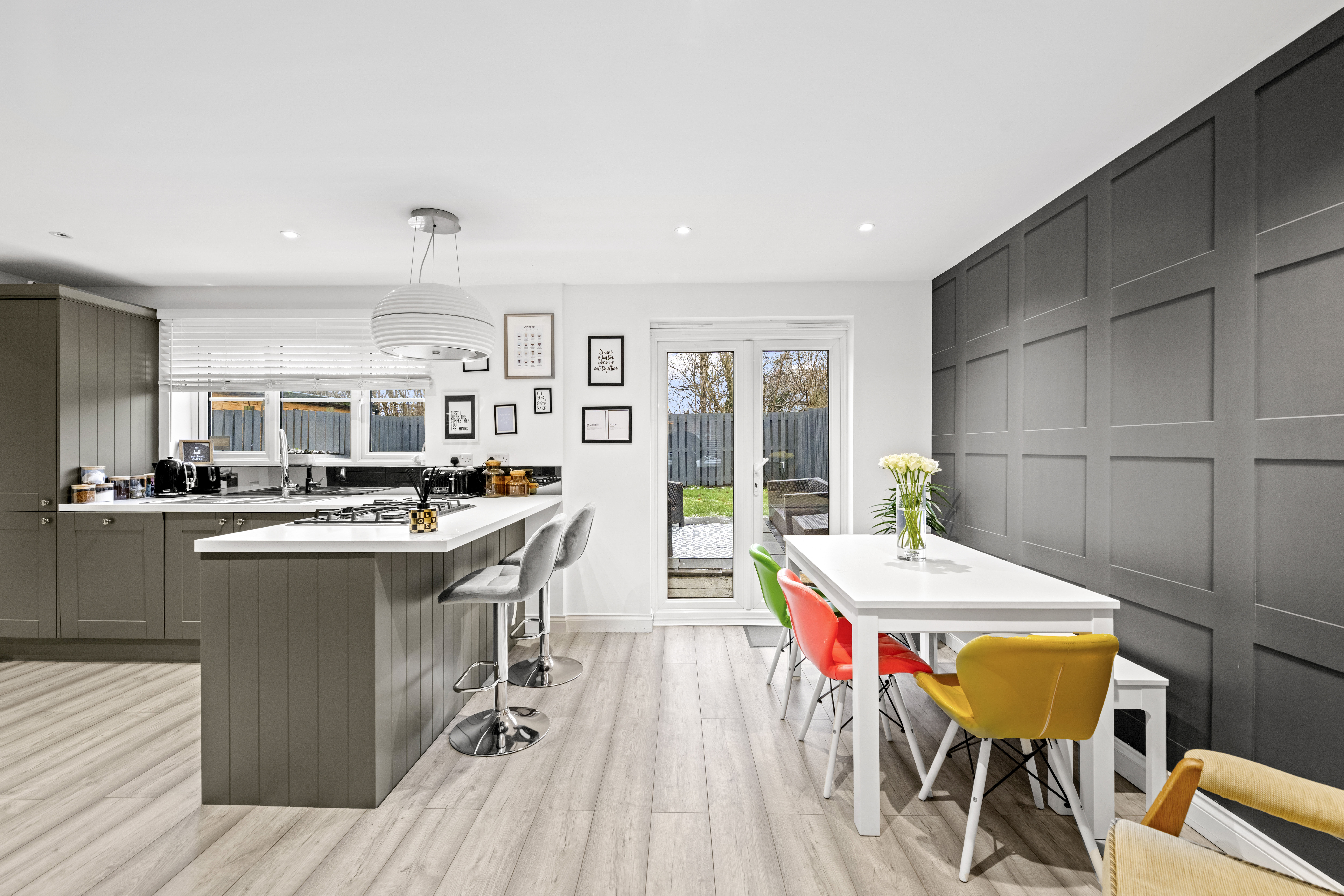 This beautifully presented four bedroom detached house offers a superb opportunity for families seeking a move-in ready home within a popular residential area. The property boasts a generous and well appointed open plan kitchen with a dedicated dining space, featuring modern fittings and ample storage, making it ideal for both every-day living and entertaining. A separate dining room, complete with patio doors, provides a bright and inviting setting for family meals or gatherings. The principal bedroom benefits from a contemporary en-suite shower room, while the remaining three bedrooms are well proportioned with various storage options and suitable for children, guests or home office use.