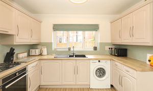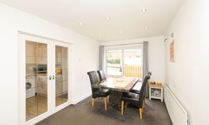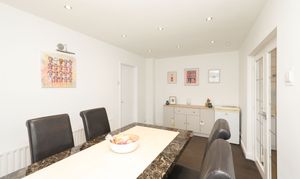 A modern fitted kitchen adds further appeal to the ground floor. With a stylish and practical layout, it is complemented by double doors opening into the separate dining room, a versatile space equally suited for family meals or hosting guests.