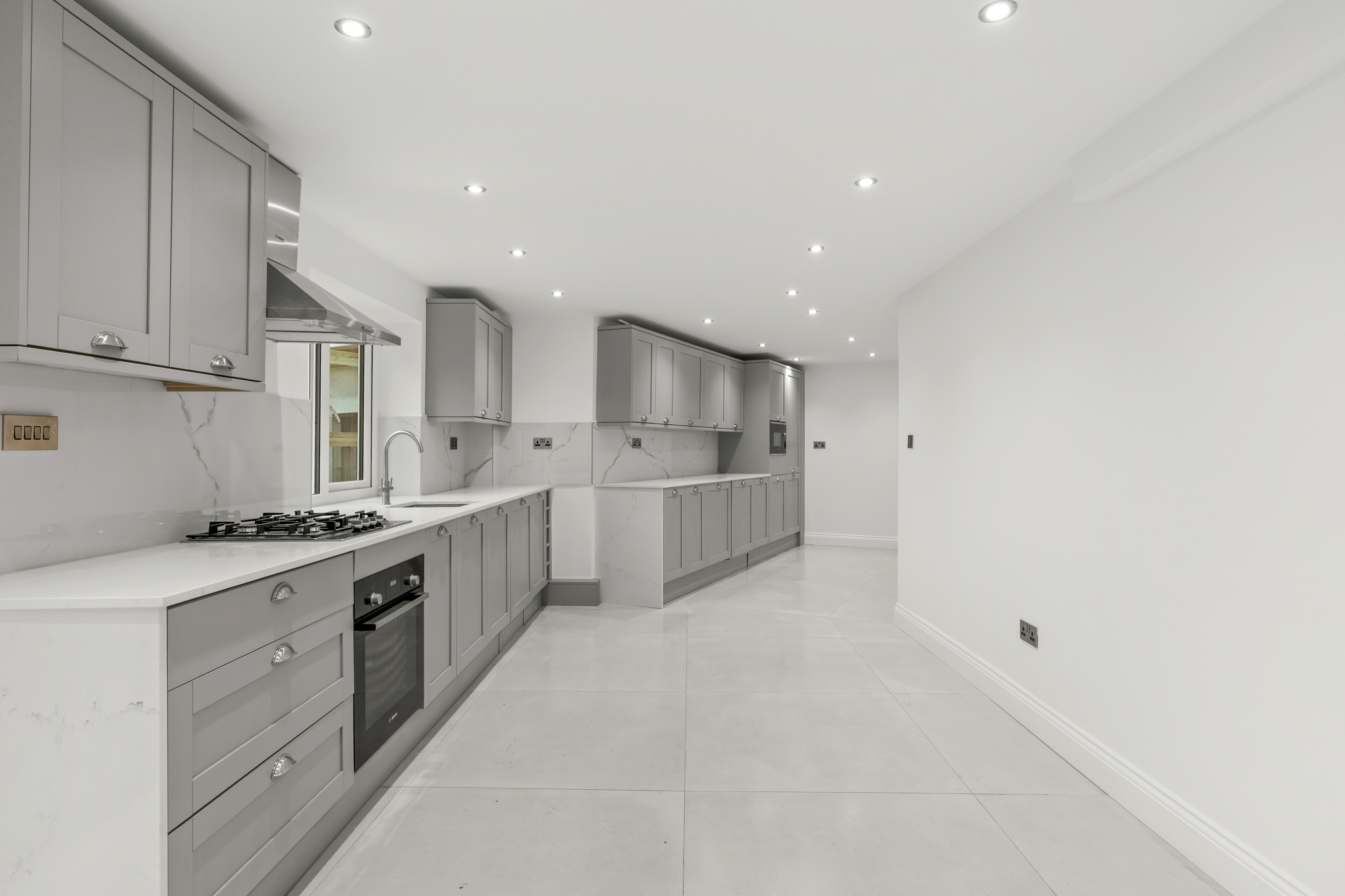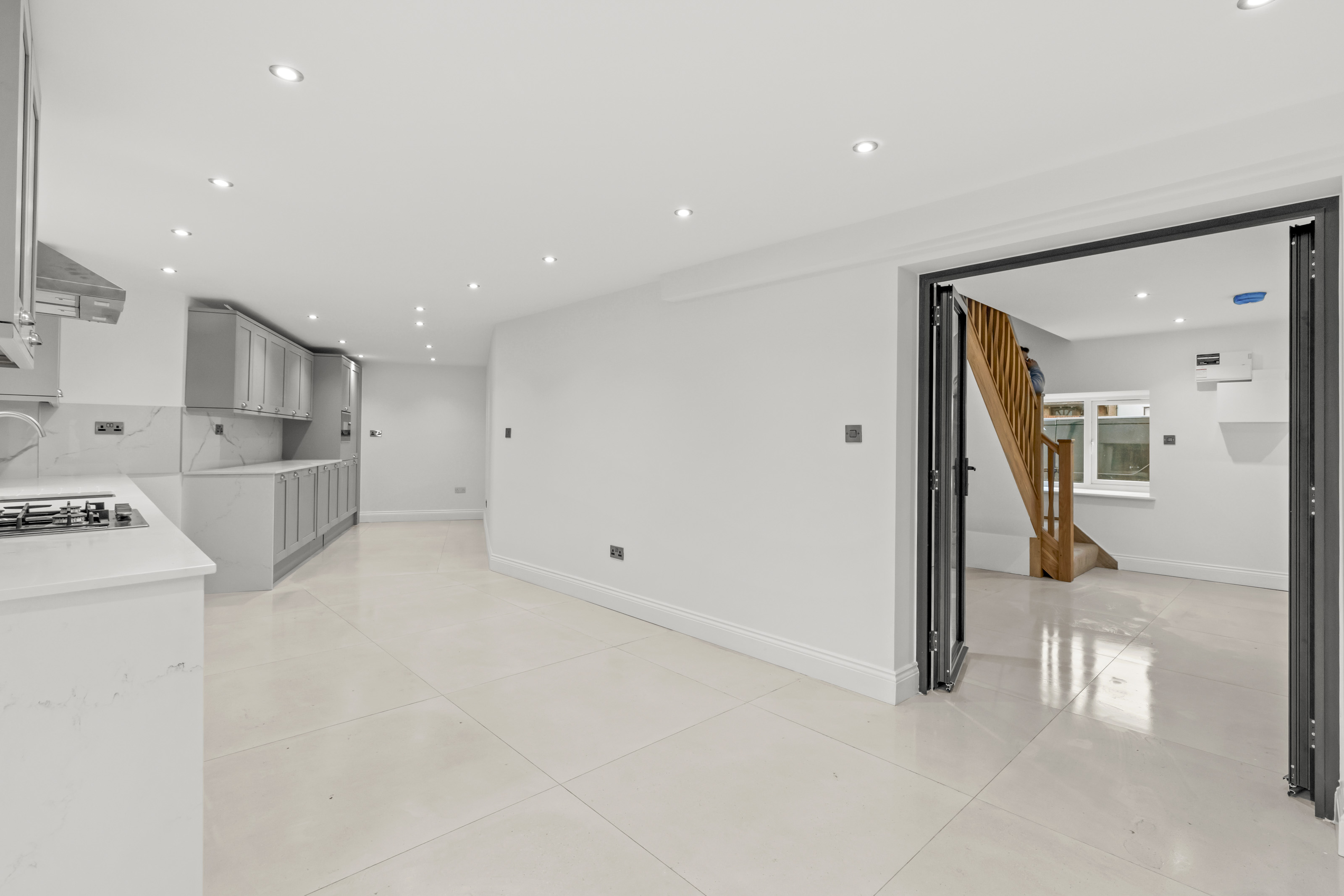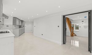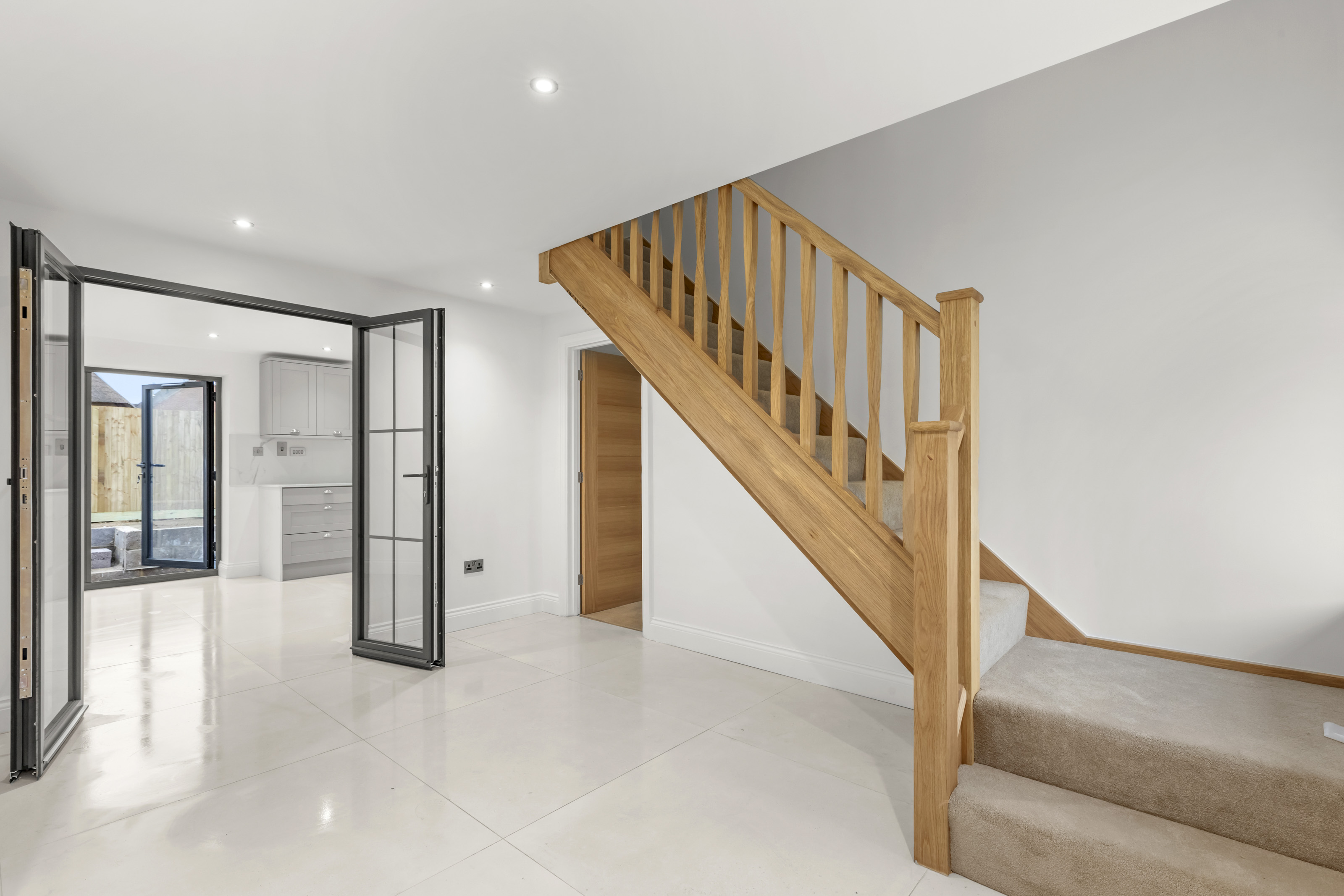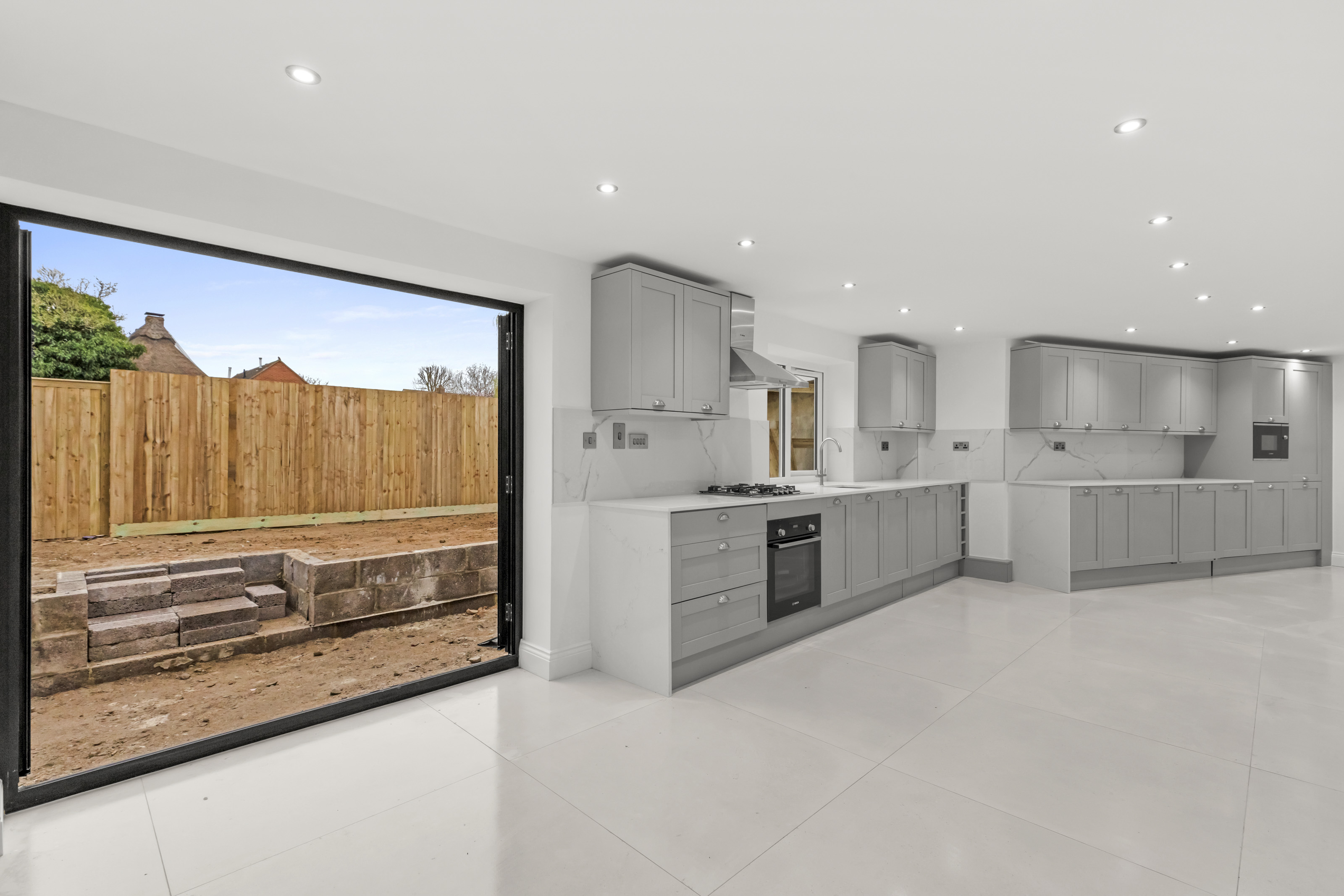 The sense of space throughout is simply superb. A welcoming entrance hall sets the tone, complete with a cloakroom and large porcelain tiles that make quite the first impression. From here, step into the impressive kitchen/breakfast room — wonderfully spacious and beautifully appointed with integrated appliances and striking bi-fold doors that open out to a private, landscaped rear garden.
