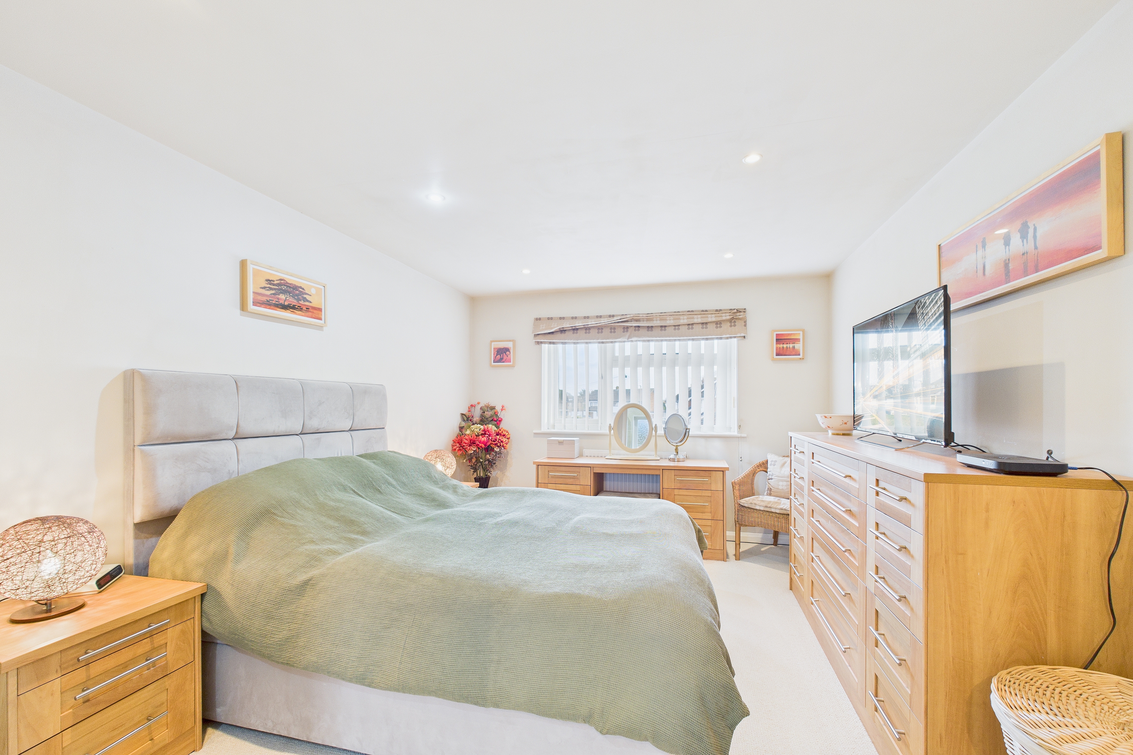 The first-floor landing gives access to four well-sized bedrooms and a family bathroom fitted with a four-piece white suite, including a separate shower and bath. The extended principal bedroom is particularly impressive, featuring a walk-in wardrobe and its own en-suite shower room.