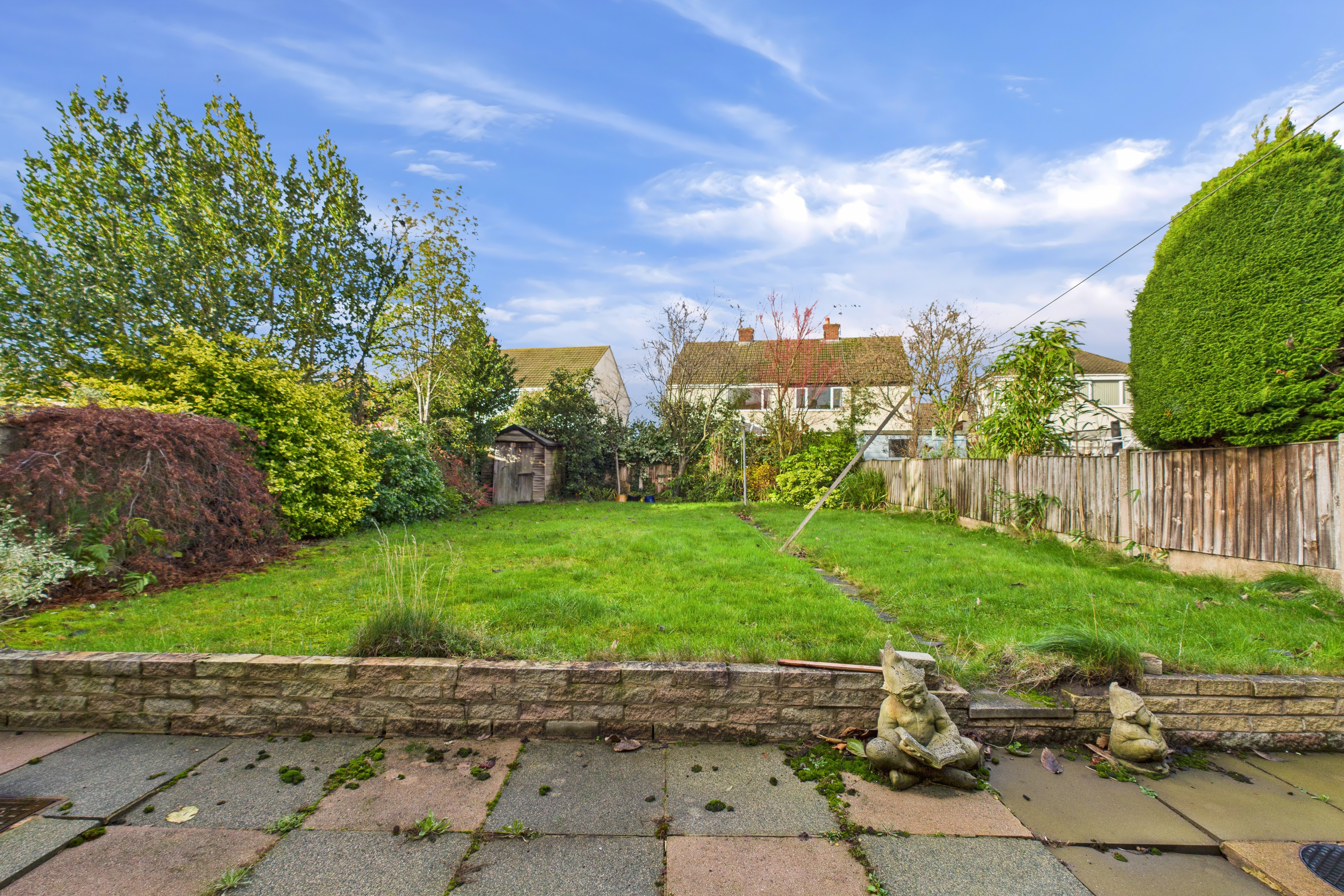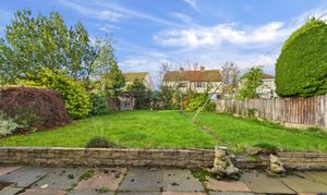 Externally, the rear garden offers a paved patio terrace, perfect for outdoor dining and entertaining, leading onto a lawned, timber-fenced garden with established shrubs. The space offers a blank canvas for buyers wishing to personalise or landscape to their own taste.