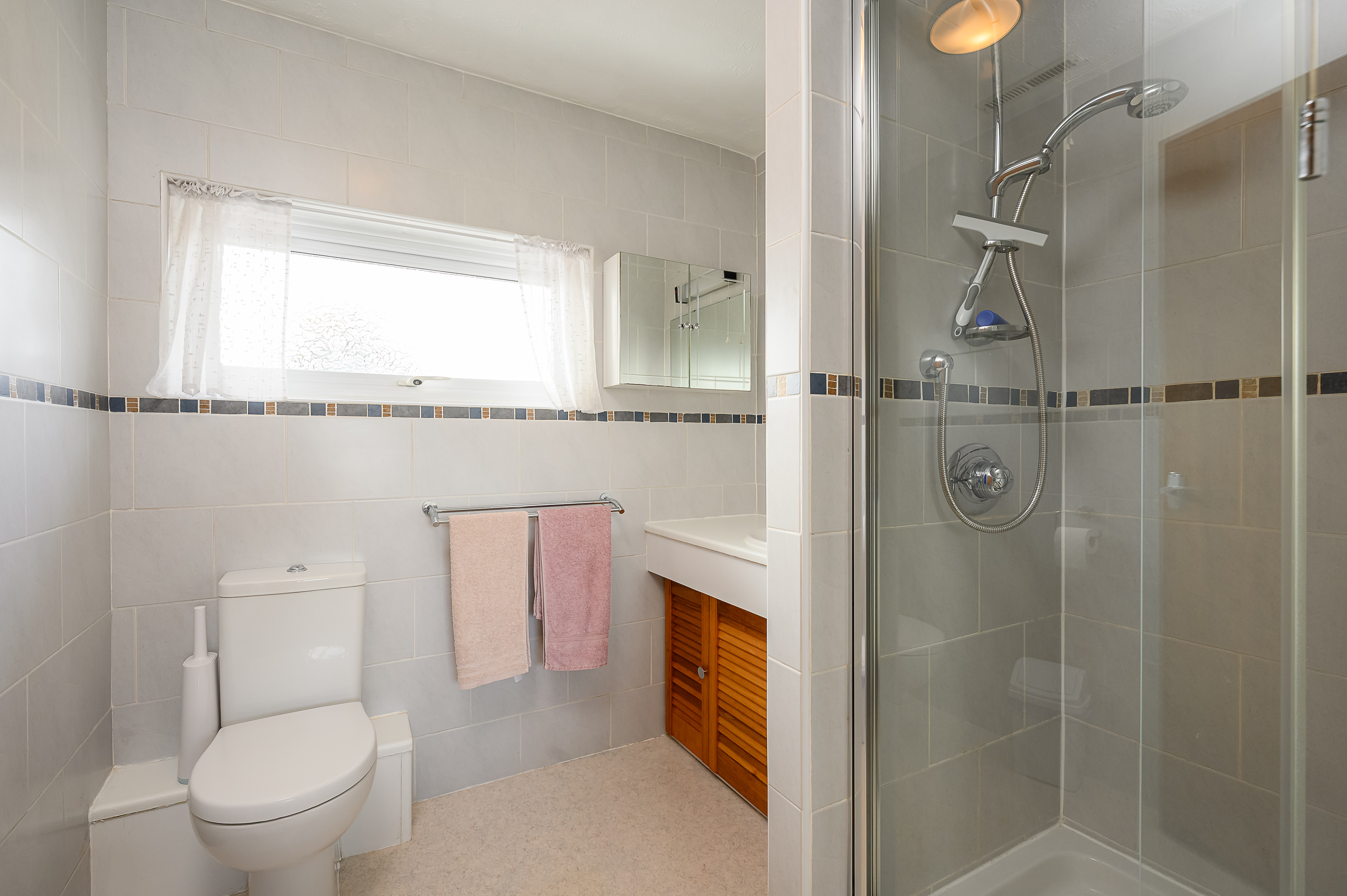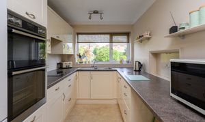 The modern kitchen has been replaced in recent years and features cream cabinets, contrasting work surfaces, and enjoys pleasant garden views. The ground-floor layout provides flexibility for those who may wish to create open-plan living spaces in the, future. Given the size of the plot, this home also offers further opportunity to create an extension spanning the rear of the property, where desired and subject to necessary planning and consents.