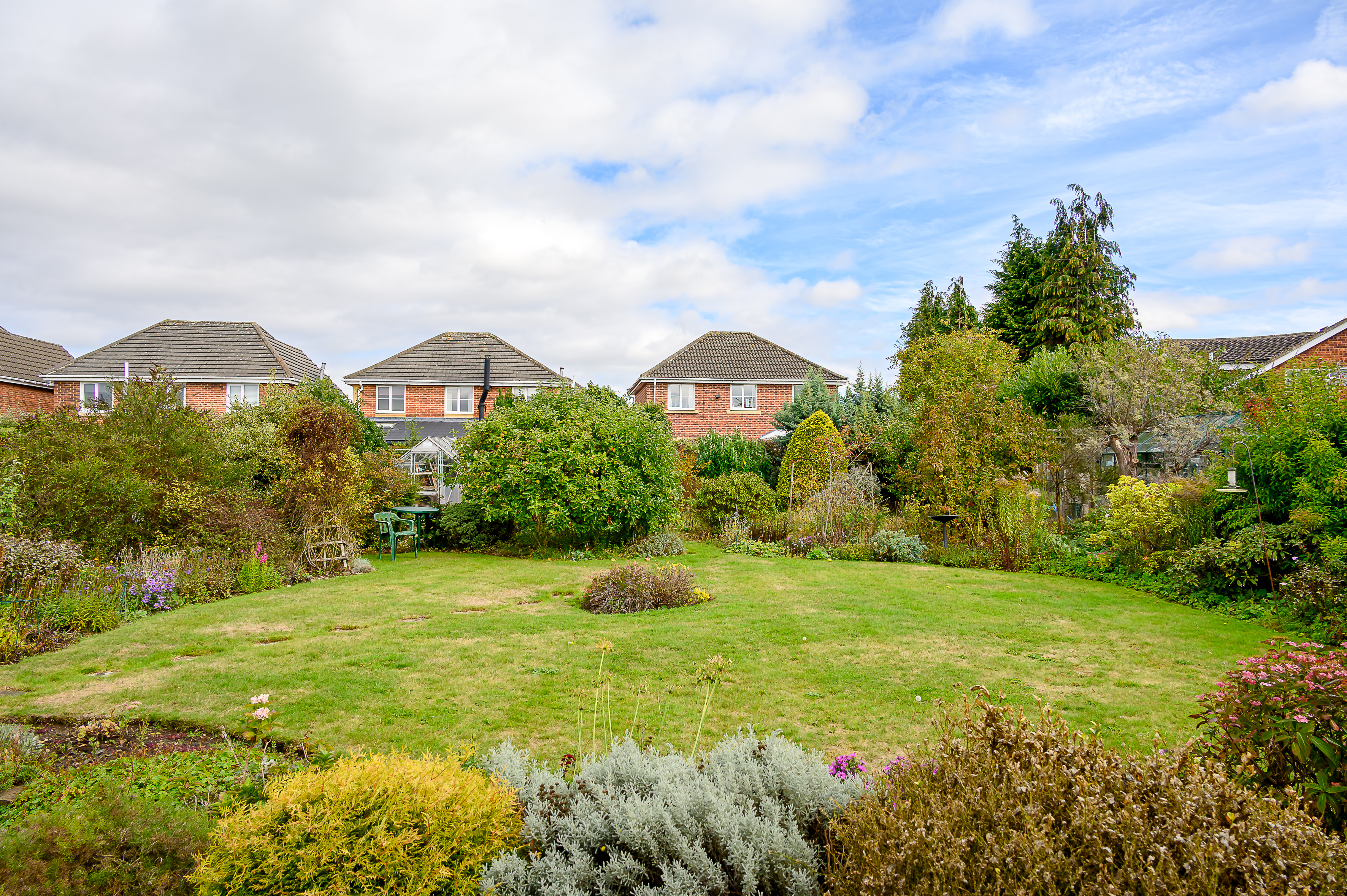 The rear garden is a particular highlight – private, mature, and well-established, with lawns, planting, and useful outbuildings. To the front, there is a driveway, double garage which conveniently houses the hot air heating system, and lawned frontage, which could be adapted to provide additional parking if required.