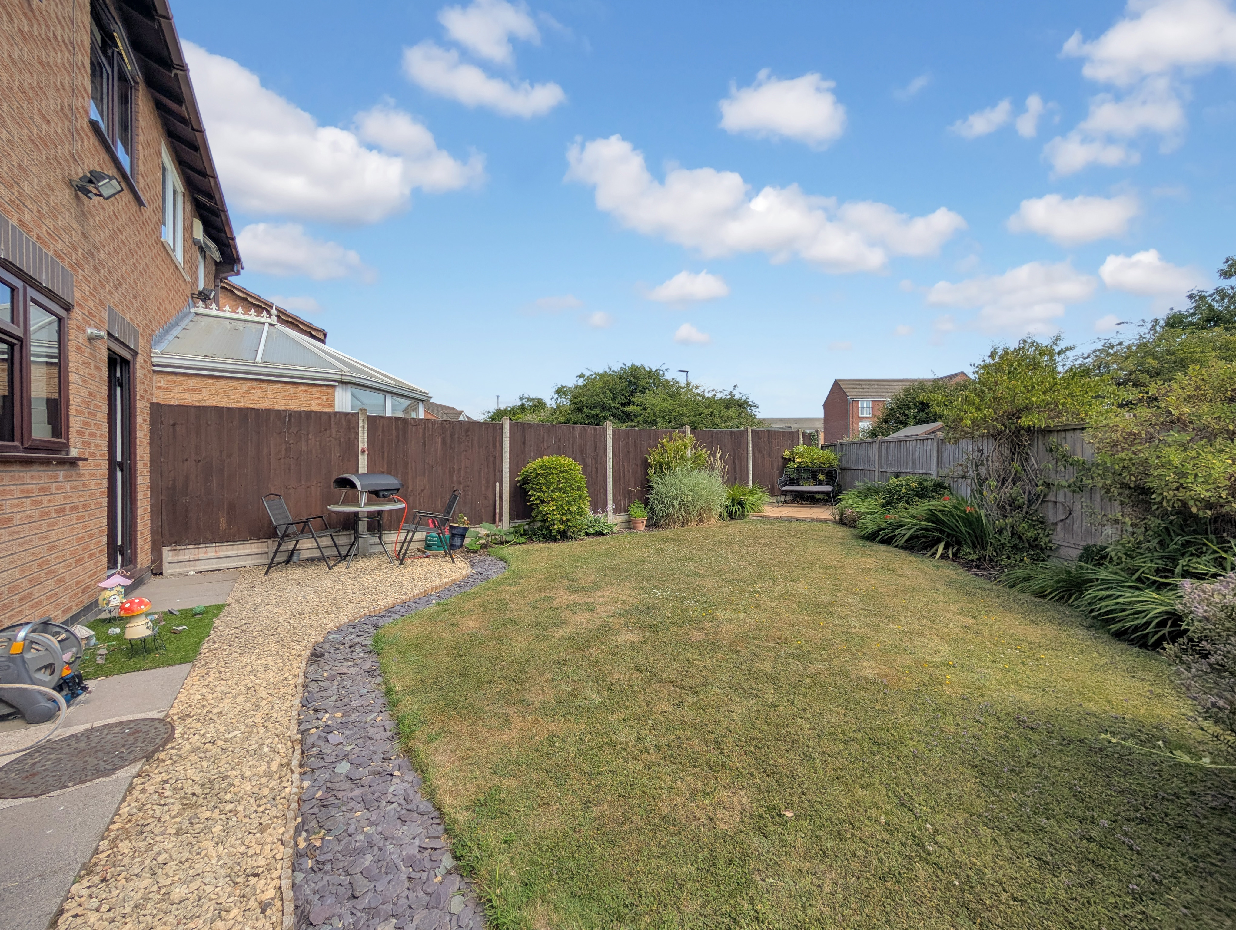 An attractive garden which is mainly laid to lawn. Timber fencing to all boundaries and gated access to the front.